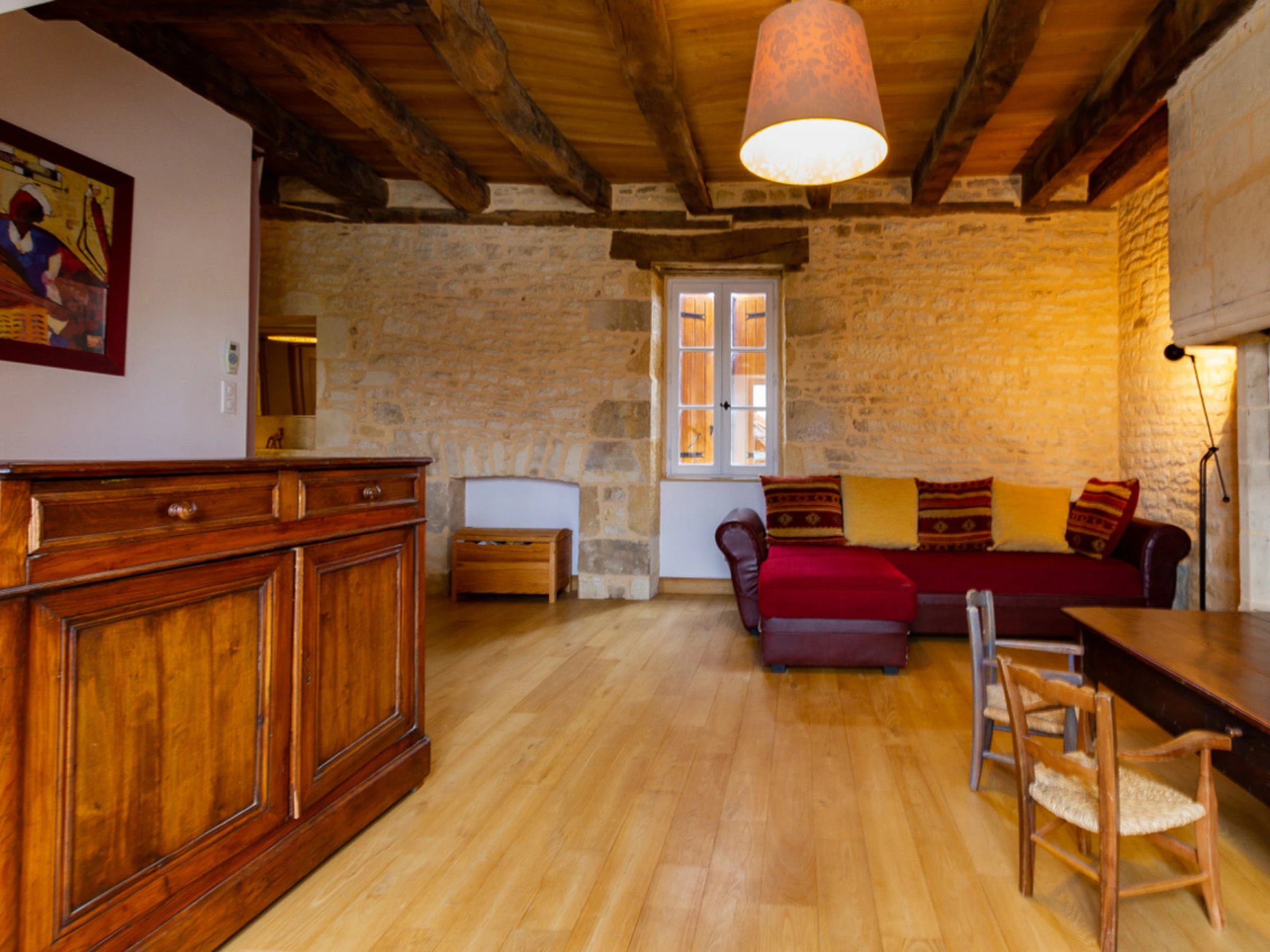 Cette maison indépendante de 160 m² pour une capacité de 6 à 8 personnes vous propose une grande pièce à vivre avec séjour et salon avec cheminée cantou puis une cuisine ouverte sur la pièce de vie toute équipée Au rez-de-chaussée, vous disposerez d'une salle d'eau/buanderie et d'un WC indépendant. A l'étage (16 marches), vous accéderez à un hall avec coin détente puis vous profiterez d'une chambre avec 1 lit en 180x200, une chambre avec 1 lit en 140x190 et une chambre avec 2 lits en 90x190 et 1 lit en 140x190 sur mezzanine ainsi que d'une salle d'eau indépendante avec douche à l'italienne et un WC indépendant. Chauffage par pompe à chaleur et plancher chauffant. Jardin de 300 m² délimité par une haie. Ce corps de ferme situé en Dordogne, sur la commune d'Archignac, à 23 km de Sarlat, vous attend pour profiter du calme de la campagne et des nombreux sites à visiter (Sarlat-la-Canéda, Montignac, Brive la Gaillarde, Rocamadour...). Vous disposerez de la piscine privée chauffée, de dimensions 7m x 3.5m, profondeur de 1.10m à 1.40m, au chlore, sécurisée par un rideau électrique, ouverte du 15/06 au 15/09.