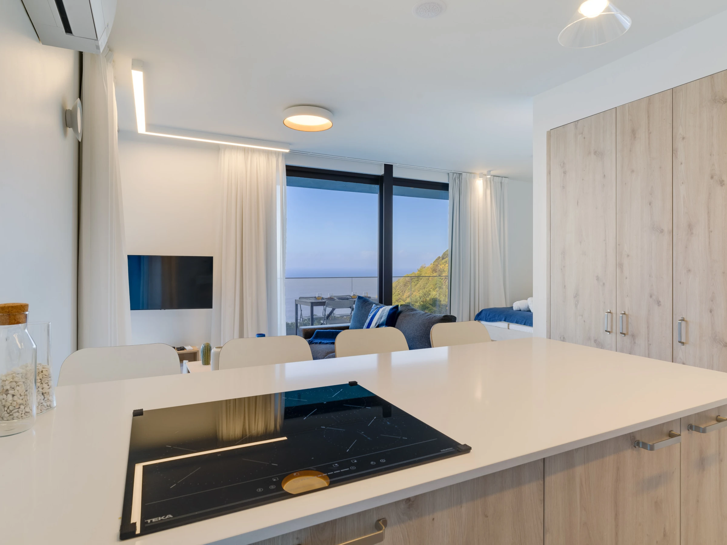 L'un des points forts du Mar Yam Sea est les vues imprenables et la végétation luxuriante visibles depuis le balcon, offrant un cadre paisible et pittoresque pour se détendre. Le stationnement est facile à trouver dans les espaces publics à proximité. L'emplacement serein d'Arco de São Jorge constitue une échappée parfaite du tumulte quotidien.