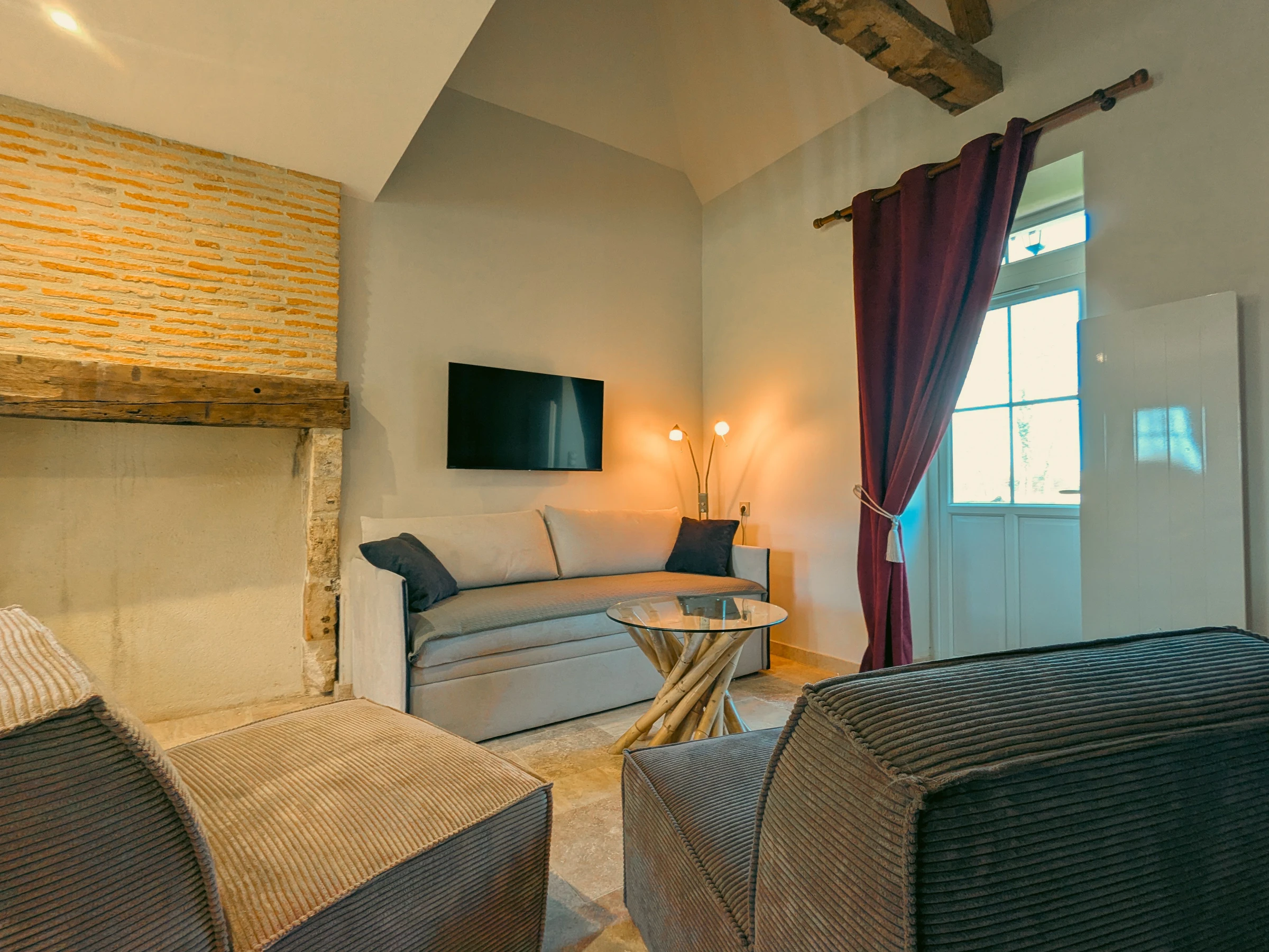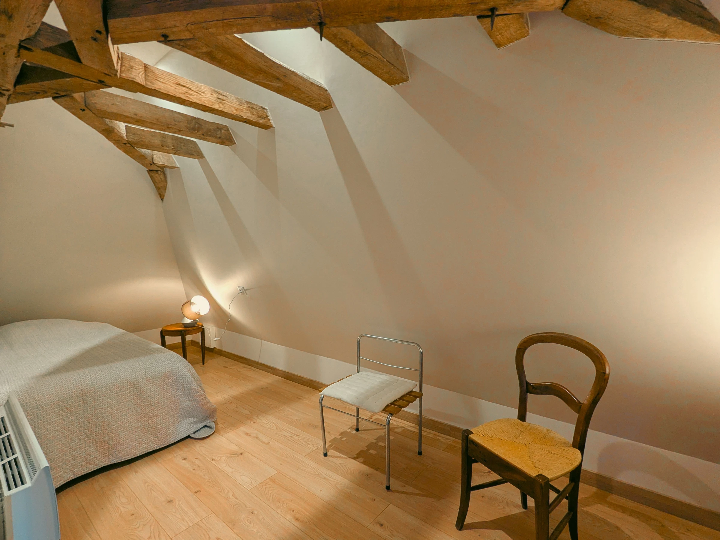 À quelques kilomètres, découvrez Ardentes et ses balades le long de l’Indre, le parc de Belle-Isle à Châteauroux pour une pause nature, ou encore le Château de Sarzay, riche en histoire. Les marchés locaux et les sentiers de randonnée complètent parfaitement ce séjour au cœur du Berry. Pensé pour accueillir jusqu’à 3 personnes, ce gîte combine charme et confort. Une pièce à vivre lumineuse vous invite à des moments de convivialité entre son coin salon et l'espace cuisine. Une mezzanine avec un grand lit de 180 x 200cm et dans un coin isolé sur le même palier un deuxième lit de 80 x 200 cm. Avec une salle d’eau en rez de chaussée, tout est réuni pour un séjour agréable et sans contrainte.