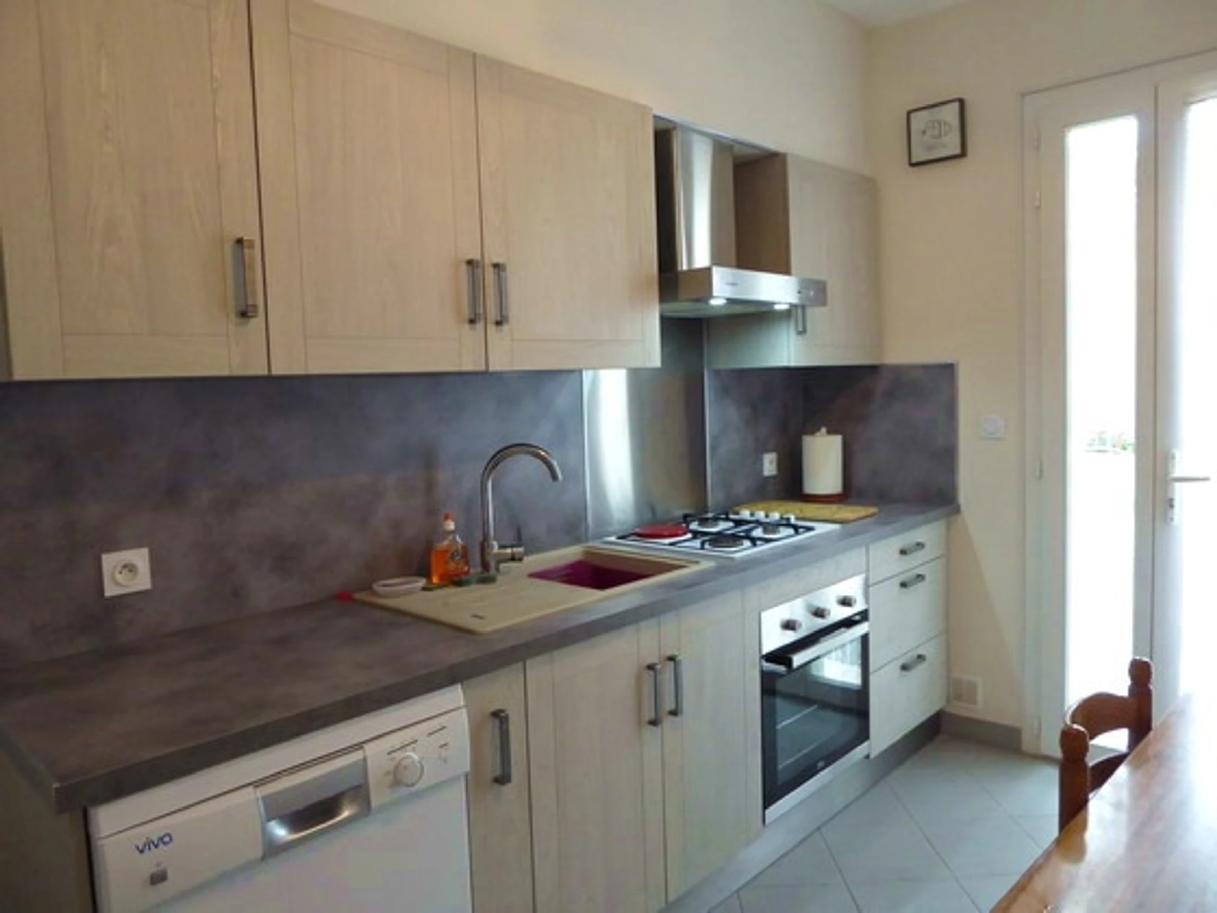 Cuisine équipée (plaques de cuisson, four, micro-ondes, lave-vaisselle, réfrigérateur/congélateur, cafetière, grille-pain),