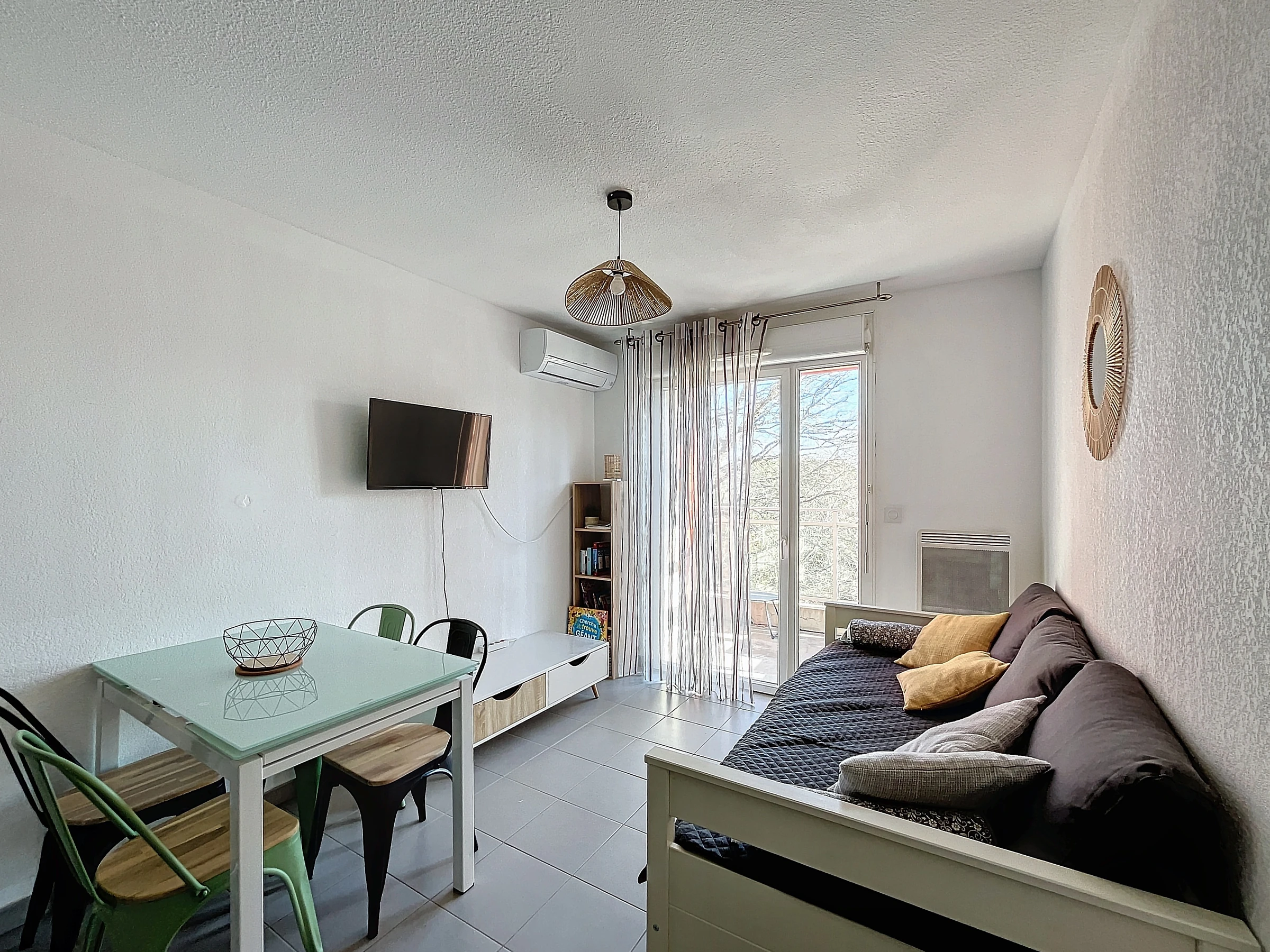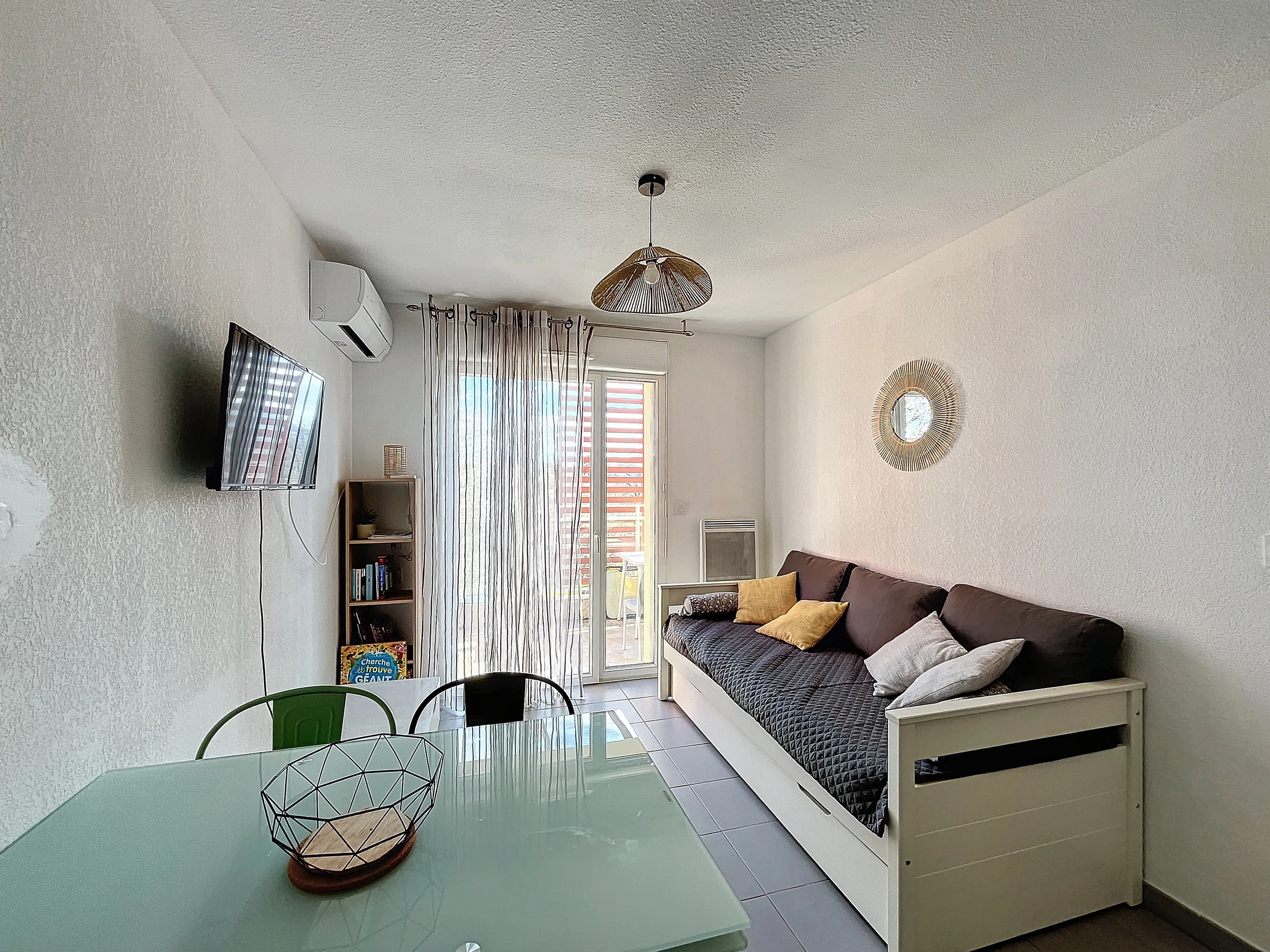 L’appartement se compose d’un séjour lumineux avec un coin cuisine, une chambre confortable, une salle de bain avec WC et une agréable terrasse où vous pourrez profiter de vos repas ou simplement vous détendre après une journée au soleil.