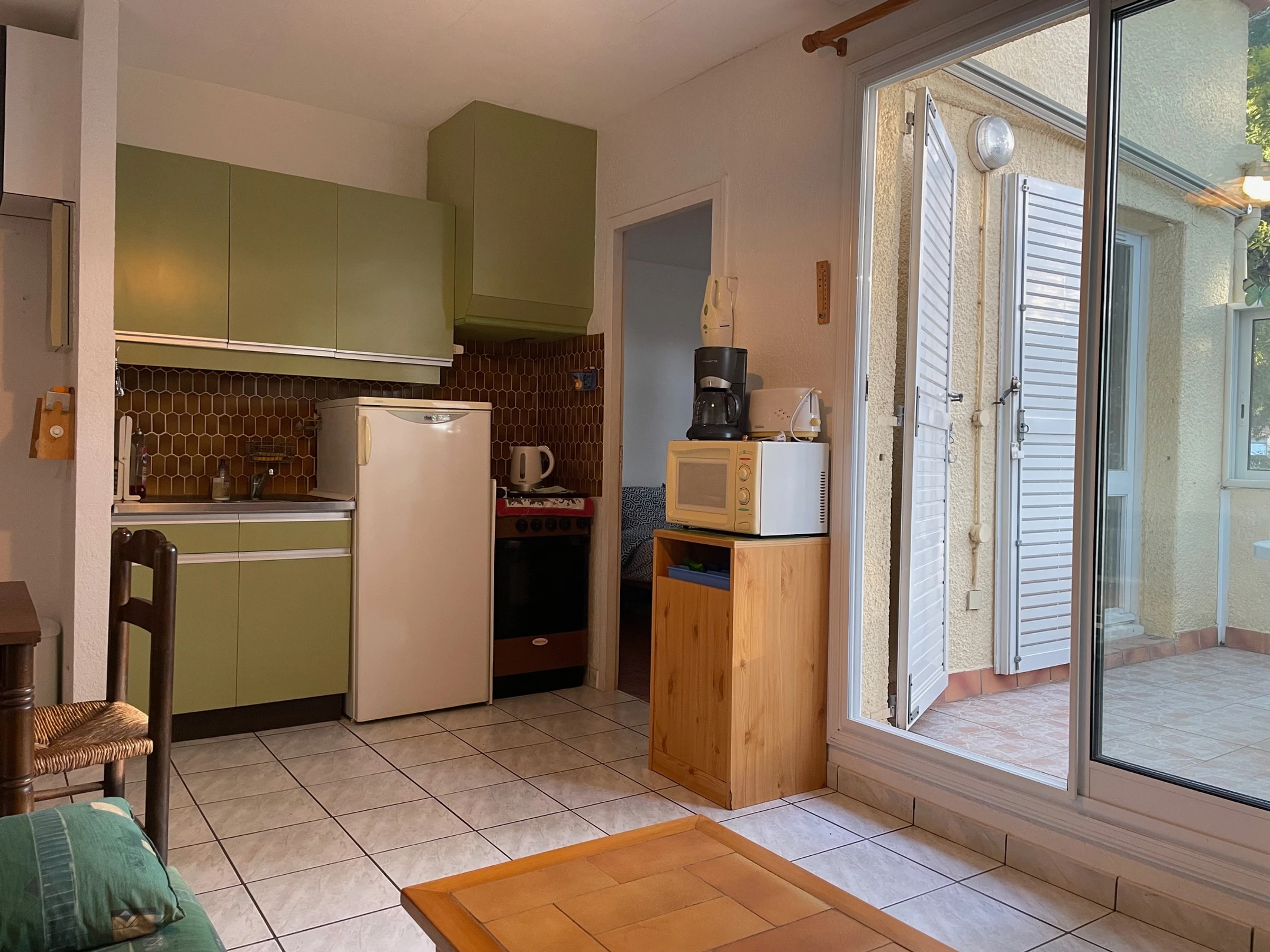 Il se compose d'une pièce à vivre avec coin cuisine aménagé et équipé, d'une chambre avec placard, d'une salle d'eau avec WC et d'une patio avec accès depuis le salon ou la chambre.