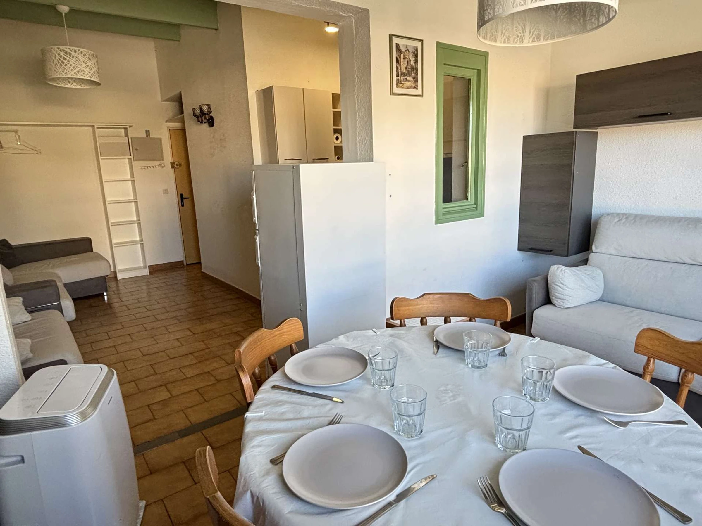 Les avantages de cette location dans le Sud : proche de la mer, court de tennis, piscine, loggia exposée Ouest, télévision, parking privé.