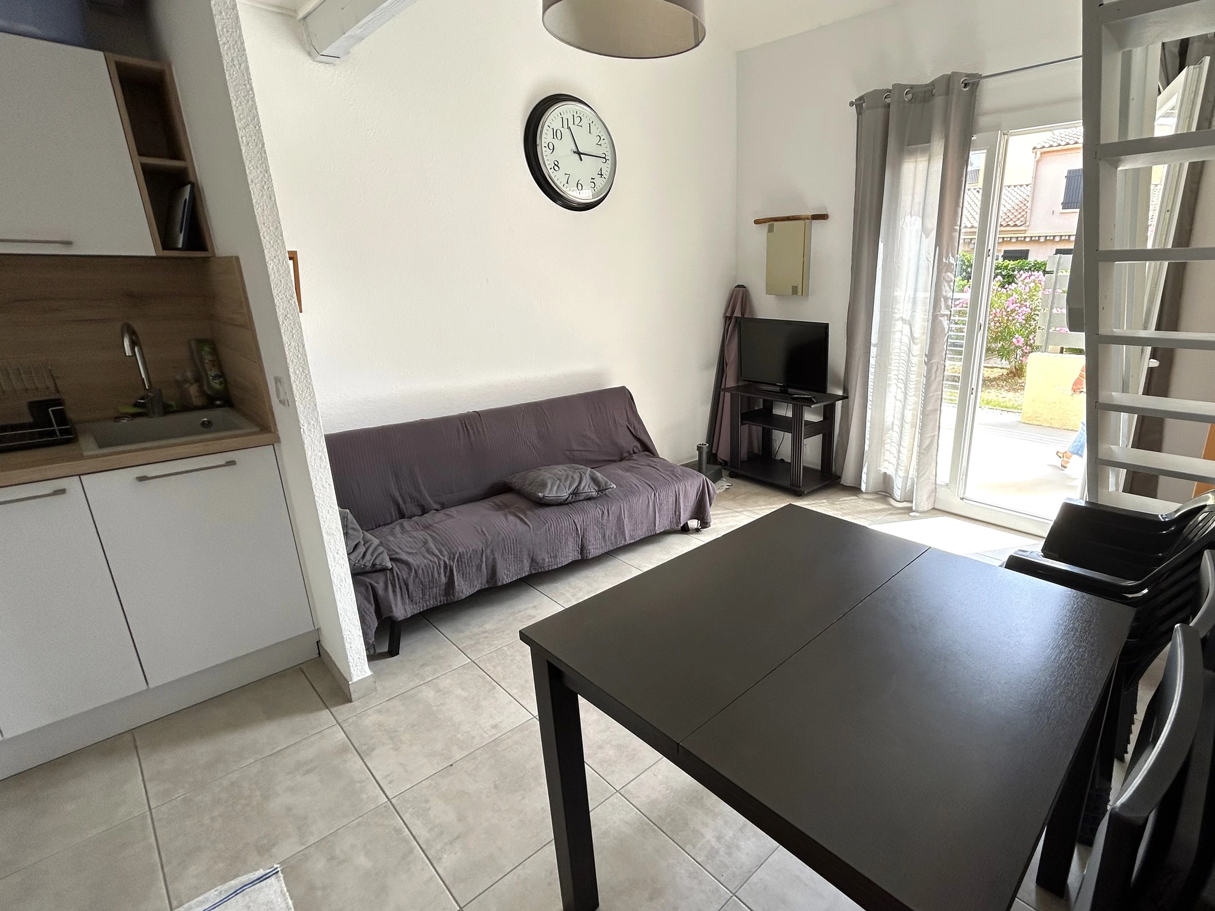 La maison est située dans une résidence à 350m de la plage et 50m des premiers commerces.