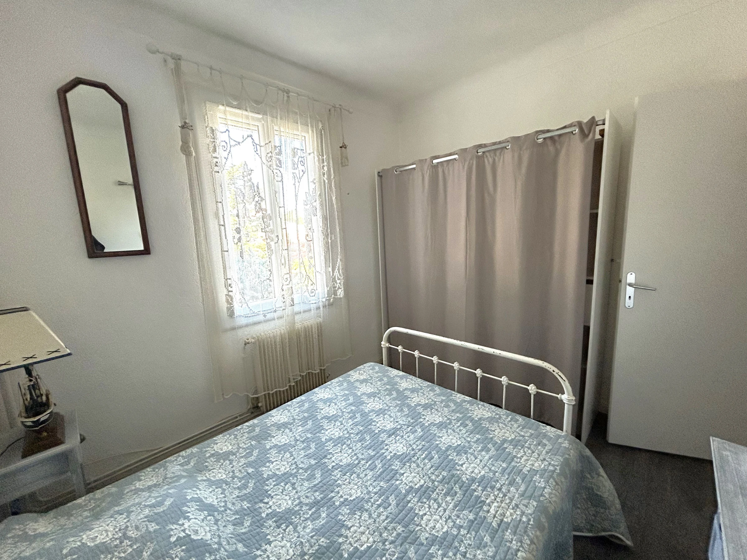 A l'étage on retrouve une chambre avec un lit 2 places en 140x190 et une chambre avec un lit 1 place en 120x190, une salle d'eau et un WC.
