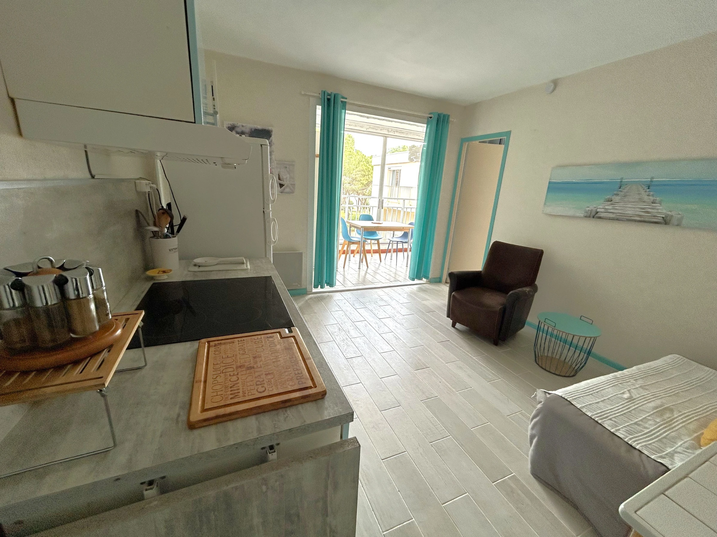Il est composé d'un séjour avec coin cuisine équipé : réfrigérateur/congélateur, micro-ondes/four, lave-vaisselle, lave-linge et télévision. Il dispose notamment d'une loggia vitrée de 8m²