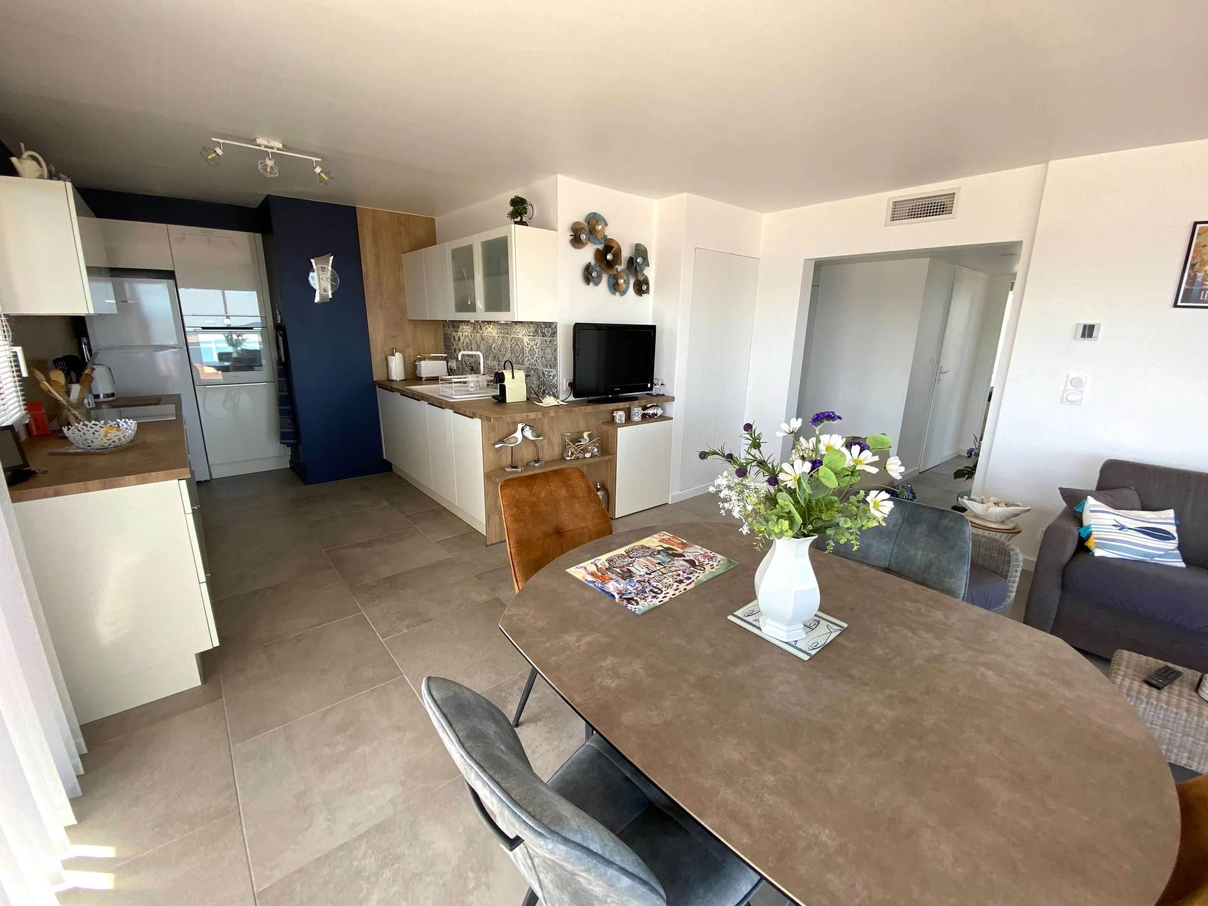 L'appartement est situé au 4ème et dernier étage d'une résidence en front de mer.