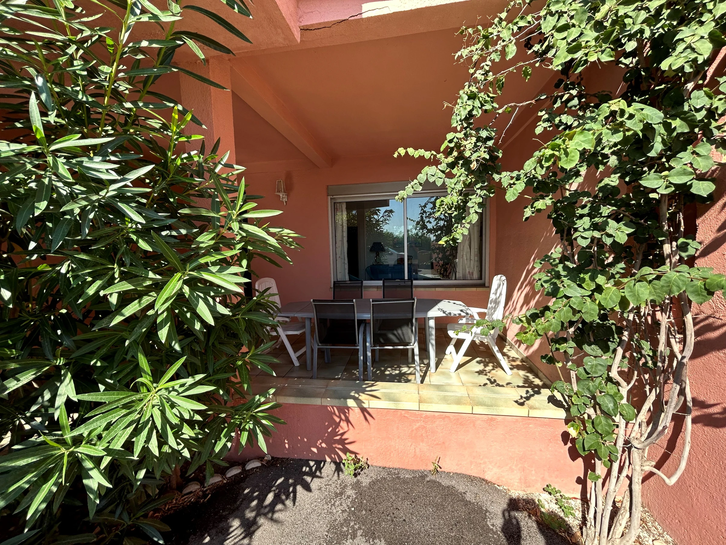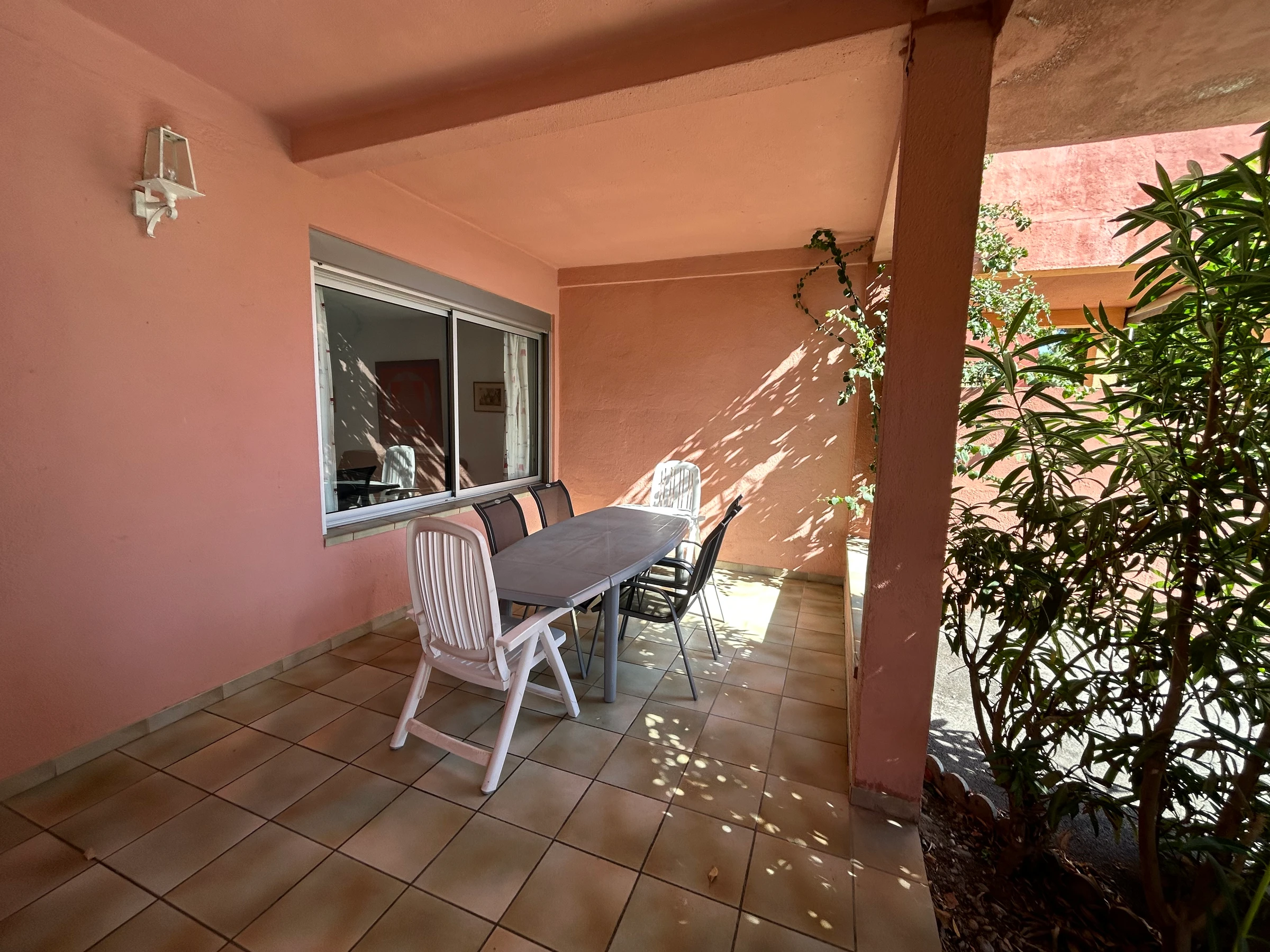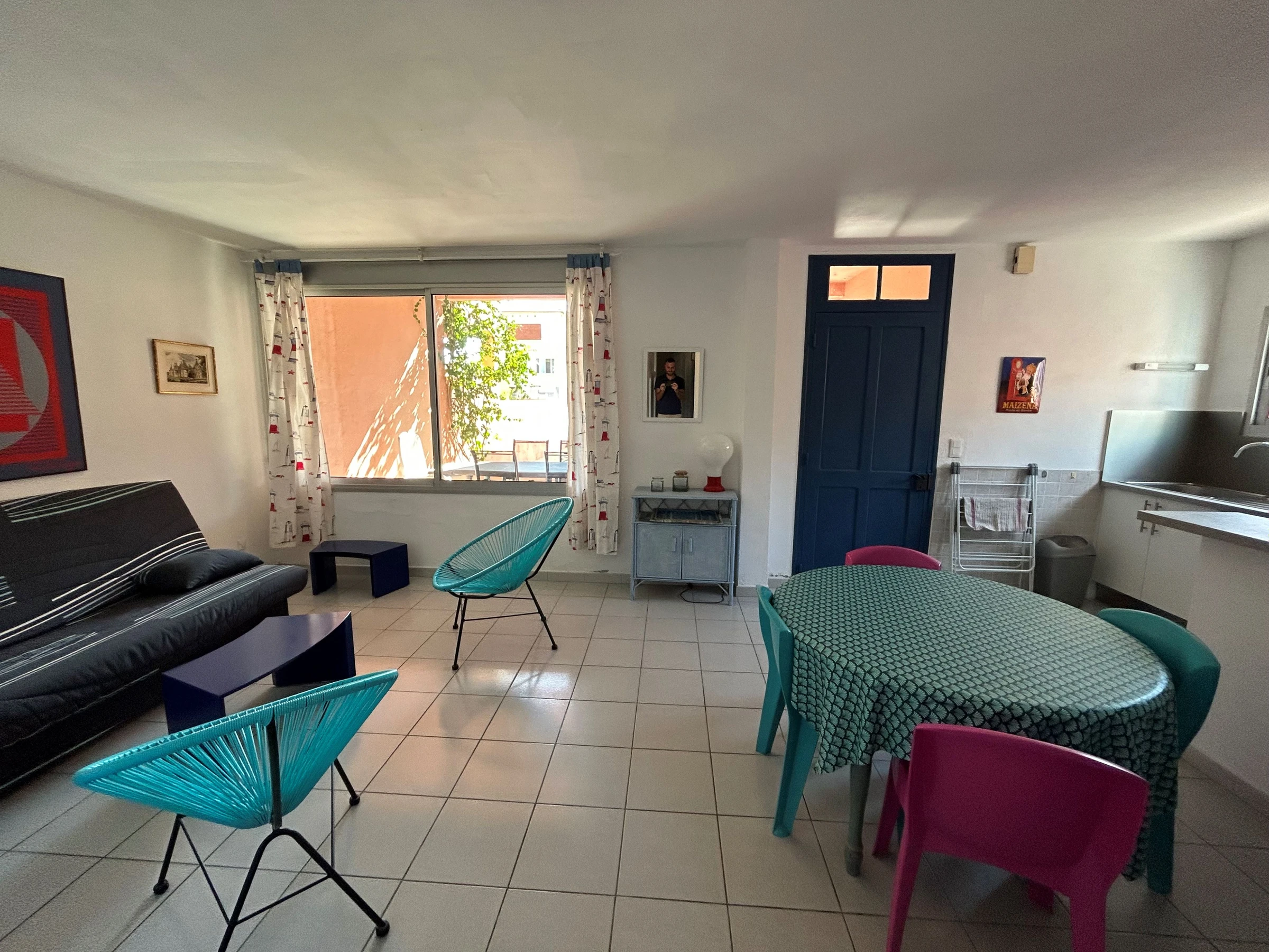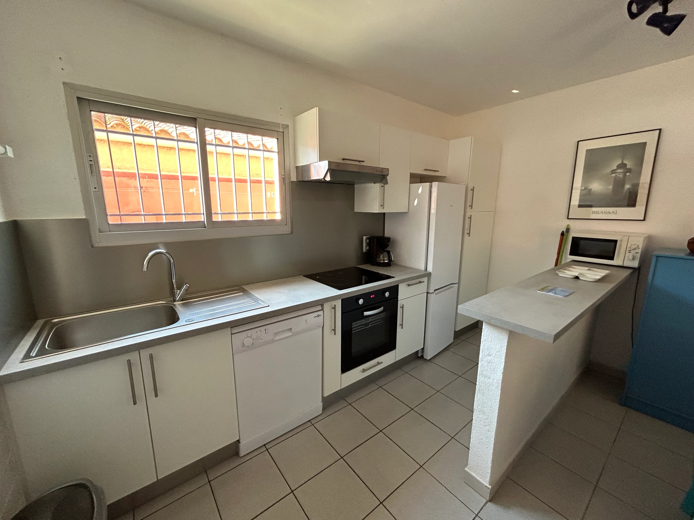 L'appartement est situé au rez-de-chaussée d'une villa à 50m de la mer. Il peut accueillir 6 personnes : 1 clic-clac 2 places dans le séjour, 2 lits 1 place dans une chambre et 1 lit 2 places dans une autre chambre. L'appartement est équipé d'un réfrigérateur/congélateur, de 4 plaques de cuisson, d'un four, d'un micro-ondes et d'un lave-linge (dans la buanderie commune avec le 1er étage). Il dispose notamment d'une terrasse de 16m² et d'une place pour garer une voiture dans la cour.