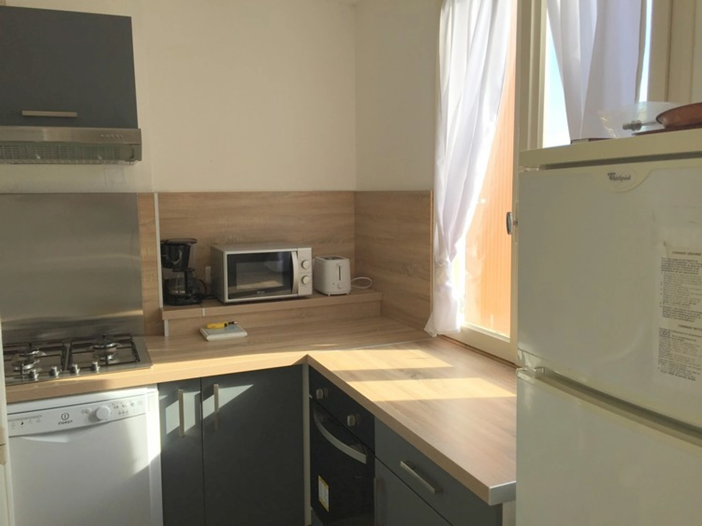 L'appartement est situé au 5ème étage d'une résidence en bord de plage. L'appartement est équipé d'un réfrigérateur/congélateur, de 4 feux gaz, d'un micro-onde, d'un four, d'un lave-linge, d'un lave-vaisselle et d'une télévision.