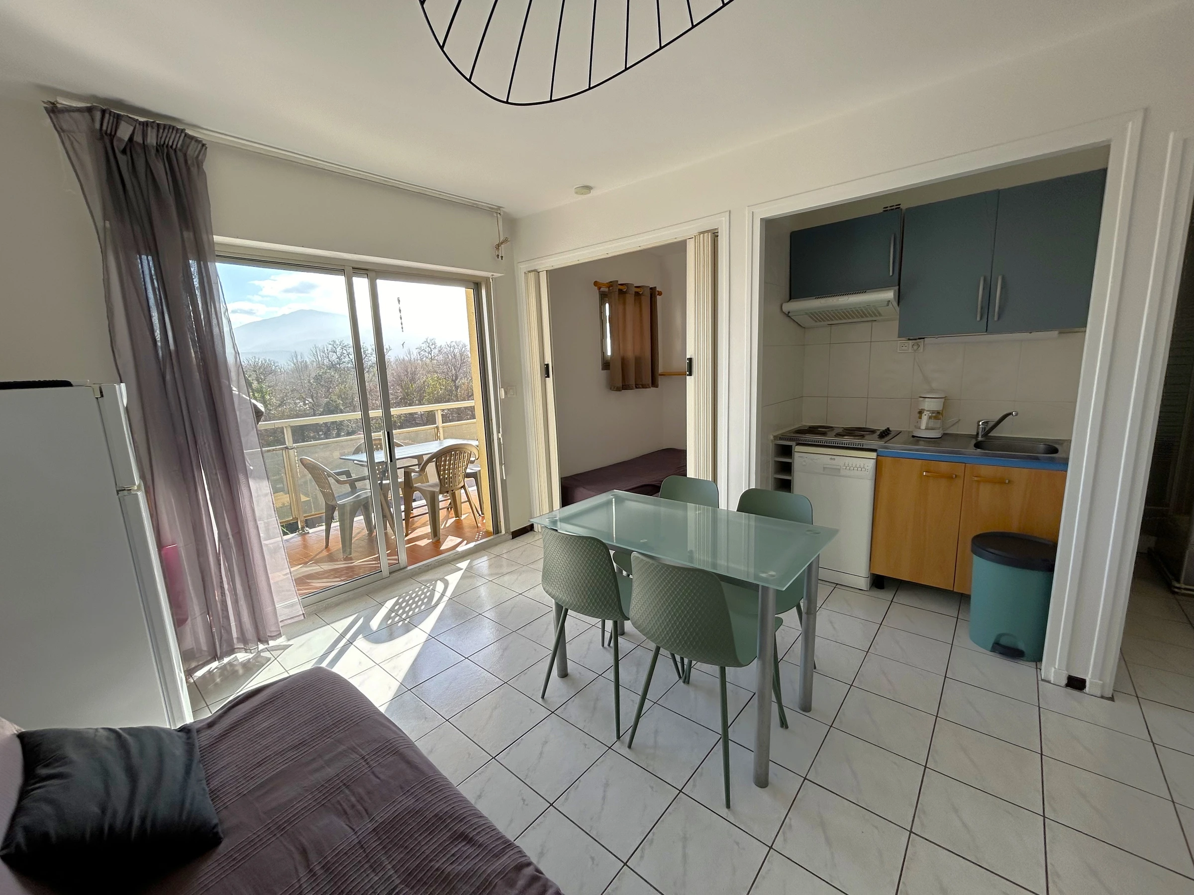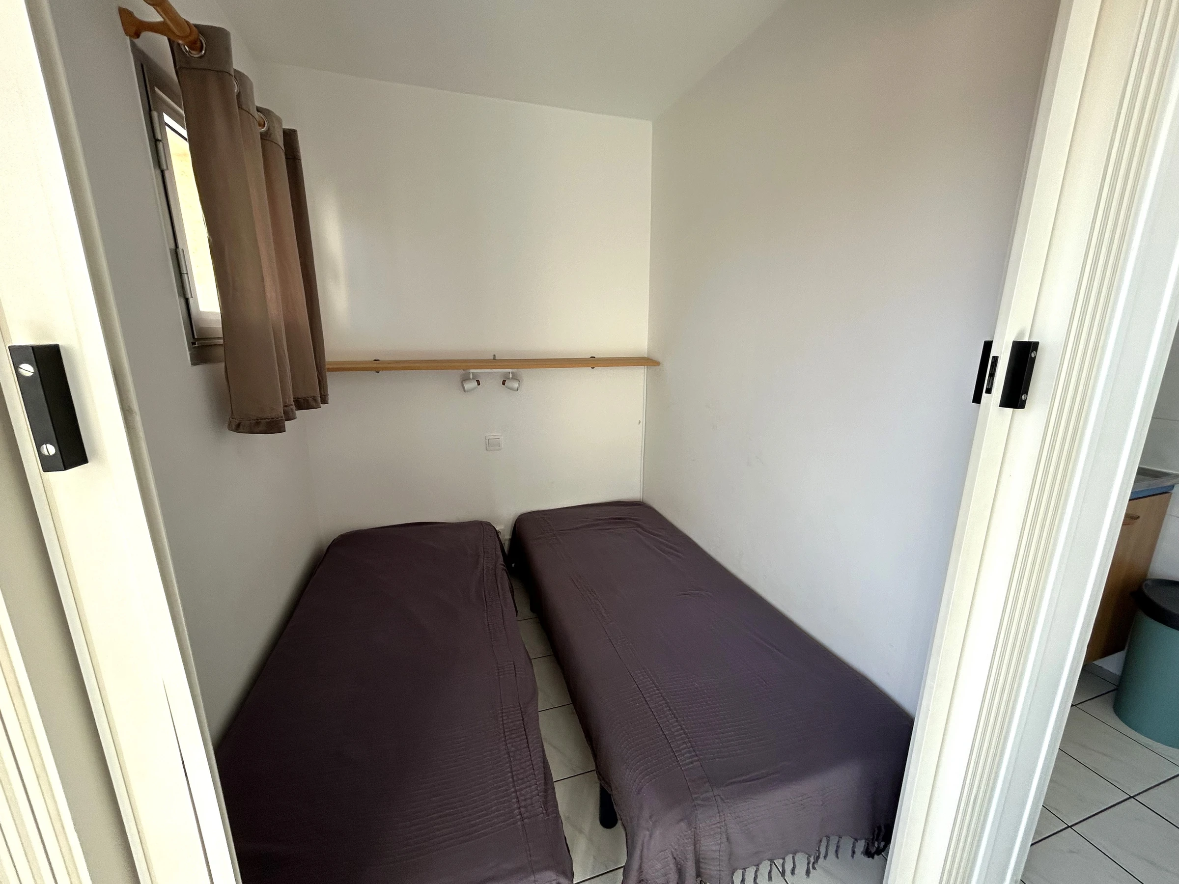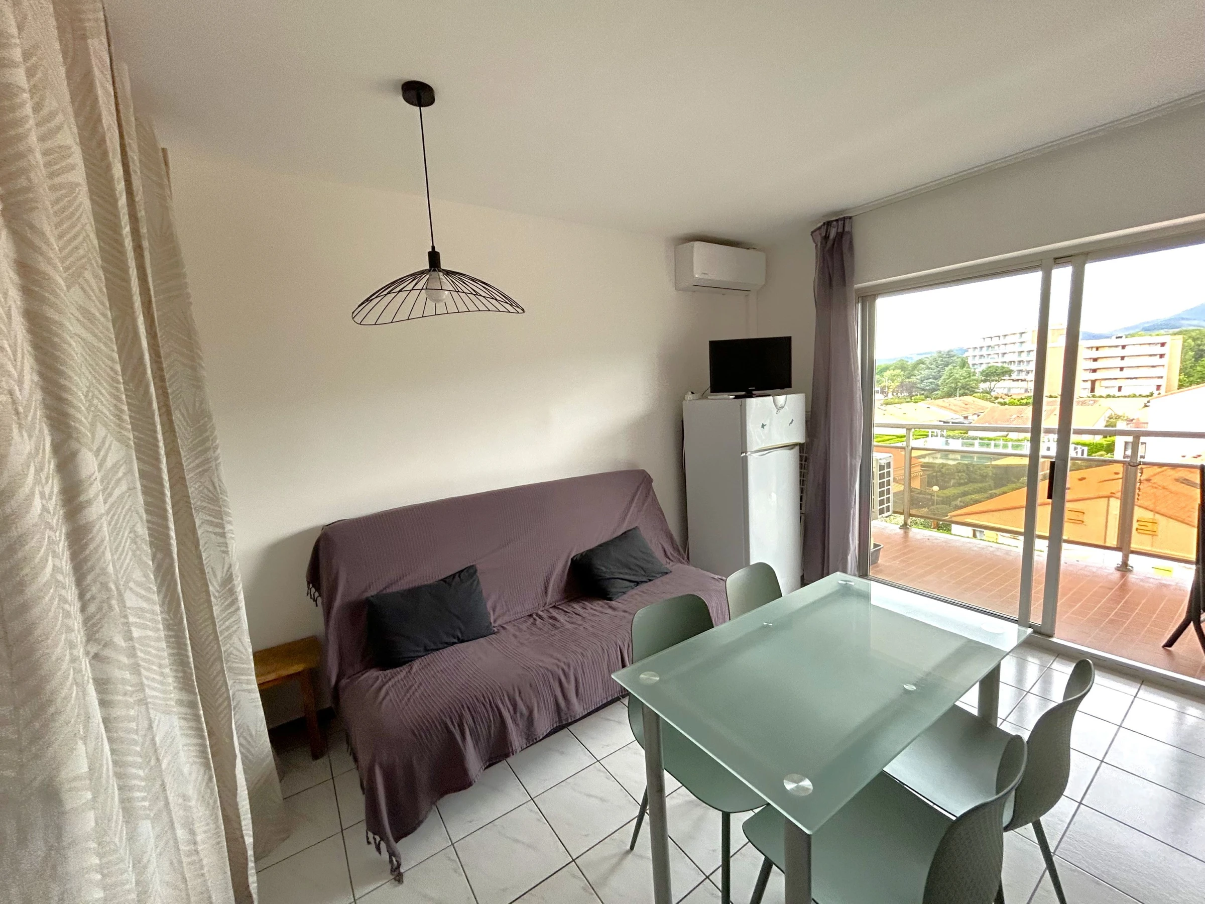 L'appartement est situé au 3ème étage d'une résidence sécurisée à 300m de la plage. Il peut accueillir 4 personnes : 1 clic-clac 2 places dans le séjour et 2 lits 1 places dans l'alcôve. L'appartement est équipé d'un réfrigérateur/congélateur, d'un micro-ondes, de 4 plaques électriques, d'un lave-linge, d'un lave-vaisselle, d'une télévision et de la climatisation. Il dispose aussi d'un balcon de 6m² exposition sud, avec vue dégagée et d'une place de parking privée dans la résidence.