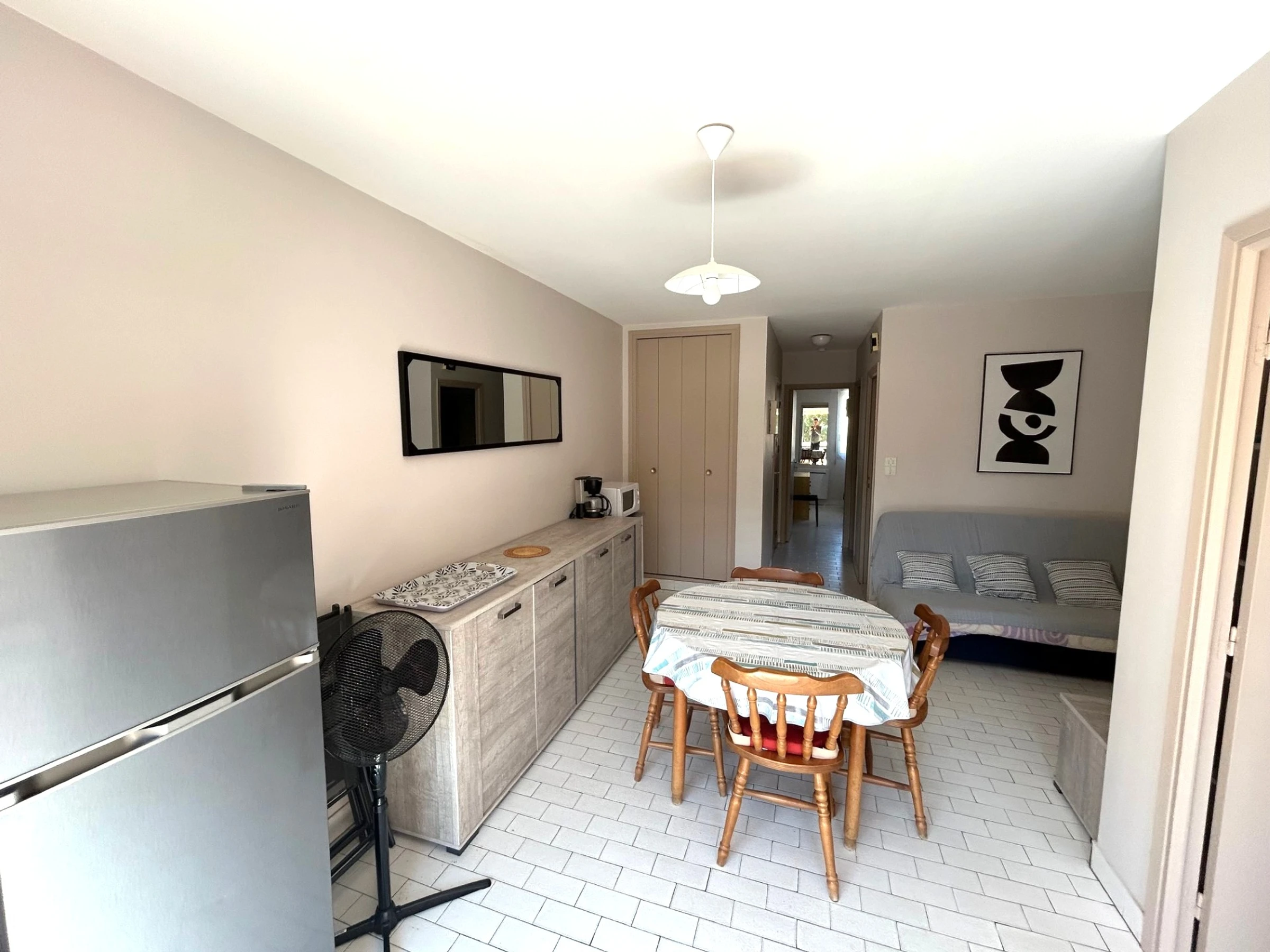 L'appartement est situé au 2ème et dernier étage d'une résidence à 60m de la plage. Il peut accueillir 4 personnes : 1 clic-clac 2 places dans le séjour et 2 lits 1 place dans la chambre. L'appartement est équipé d'un réfrigérateur/congélateur, de 4 plaques électriques, d'un four, d'un micro-ondes, d'un lave-vaisselle, d'un lave-linge et d'une télévision. Il dispose notamment d'un balcon de 6m² et d'une place de parking privée.