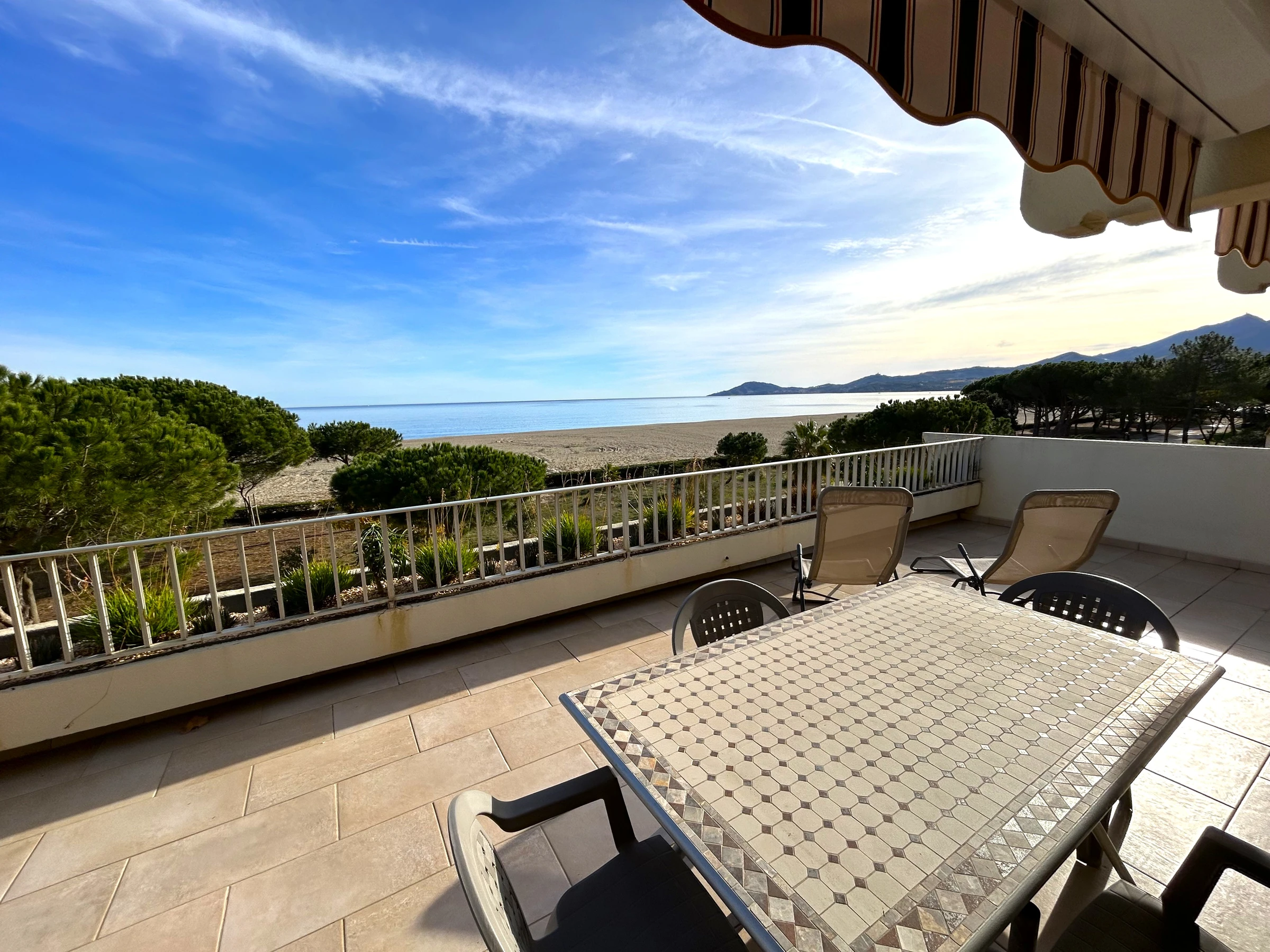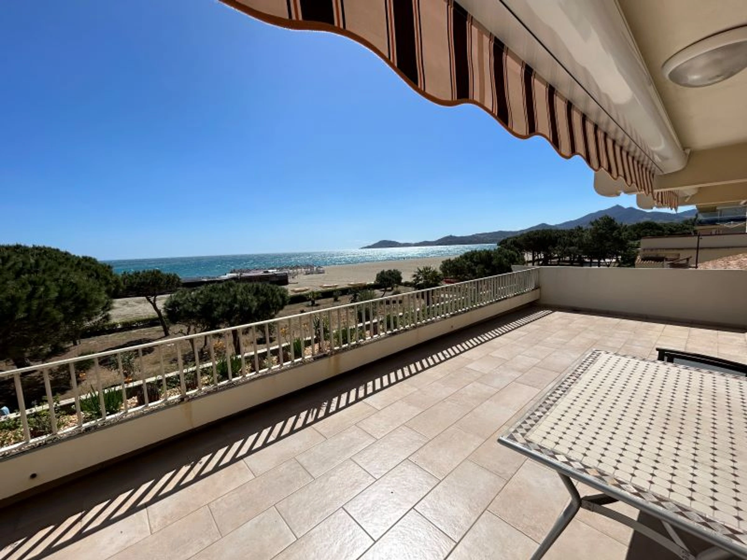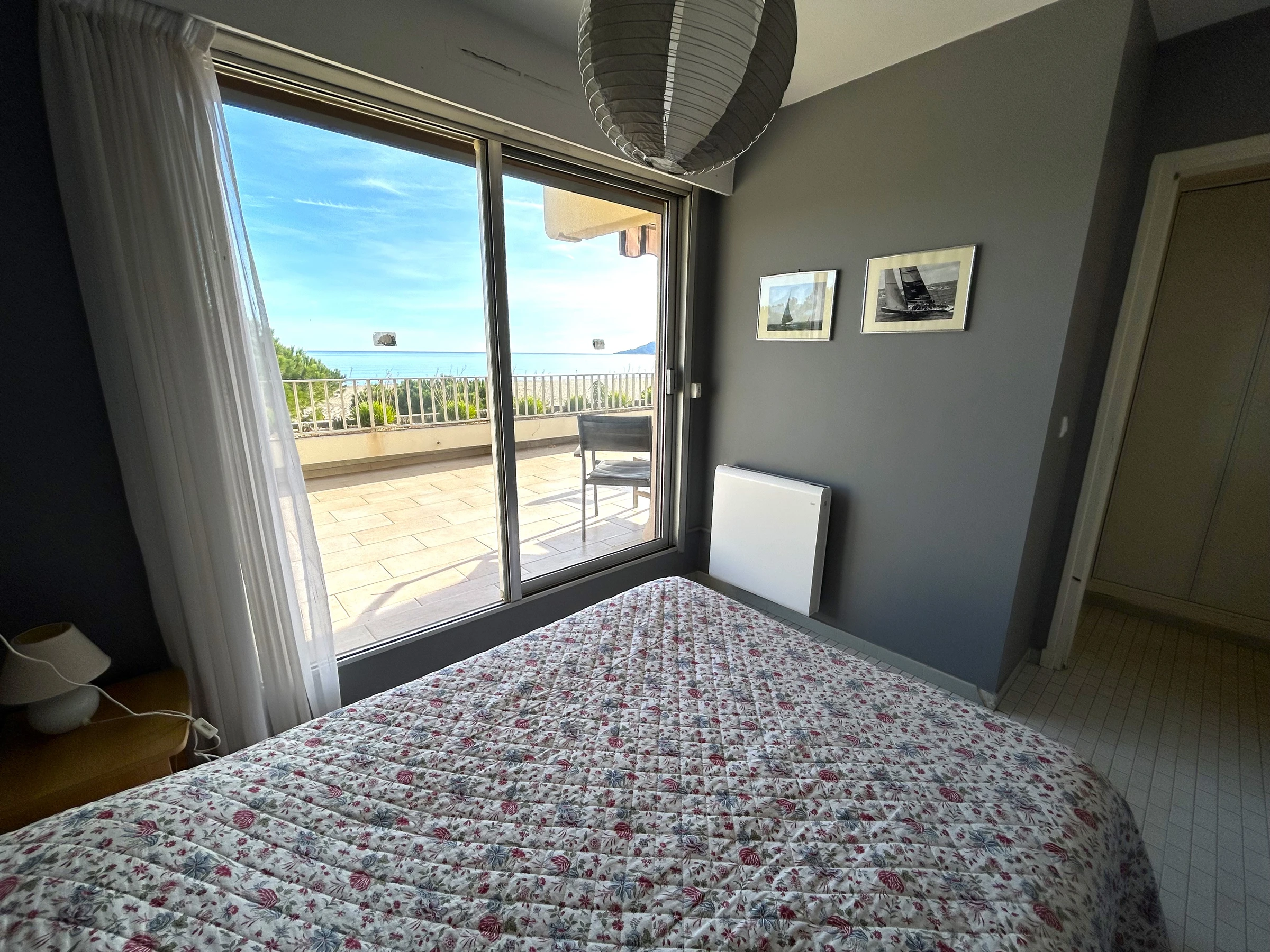 L'appartement est situé au 2ème étage d'une résidence en bord de plage. Il peut accueillir 6 personnes : 1 lit 2 places dans une chambre, 2 lits 1 place dans une chambre et 1 BZ 2 places dans le séjour. L'appartement est équipé d'un réfrigérateur/congélateur, de 4 plaques induction, d'un micro-ondes, d'un four, d'un lave-linge, d'un lave-vaisselle et d'une télévision. L'atout charme de l'appartement : sa terrasse de 67m² face à la mer.