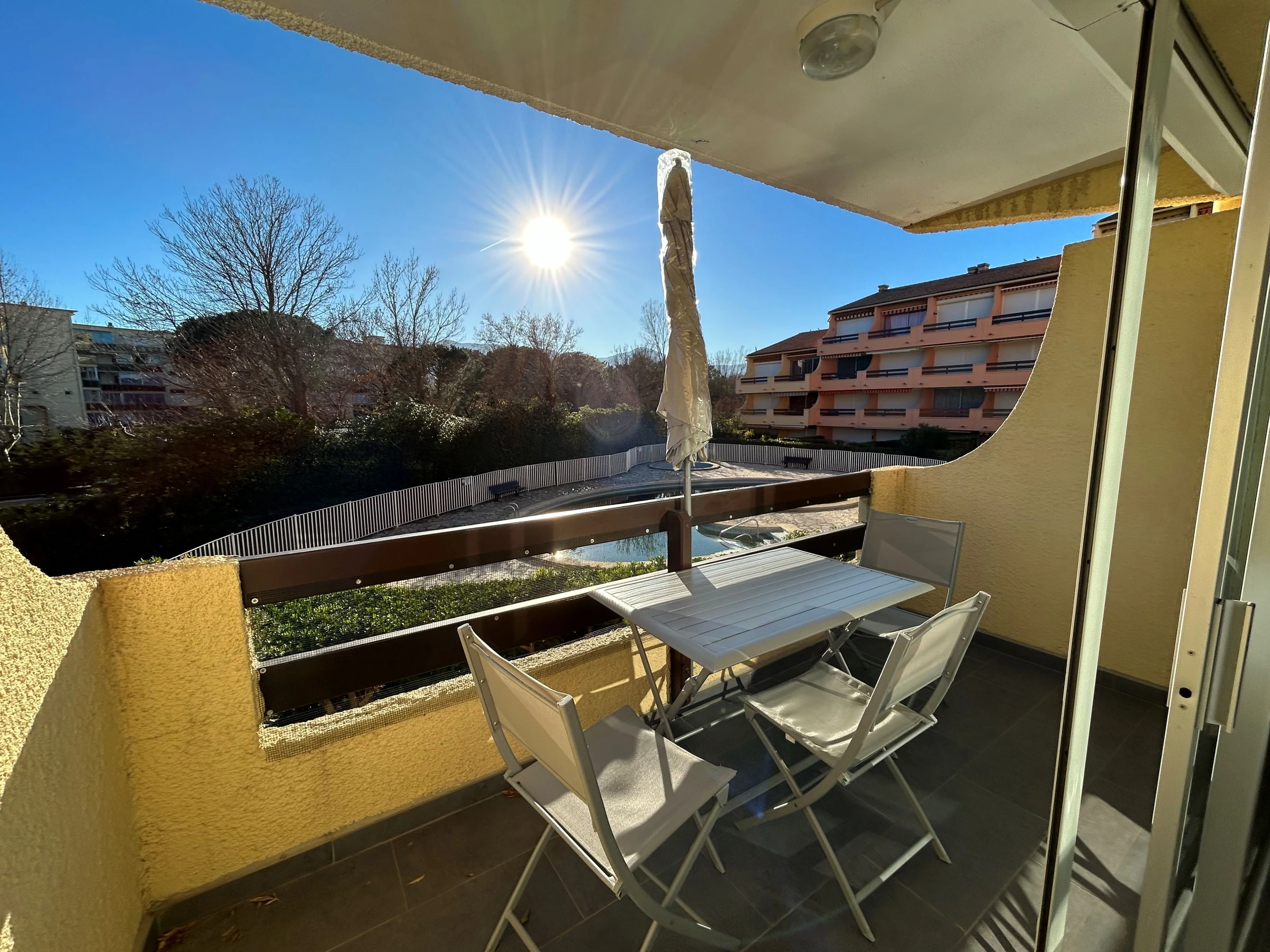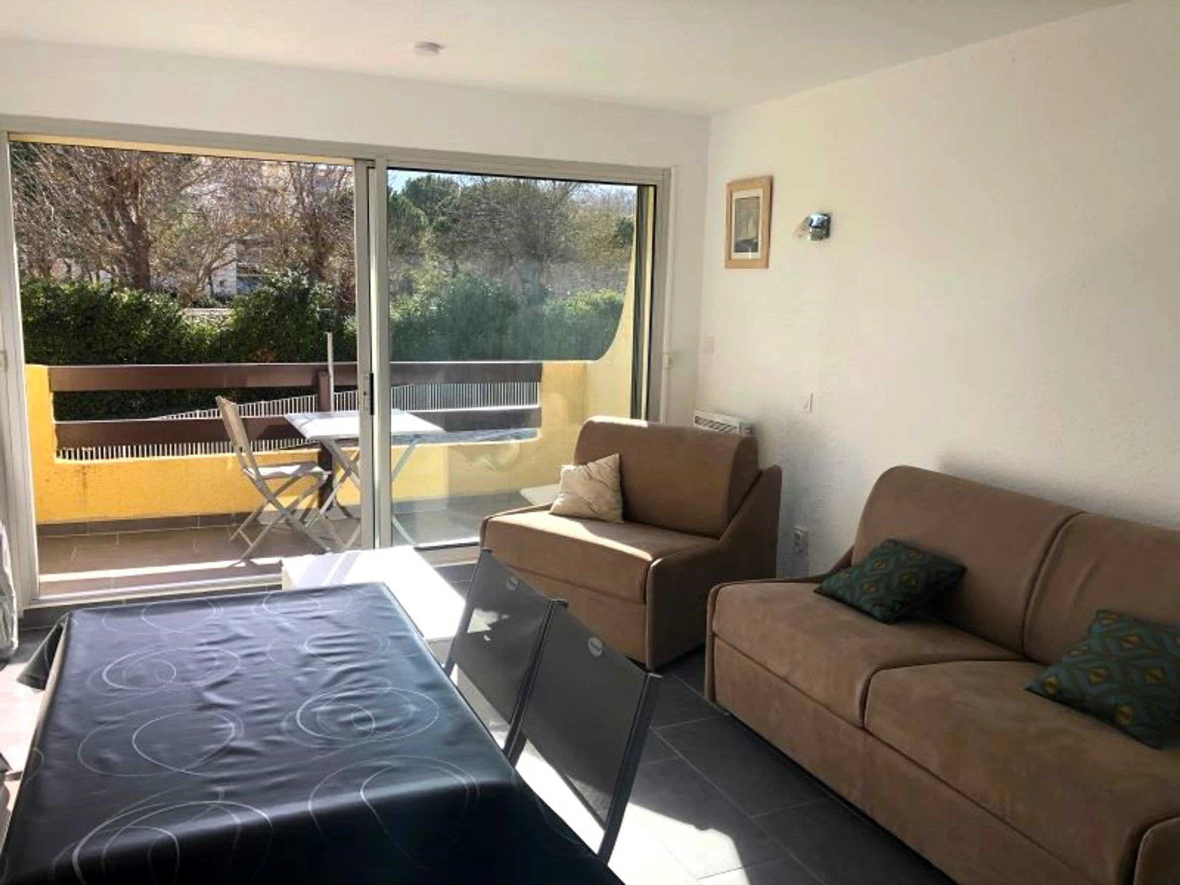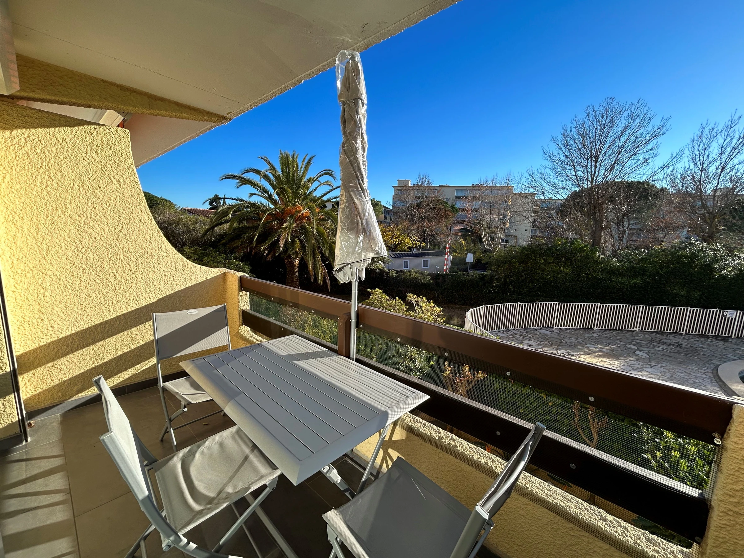 L'appartement est situé au premier étage d'une résidence à 350m de la plage, avec piscine. Il peut accueillir 4 à 5 personnes: un canapé 2 personnes dans le séjour et une chambre avec un lit 2 places + 1 lit une place mezzanine. L'appartement est équipé d'un réfrigérateur/congélateur, de 4 plaques induction, d'un combi four/micro-ondes, d'un lave-vaisselle, d'un lave-linge et d'une télévision. Il dispose notamment d'un balcon de 6m² exposition sud et d'une place de parking privée.