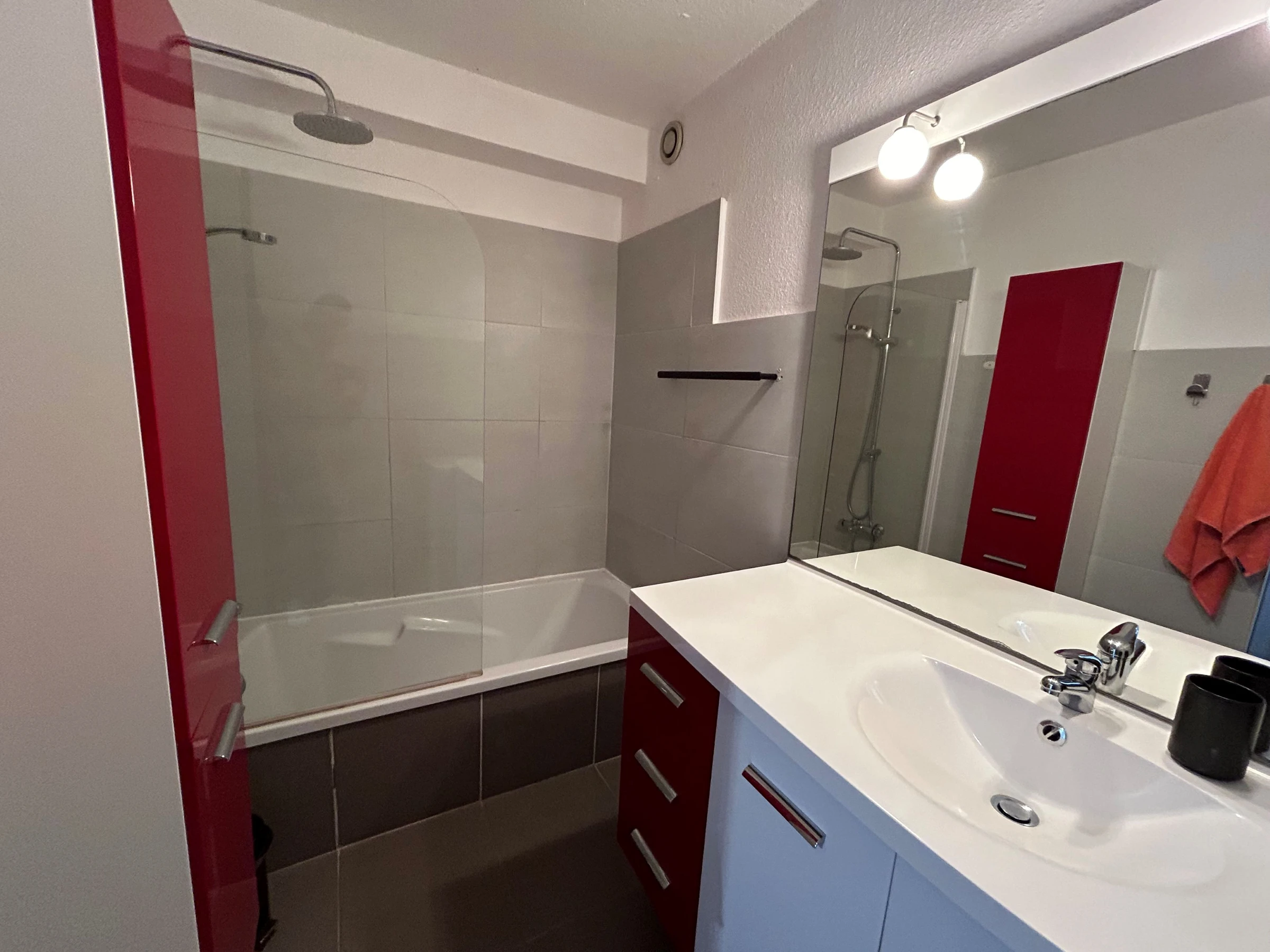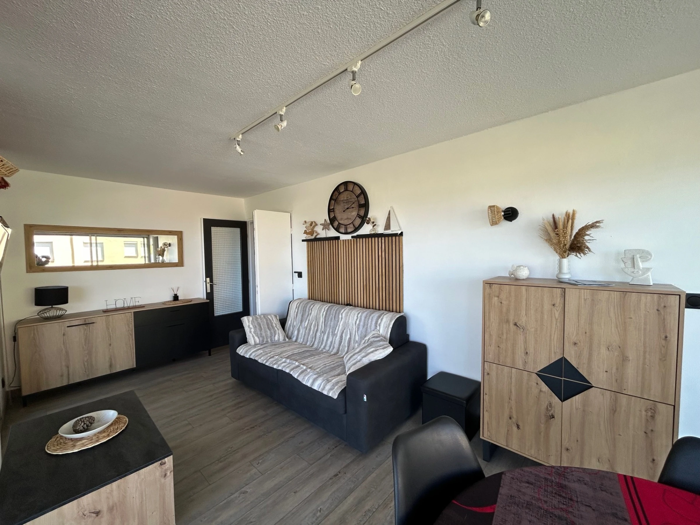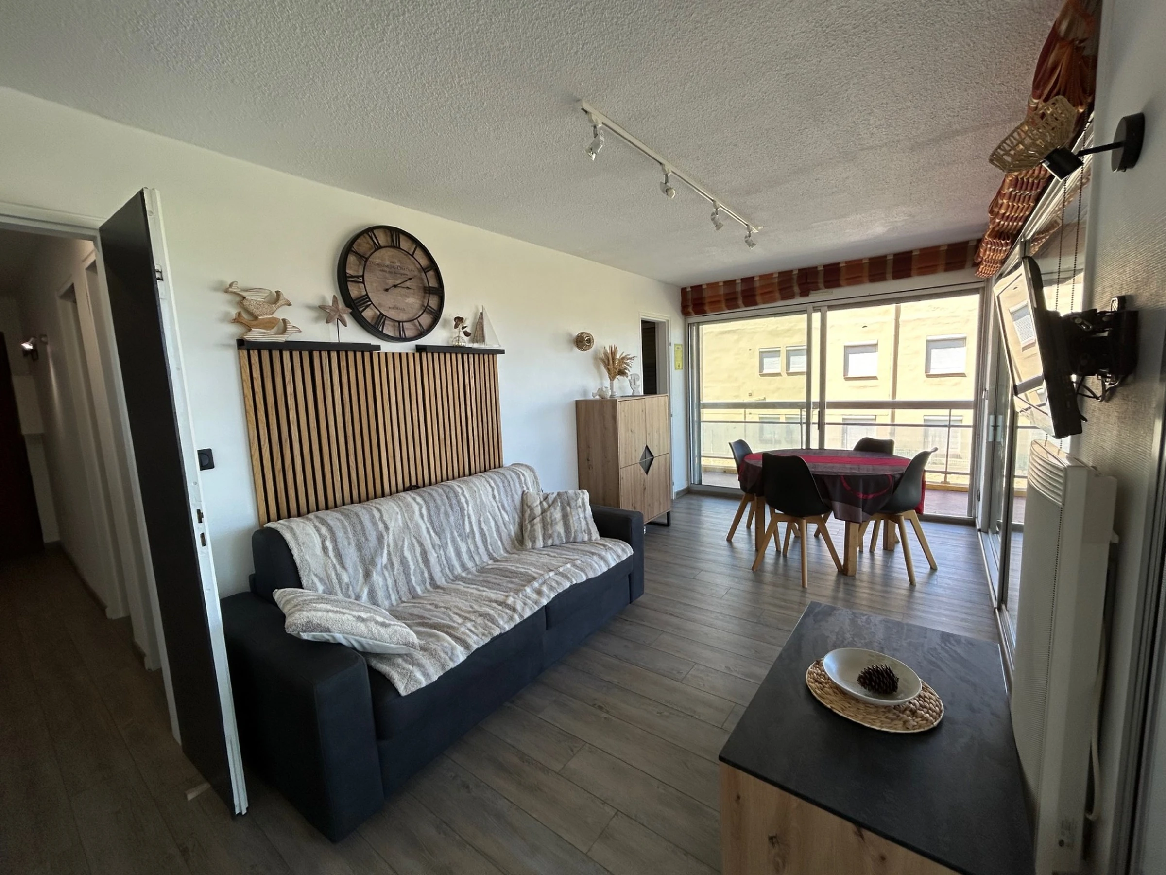 L'appartement est situé au premier étage d'une résidence en front de mer. Il peut accueillir 6 personnes : 1 chambre face mer composée d'un lit avec 2 matelas 1 place , 1 chambre avec 1 BZ 2 places et 1 lit 2 places mezzanine et 1 clic-clac 2 places dans le séjour. L'appartement est équipé d'un réfrigérateur/congélateur, de 4 plaques de type vitrocéramique, d'un four, d'un micro-ondes, d'un lave-Linge, d'un lave-vaisselle et d'une télévision, d'une terrasse face à la mer de 45m² et d'une place de parking privée.