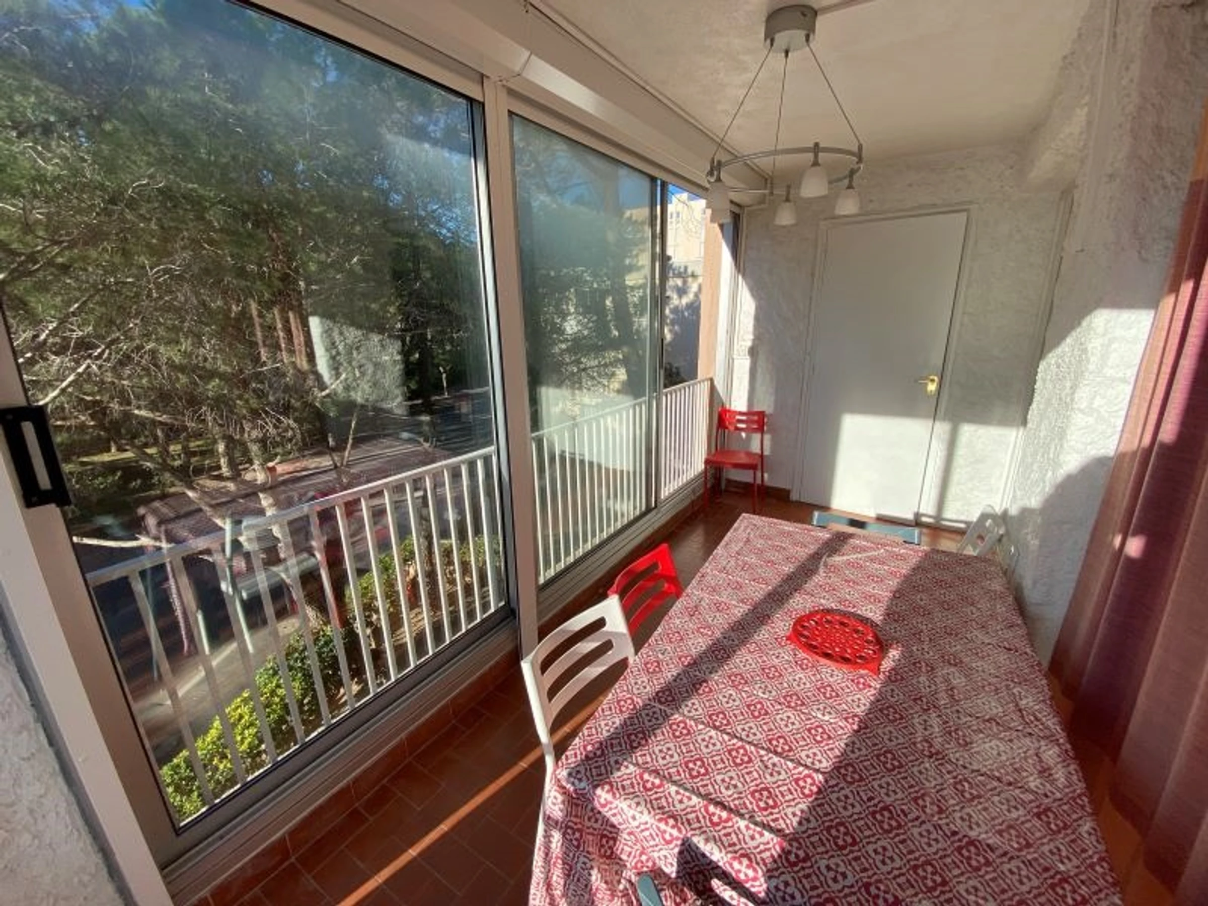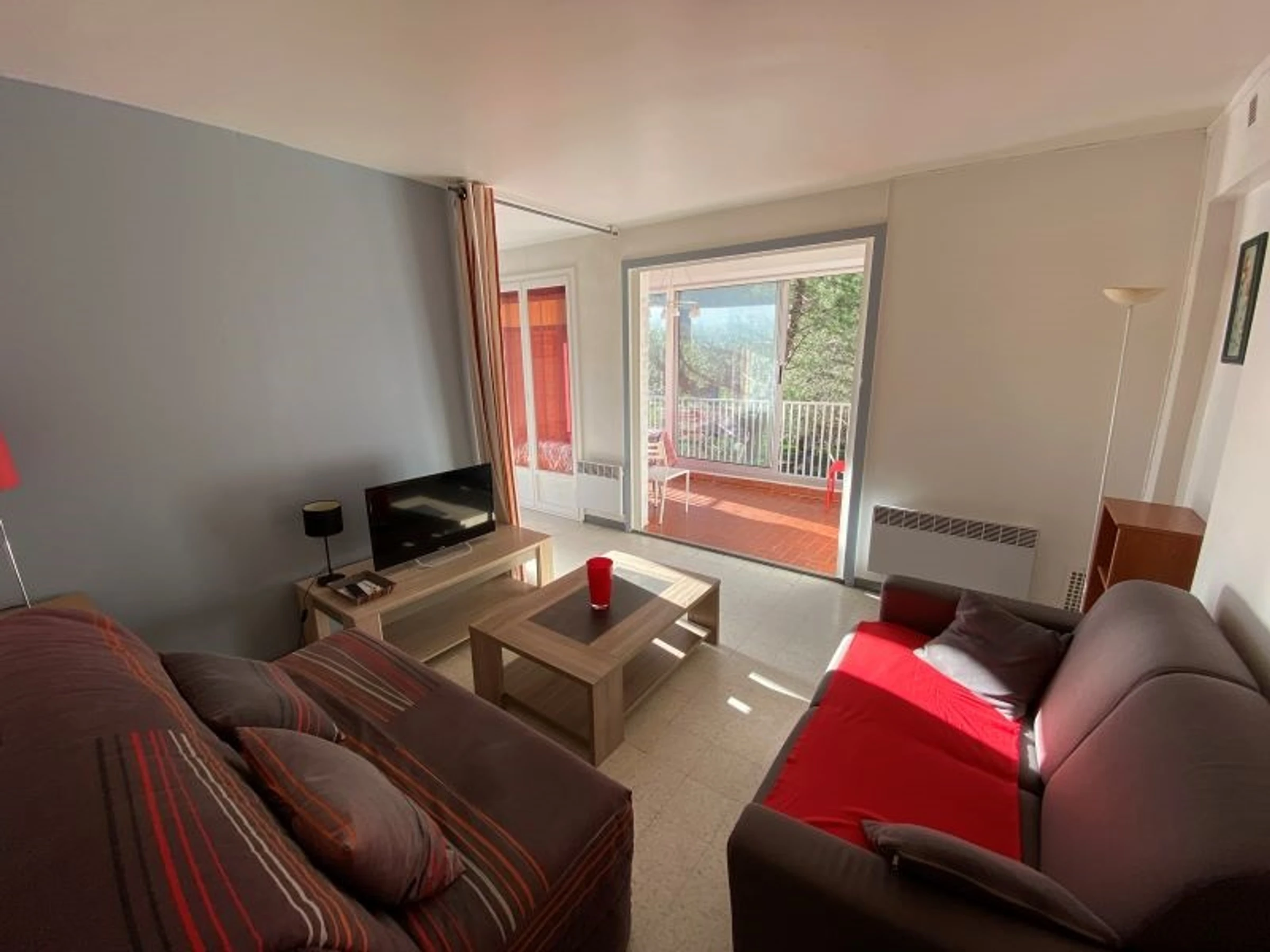 L'appartement est situé au 2ème étage d'une résidence en bord de plage. Il peut accueillir 4 personnes : 1 canapé 2 places dans le séjour + 2 lits 1 place dans la chambre. La chambre et le séjour sont séparés par un rideau. L'appartement est équipé d'un réfrigérateur/congélateur, d'un micro-ondes, d'un lave-vaisselle, d'un lave-linge et d'une télévision. Il dispose notamment d'une loggia vitrée de 8m².