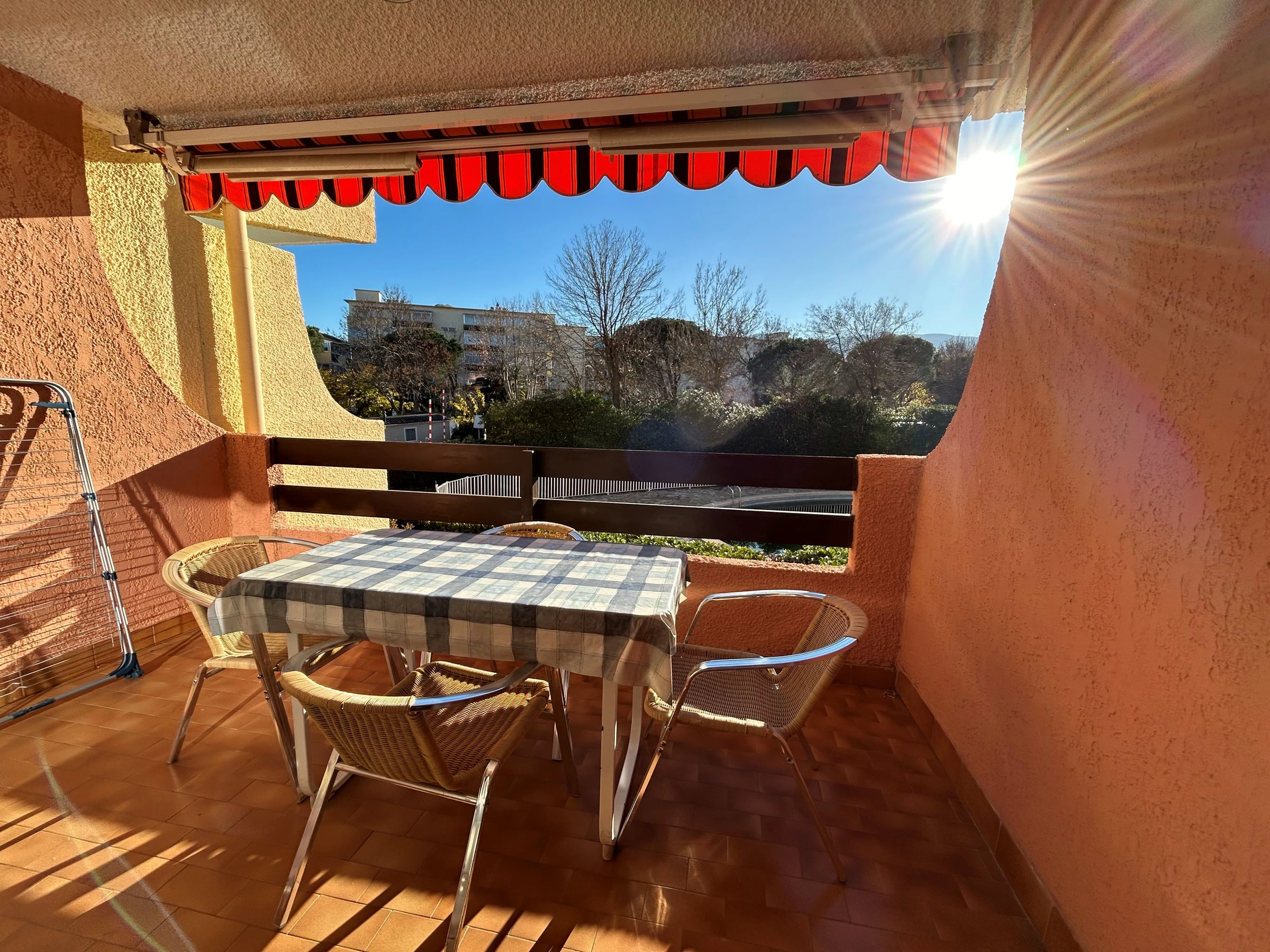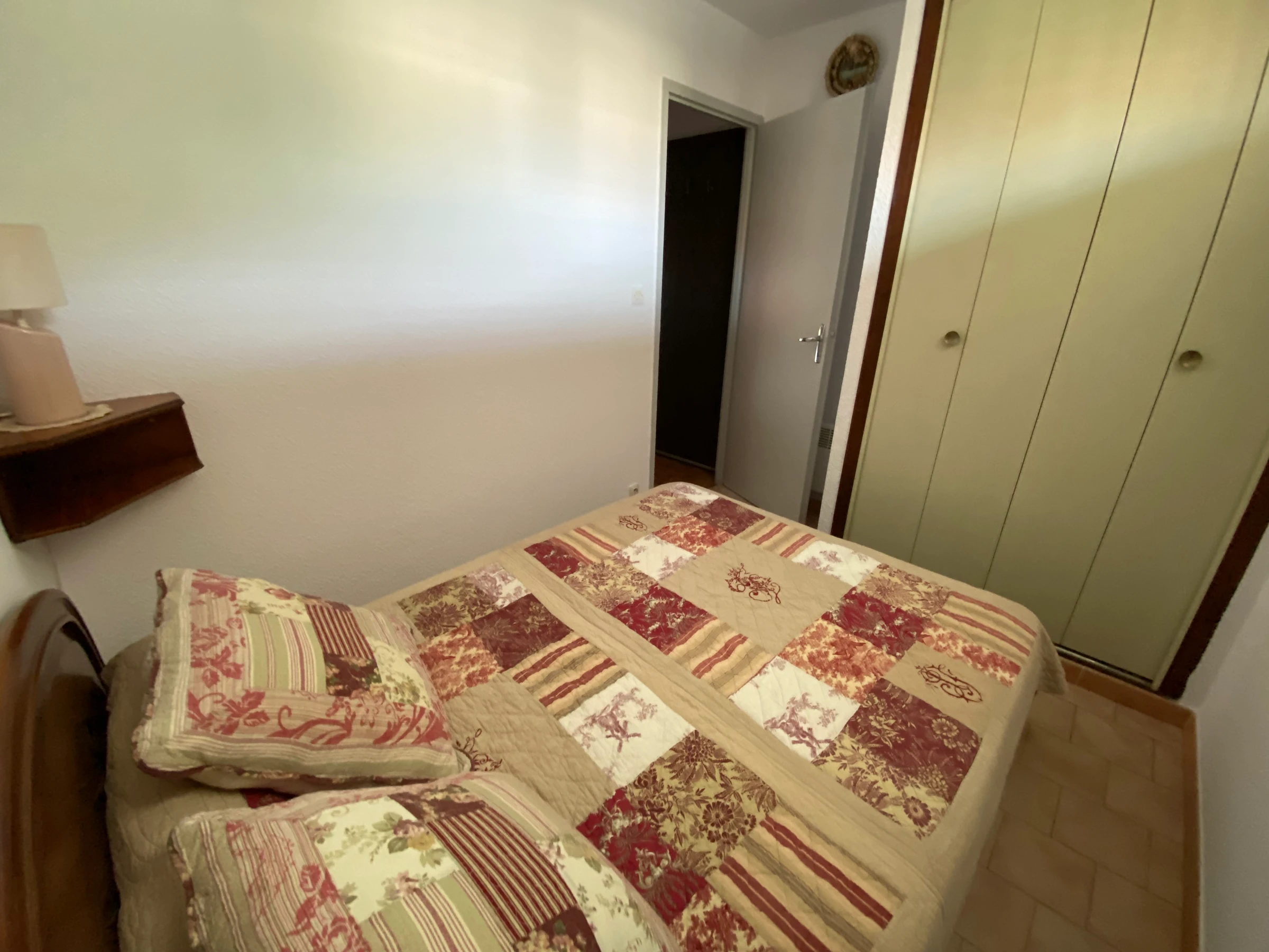 L'appartement est situé au 1er étage d'une résidence avec piscine à environ 350m de la plage. Il peut accueillir 4 personnes : 1 canapé 2 places dans le séjour et 1 lit 2 places dans la chambre. L'appartement est équipé d'un réfrigérateur, de 2 plaques électriques, d'un four , d'un micro-ondes, d'un lave-linge et d'une télévision. Il dispose notamment d'une place de parking privée et d'un balcon de 6m².