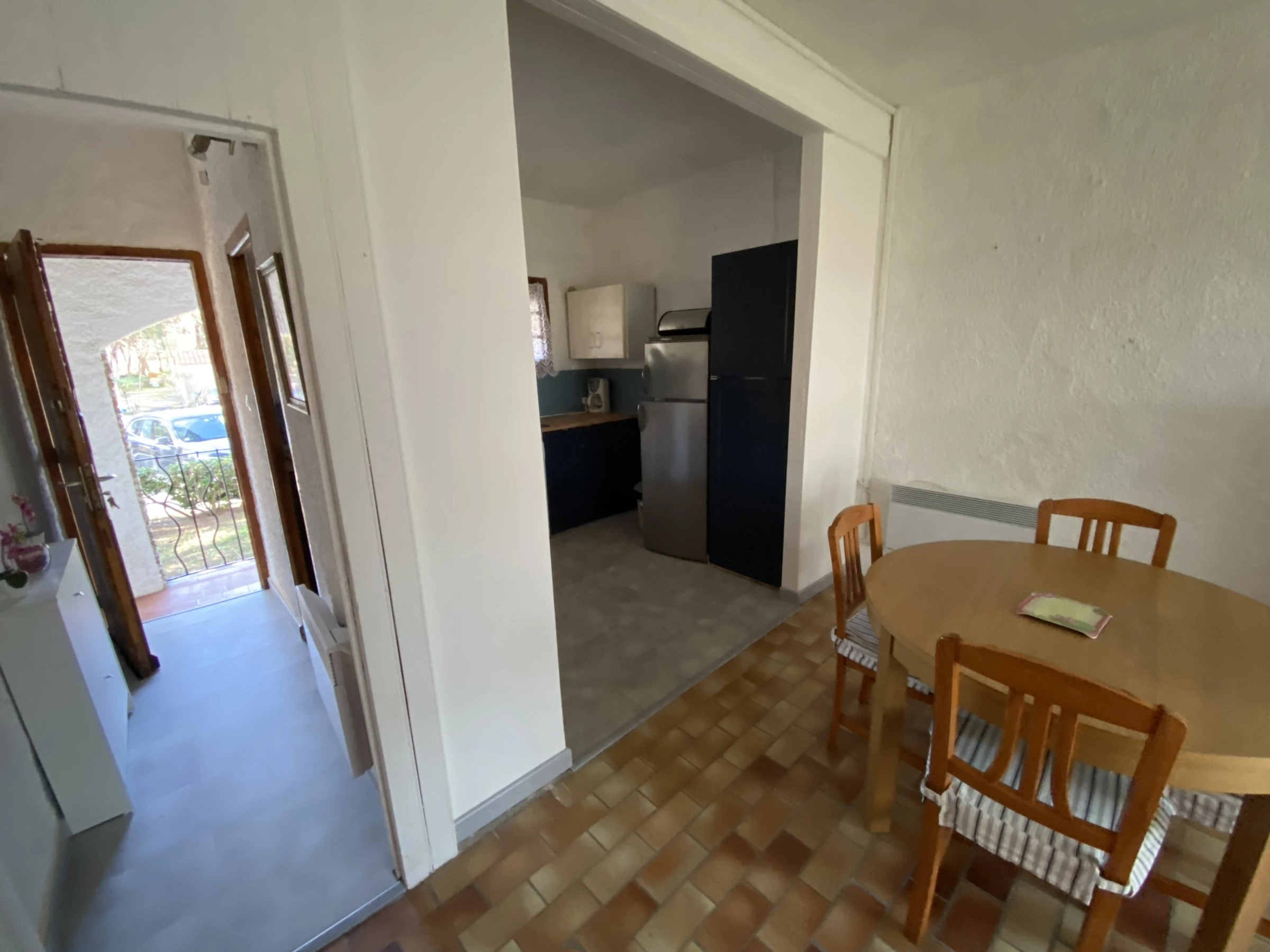 L'appartement est situé au rez-de-chaussée d'une résidence à 150m de la plage et proche des commerces.
