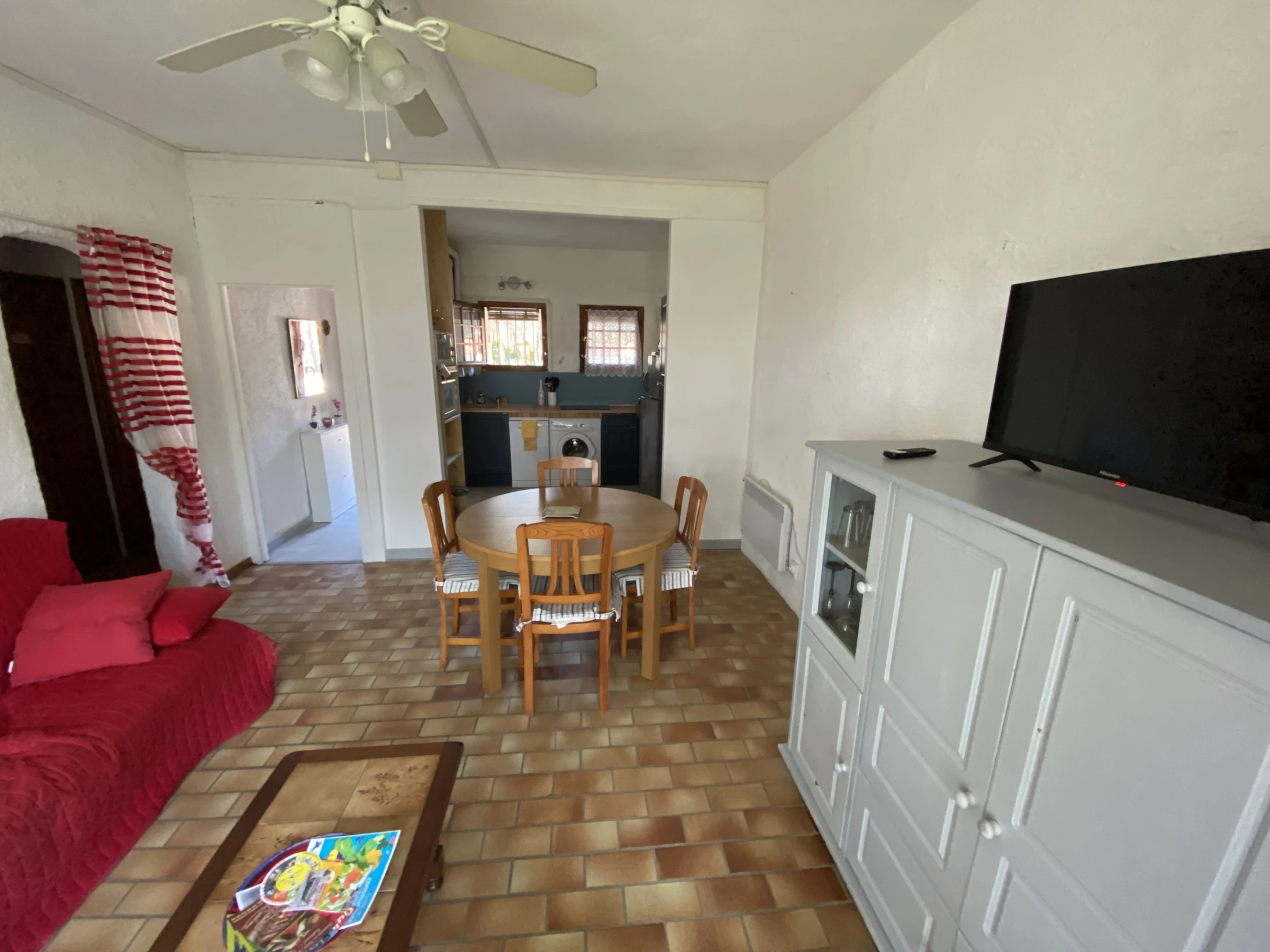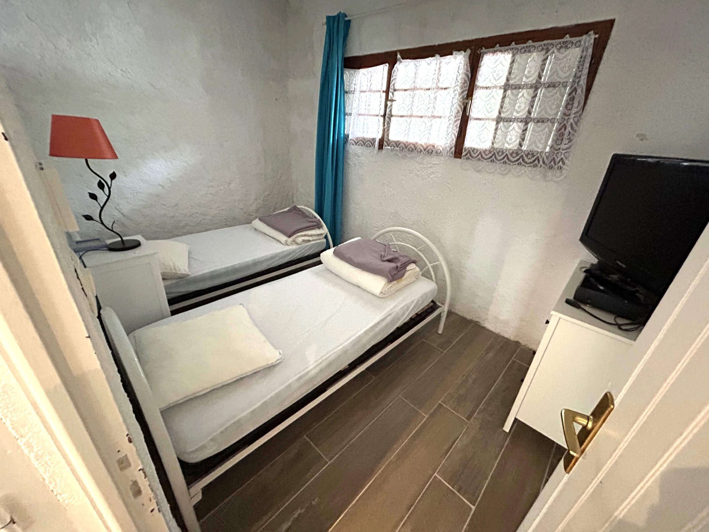 Il peut accueillir 6 personnes : 1 lit 2 places dans une chambre, 2 lits 1 place dans une seconde chambre et 1 canapé clic-clac 2 places dans le séjour.