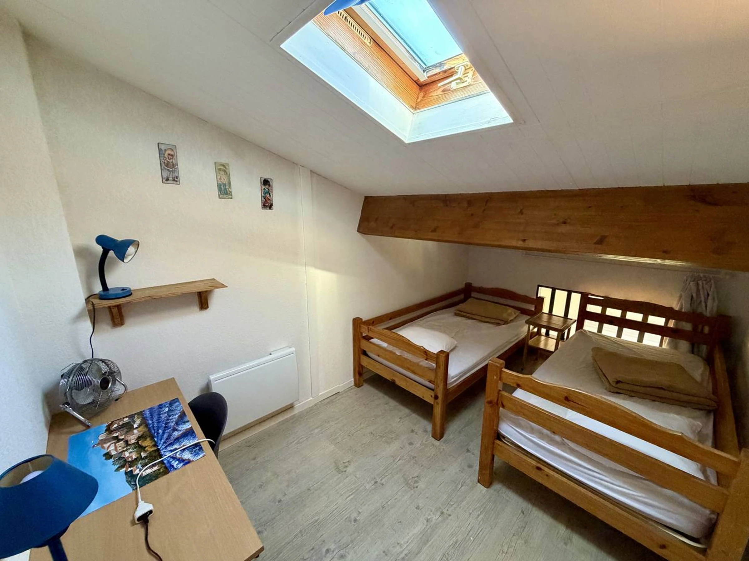 Mezzanine avec trois lits simples, idéale pour accueillir enfants, famille ou amis