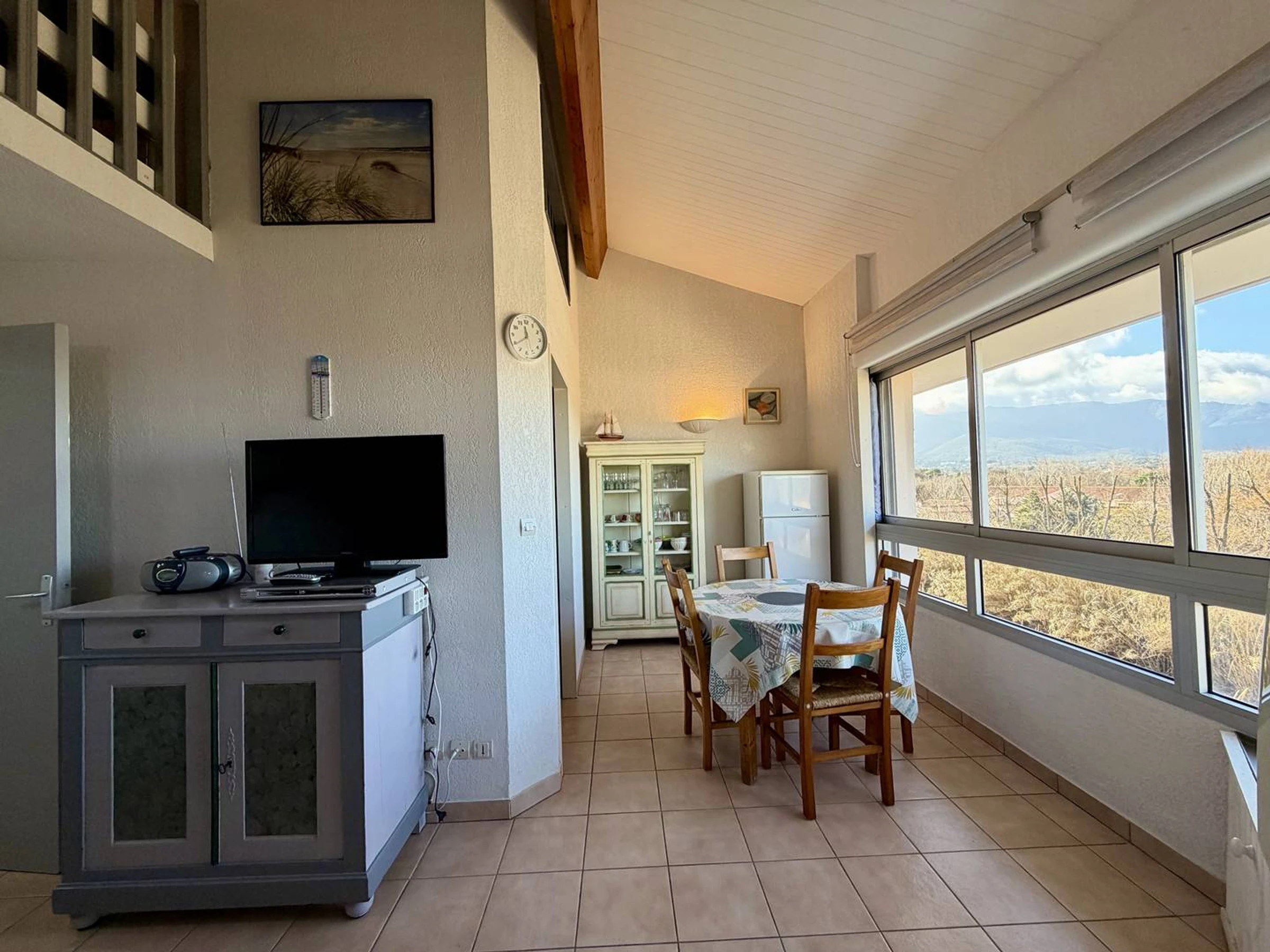 L’appartement bénéficie d’une magnifique vue dégagée sur les montagnes, offrant un cadre reposant et agréable.