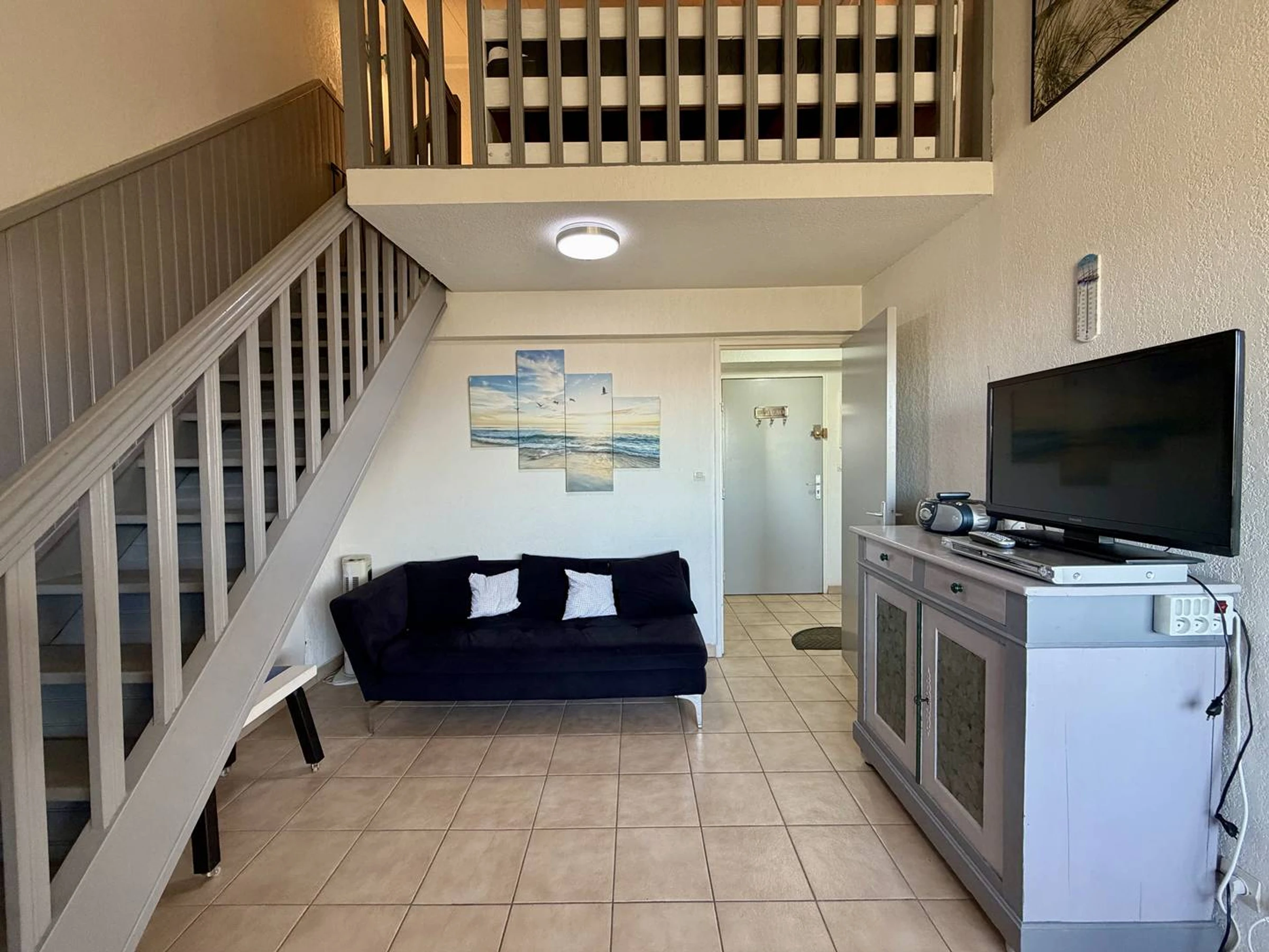 Idéalement situé à seulement 100 mètres du centre plage et de la mer, cet appartement bénéficie d’un emplacement privilégié, à proximité immédiate des commerces, restaurants et arrêts de bus.