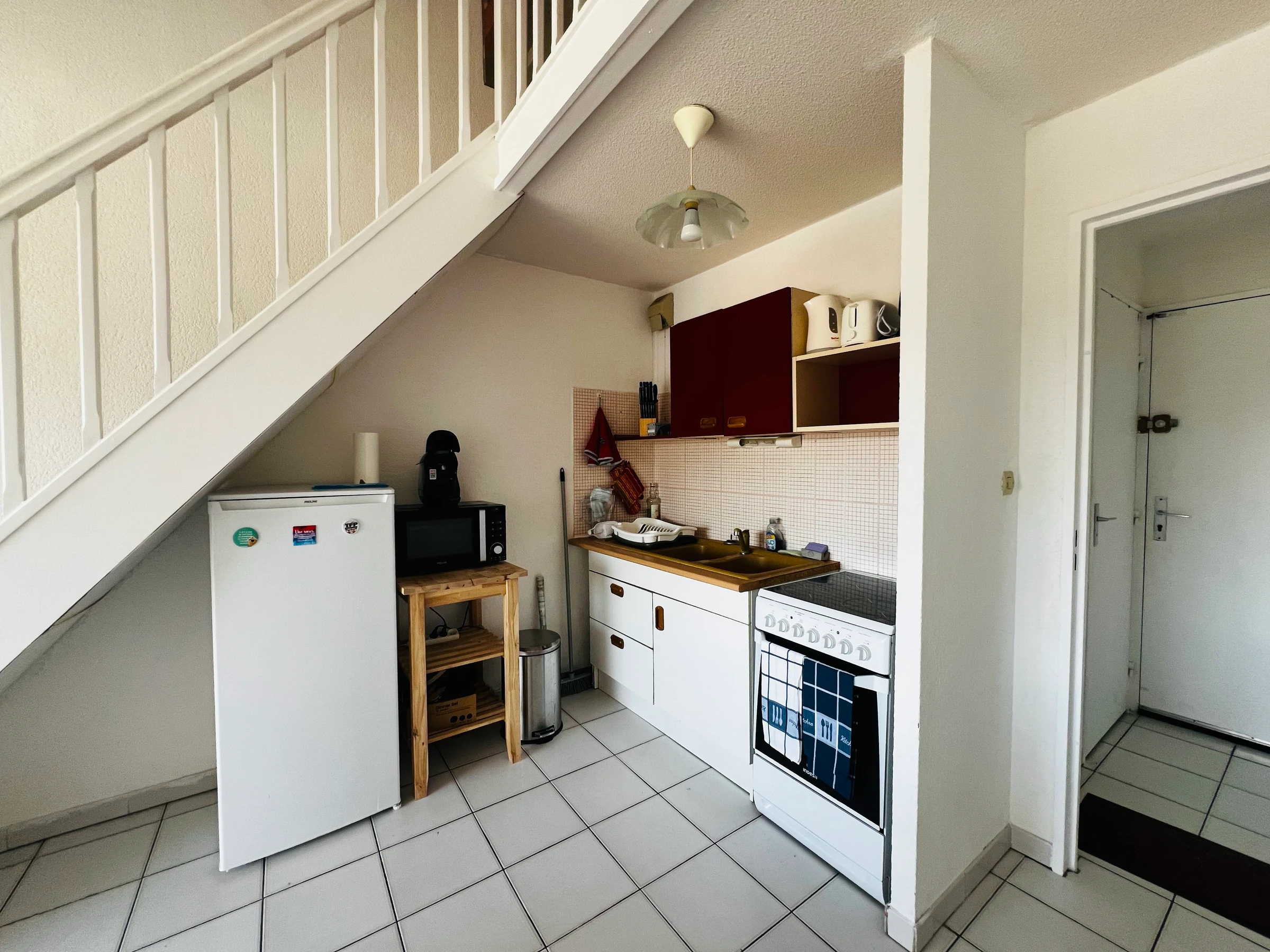 Il se compose d'une entrée, d'une salle d'eau avec WC, d'une pièce à vivre avec coin cuisine semi équipé, d'une loggia ouverte qui agrandie la pièce à vivre.
