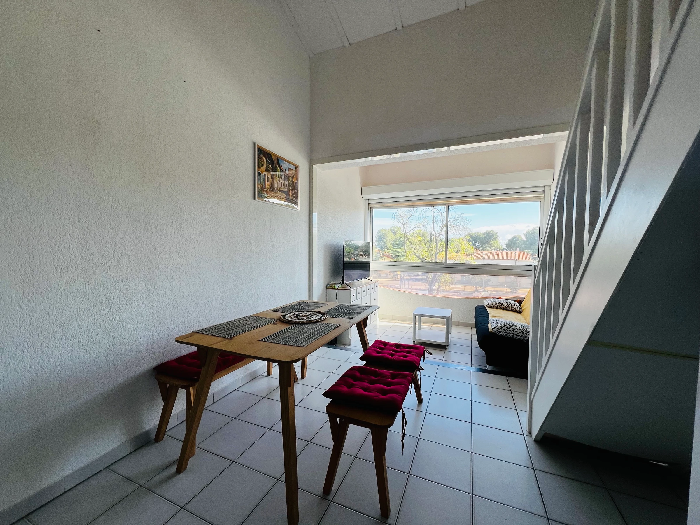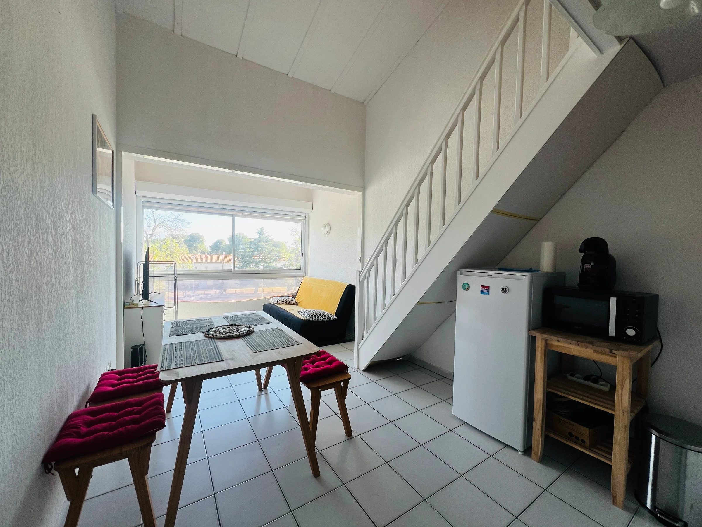 A l'étage un espace mezzanine ouvert sur le séjour et une chambre séparée.