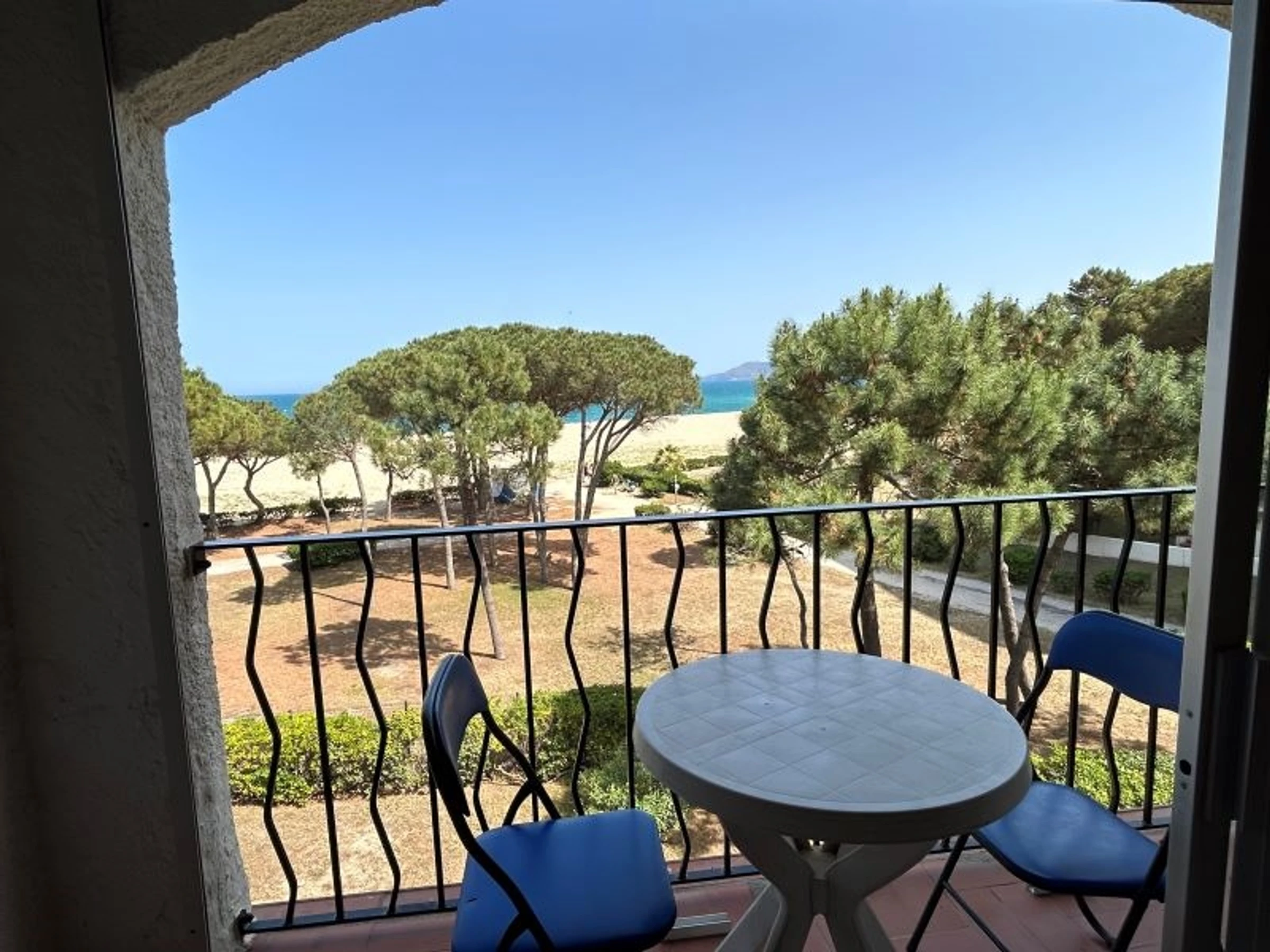 L'appartement est situé 2ème étage d'une résidence en front de mer. Il peut accueillir 4 personnes : 1 clic-clac 2 places dans le séjour et 2 lits 1 place dans la chambre. L'appartement est équipé d'un réfrigérateur/congélateur, de 2 plaques électriques, d'un four, d'un micro-ondes, d'un lave-linge et d'une télévision. L'atout de cet appartement : les deux loggias de 7m² chacune face à la mer. Il est possible de se garer près de la résidence sur un parking communal.