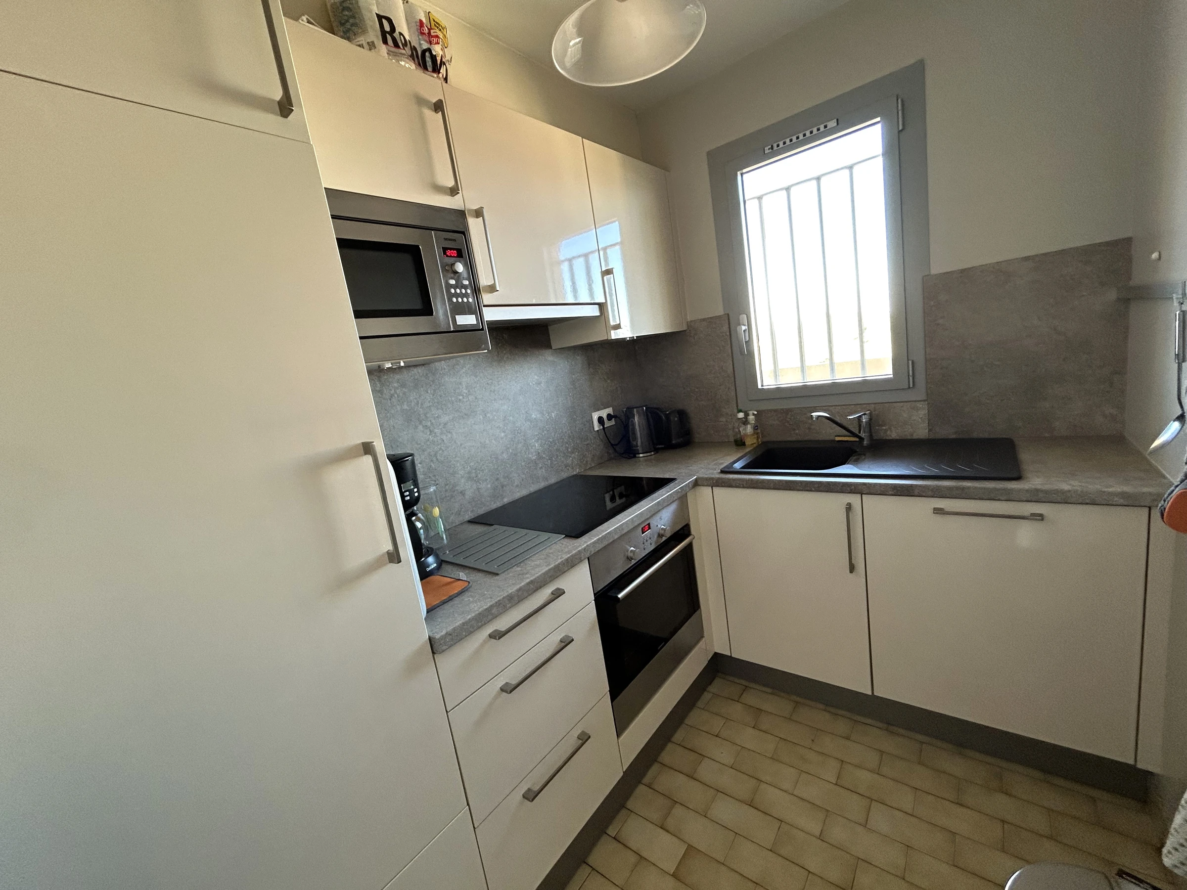 L'appartement est situé au 4°étage d'une résidence en front de mer. Il est équipé d'un réfrigérateur/congélateur, d'un micro-ondes, d'un four, de plaques de cuisson, d'un lave-vaisselle, d'un lave-linge et d'une télévision.