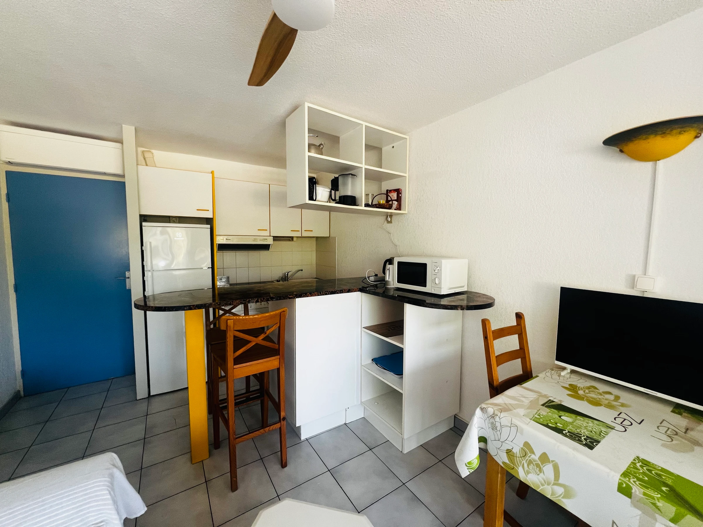 L’appartement peut accueillir jusqu’à 4 personnes. Il se compose d’un salon équipé d’un canapé-lit confortable, d'une cuisine ouverte aménagée et entièrement équipée, permettant de préparer facilement vos repas pendant votre séjour, d'une chambre avec lit double en 140, d'une salle d'eau avec WC. L’appartement est également doté d’une climatisation réversible pour un confort optimal en toute saison. Un balcon vient compléter le logement et offre un espace agréable pour profiter de l’extérieur.