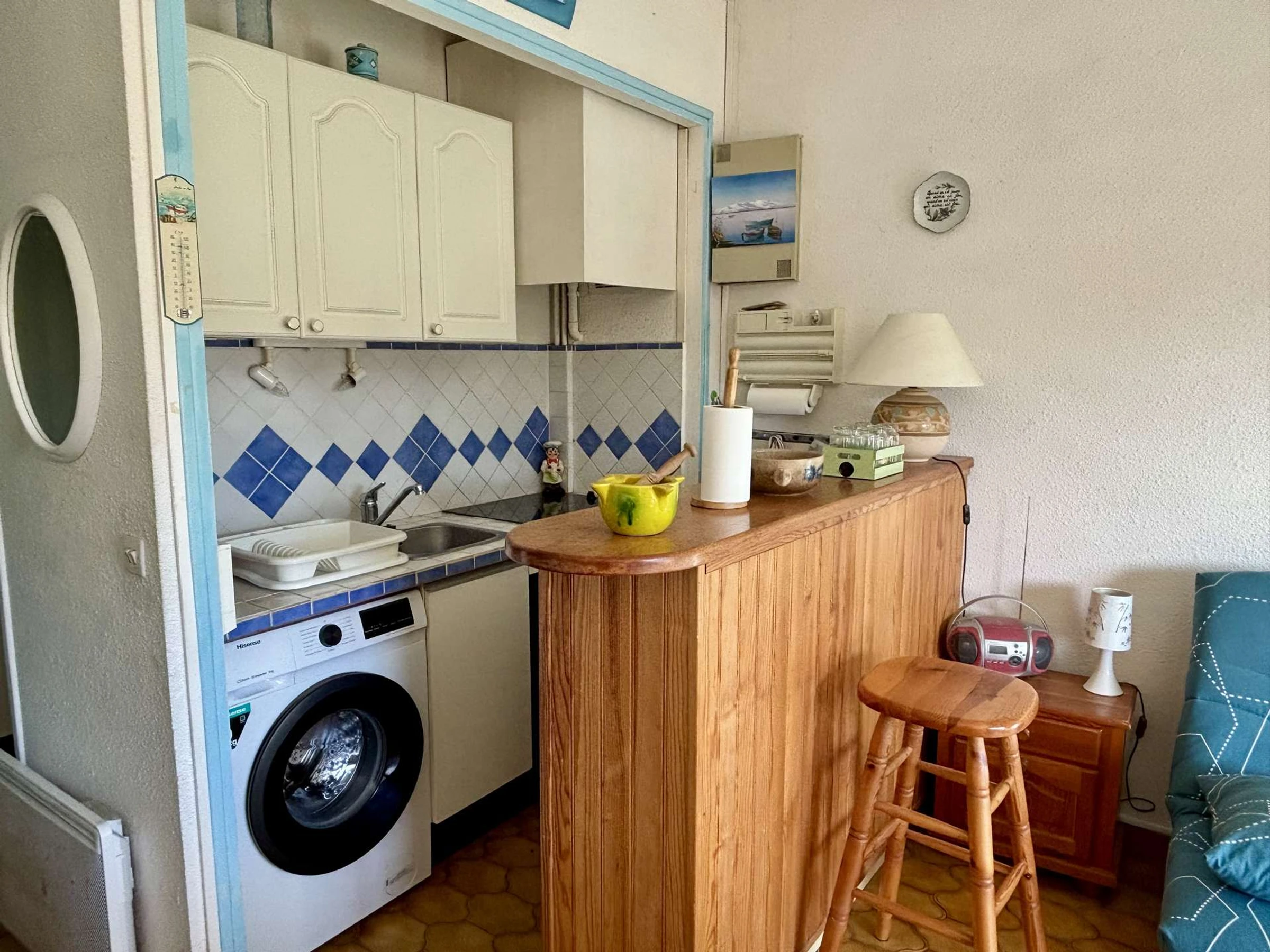 Ce studio cabine est idéal pour un séjour en couple ou entre amis, il se situe au rez-de-chaussée sur un étage de la résidence Le Petit Baigneur.