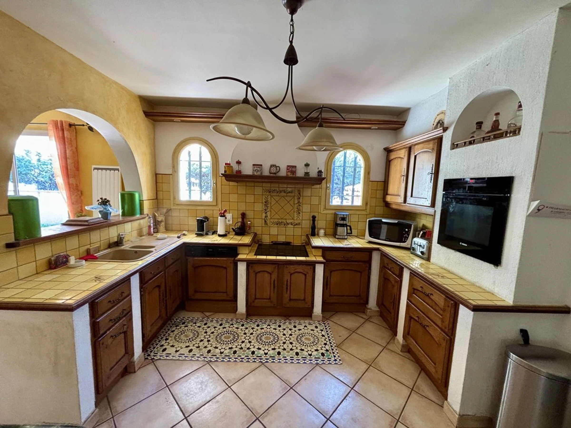 Cuisine comprenant : plaques vitrocéramiques, four, lave vaisselle, frigo américain, micro-ondes