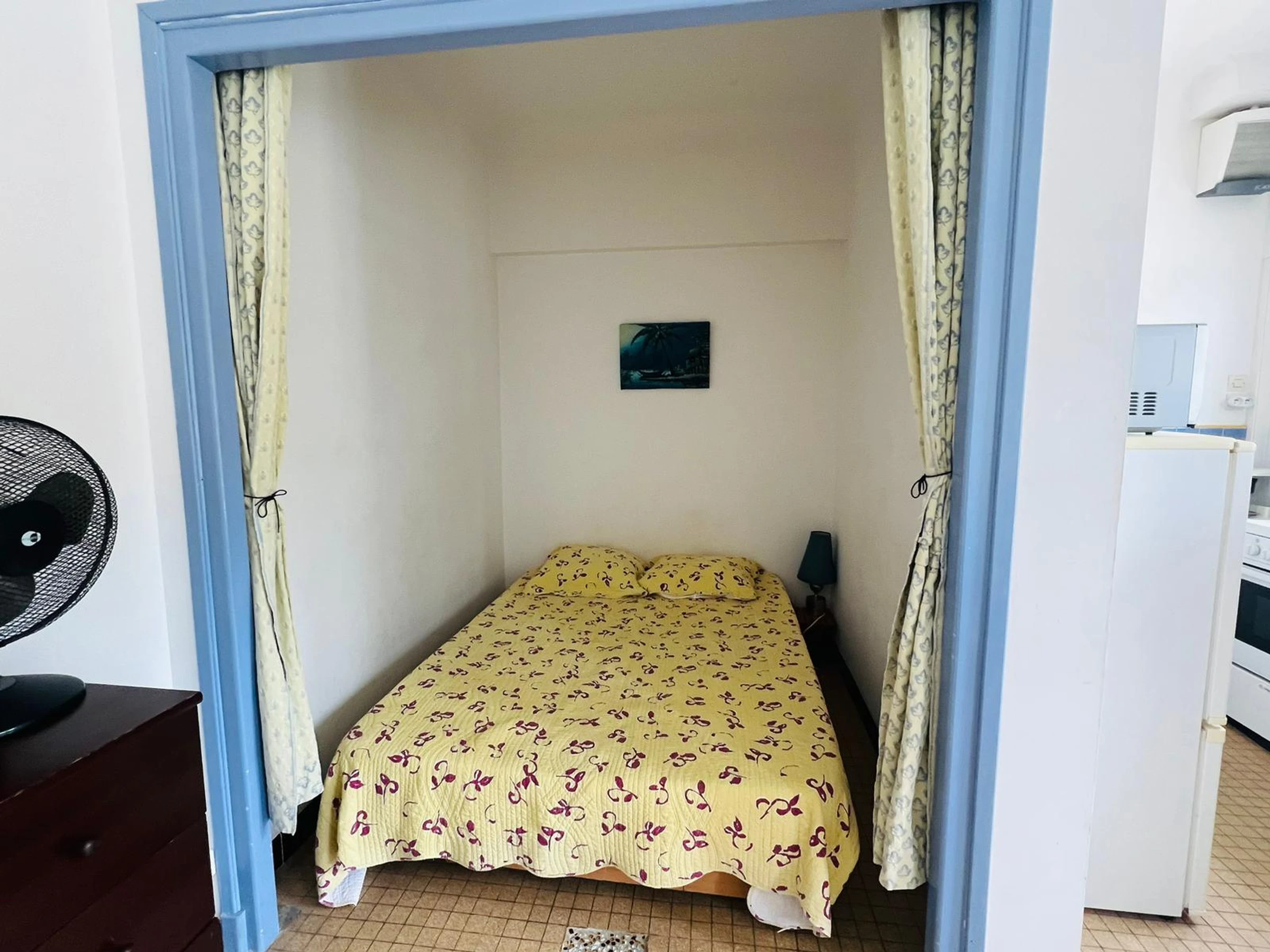 Situé au 1er et dernier étage d'un petit immeuble, l'appartement se compose d'une pièce à vivre avec coin cuisine, d'un coin nuit en alcôve et d'une salle d'eau avec [hidden]