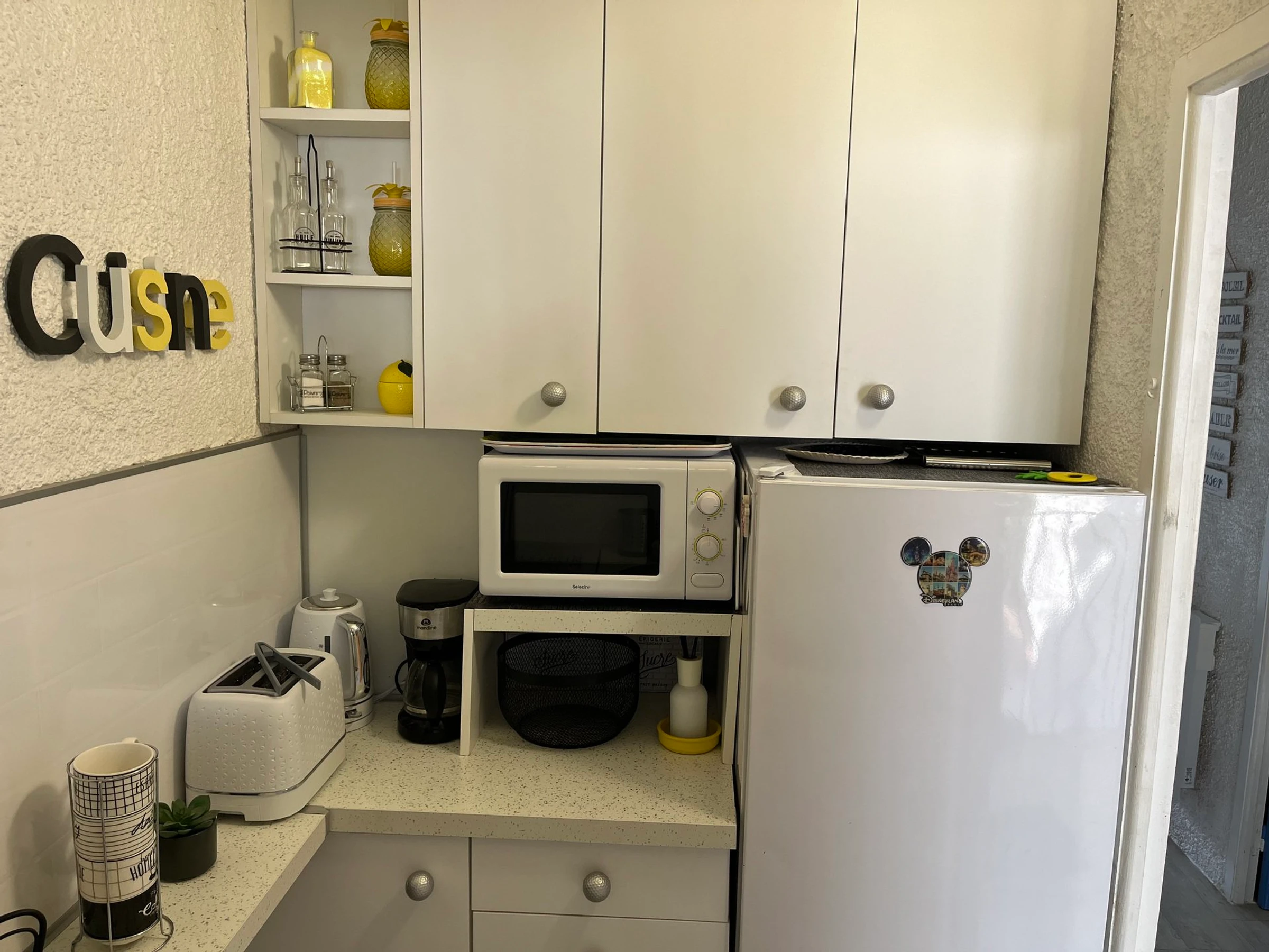 CUISINE : grand réfrigérateur, 2 plaques vitro, micro ondes, lave linge