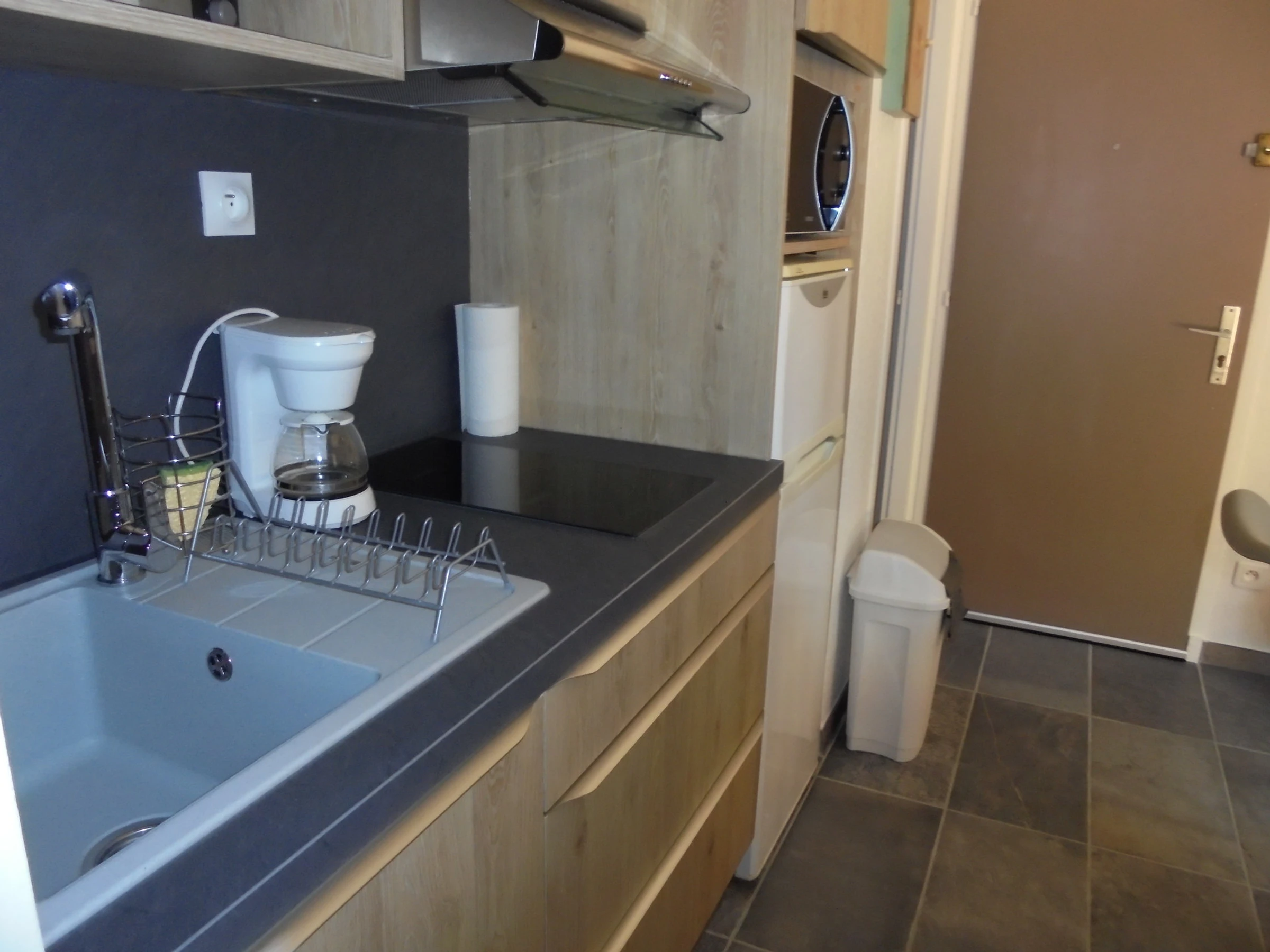 COIN CUISINE : frigo+congel, 2 plaques induction, Micro-ondes/grill.