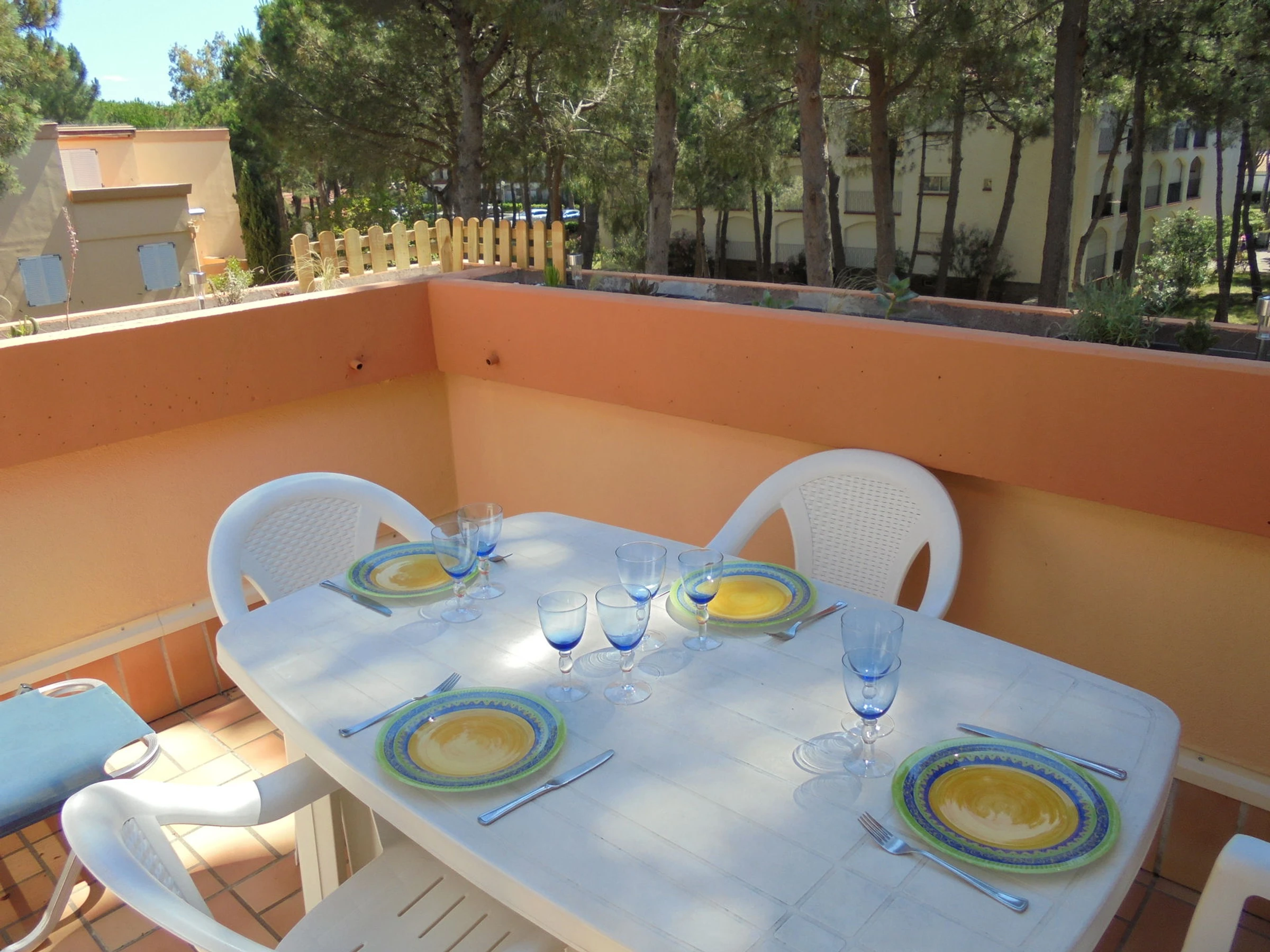 Dans un ensemble de petits immeubles de 2 étages avec de belles terrasses, au milieu d'une très agréable pinède, à environ 300m env. de la plage, proche des commerces. Batiment 1 .