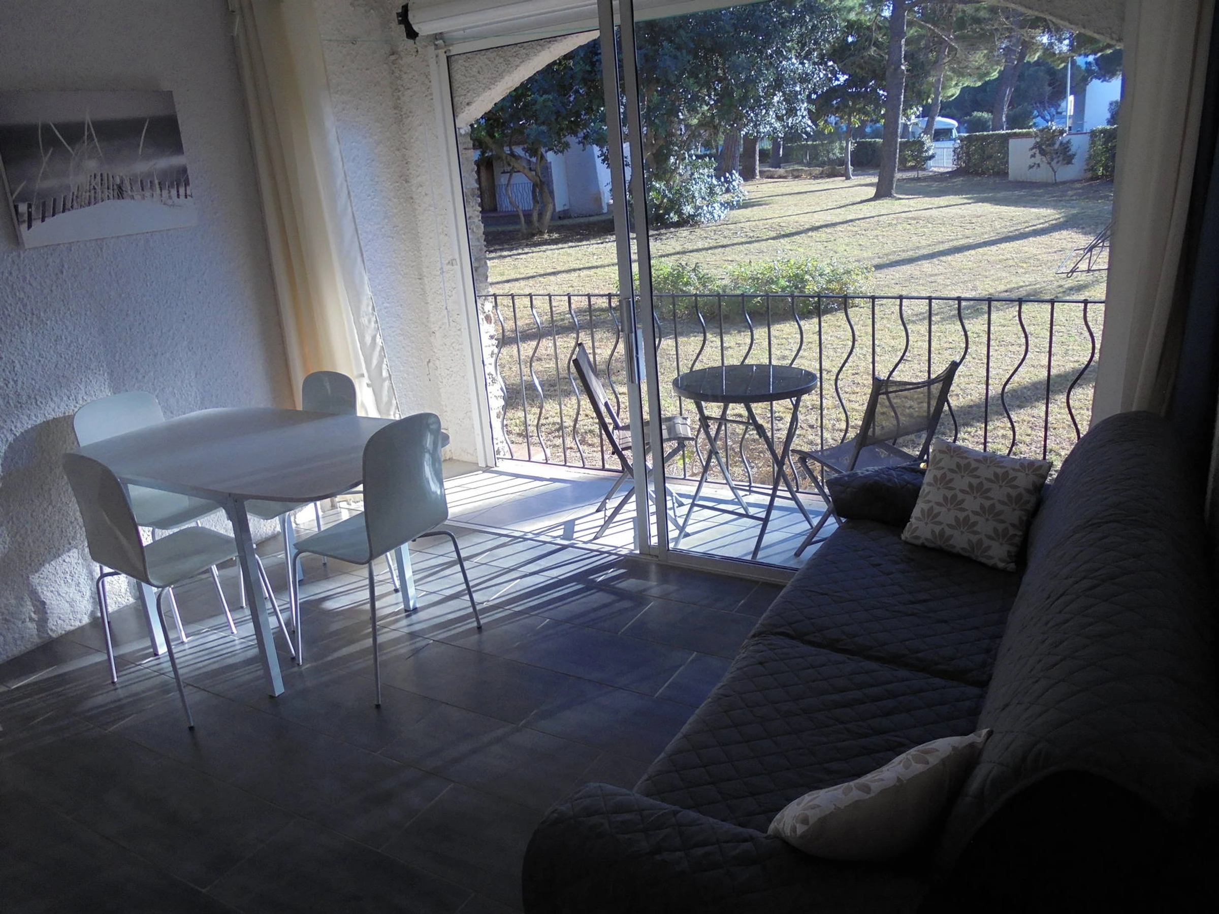 SEJOUR/SALON : 1 canapé-lit 2 places,téléviseur, balcon côté jardins