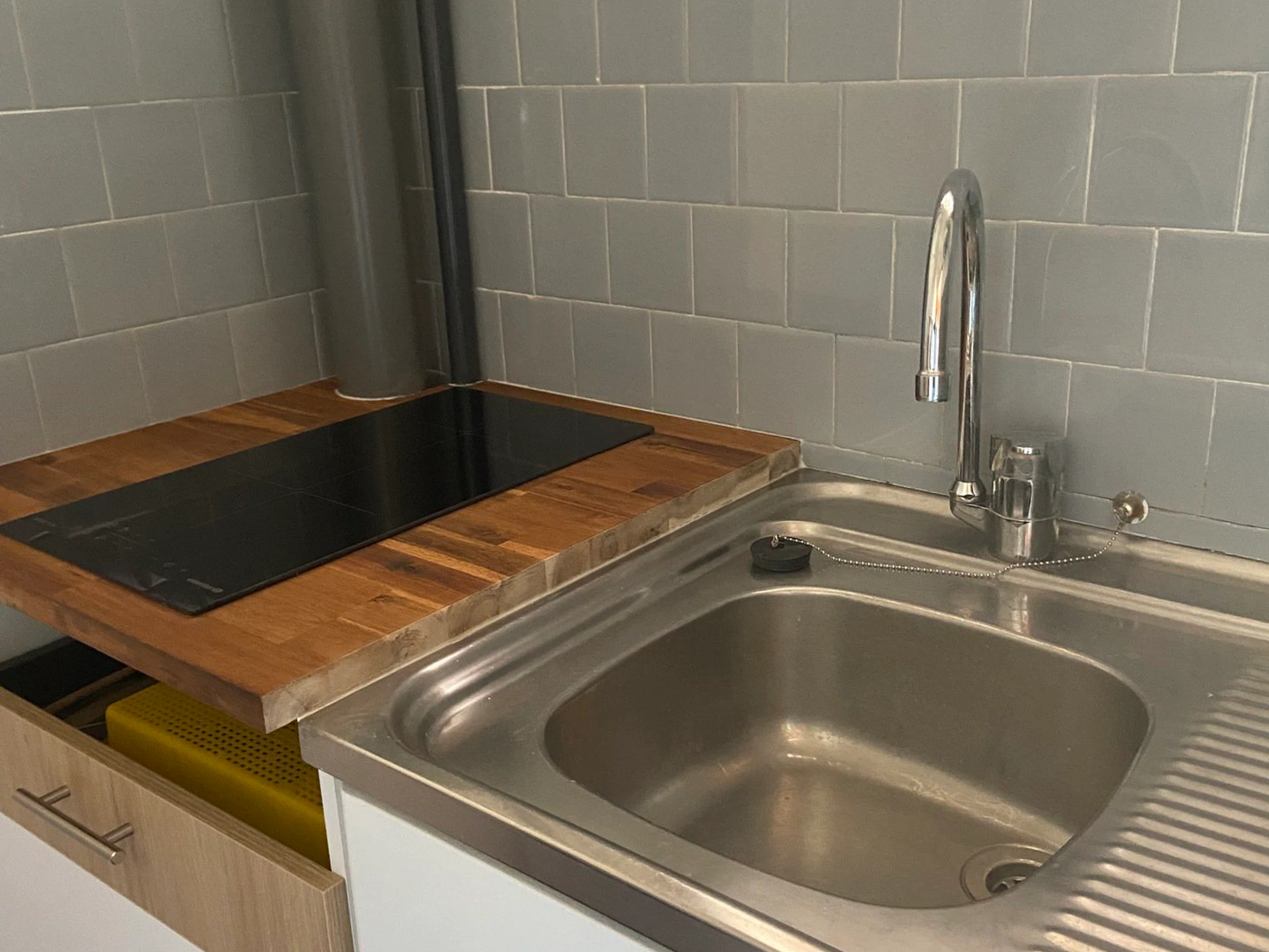 CUISINE : frigo +congélateur, 2 plaques induction, lave linge, four micro ondes