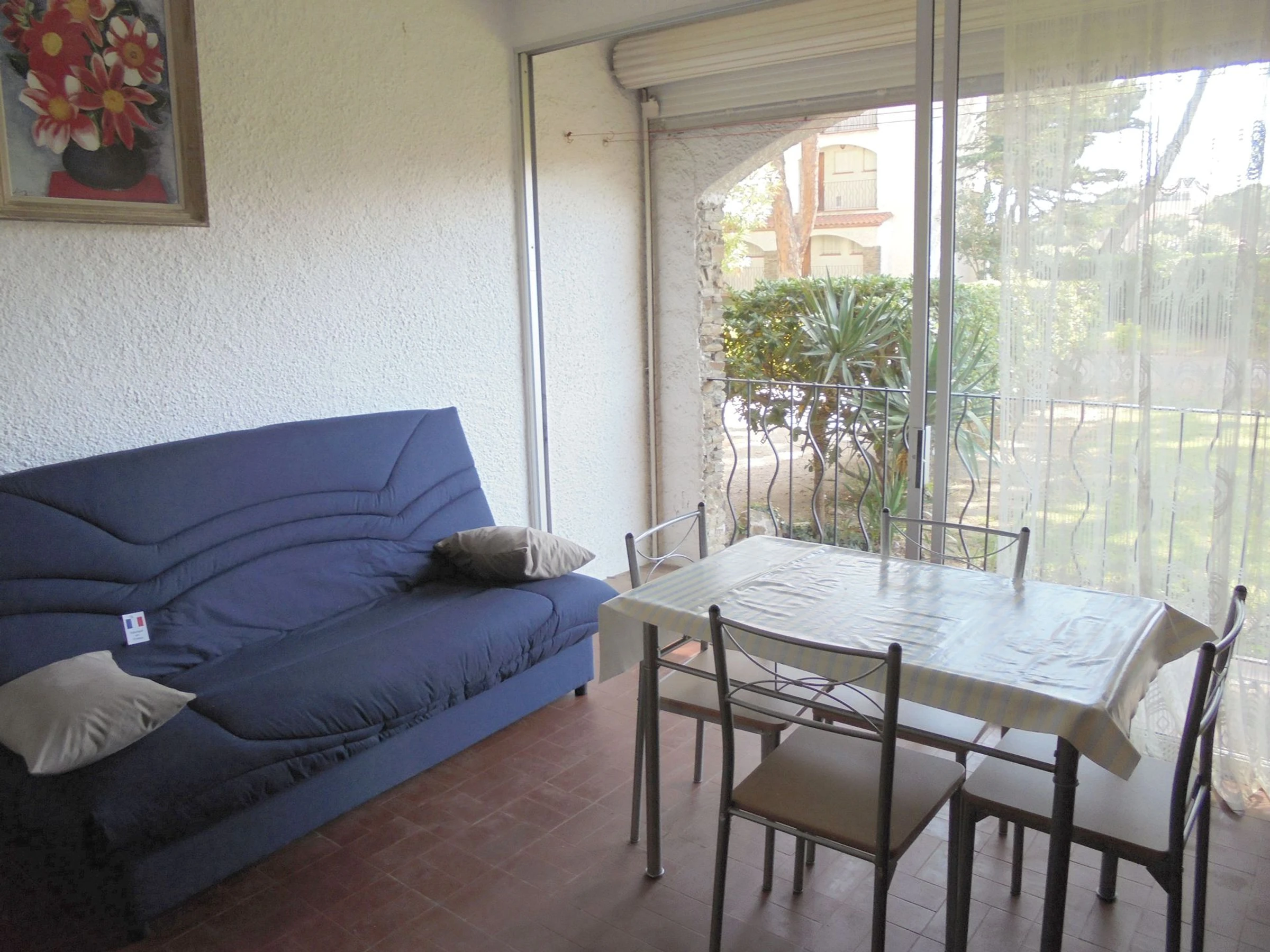 SEJOUR : 1 canapé 2 places + TV, balcon côté jardin et parking