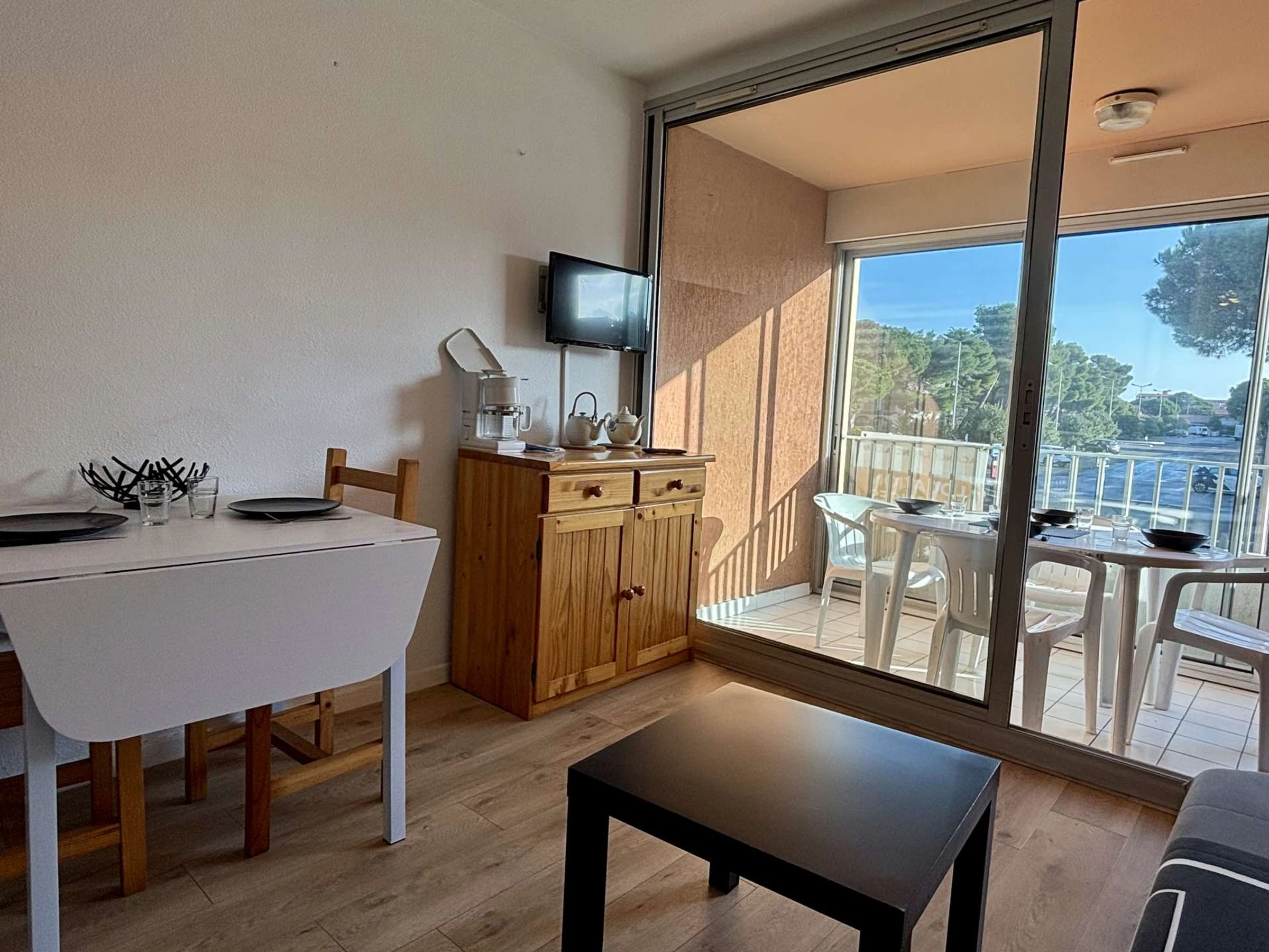 Cette location d'appartement de vacances, située au 1ier étage, se compose d'un séjour avec canapé convertible 2 places, un coin cuisine équipé, une chambre avec 1 lit 2 place, une salle d'eau avec wc.