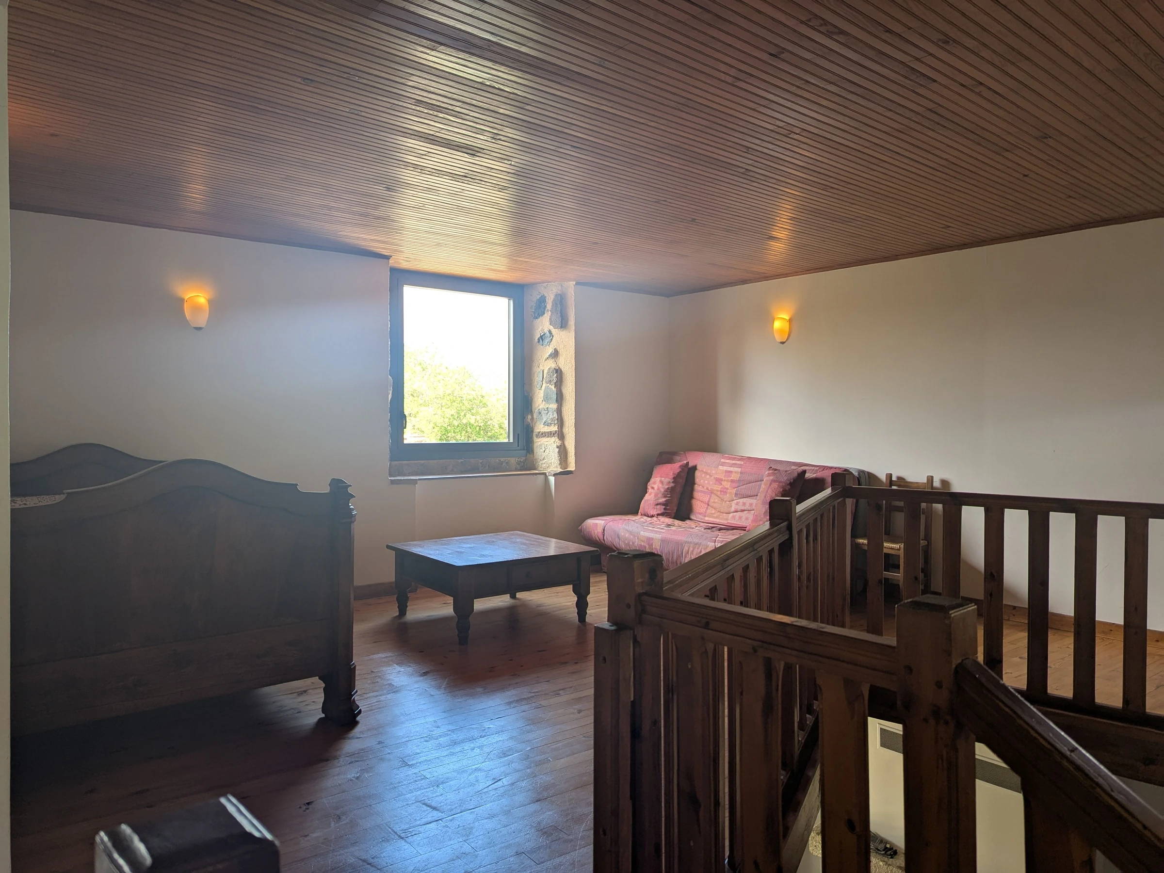 Au départ du gite, de nombreux chemins de randonnées; à proximité, la patinoire couverte de la Gare, l'Aquacentre La Vague, la ville du Puy en Velay et ses nombreux bâtiments classés au patrimoine de L'Unesco, et tous les sites natures / tourisme / attractions de la Haute-Loire. Au rez-de-chaussée, grand séjour-cuisine avec poêle à bois et canapé convertible, salle d'eau-wc, buanderie.