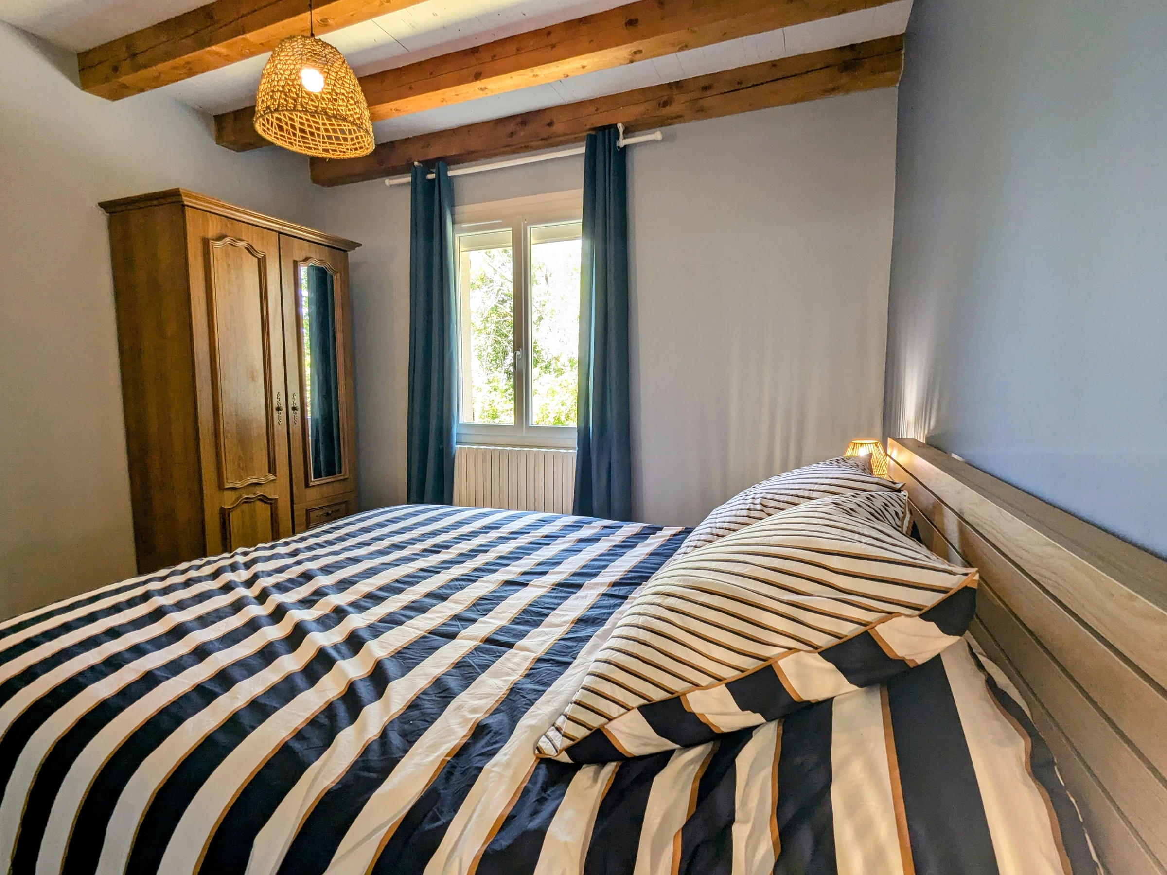 La pièce à vivre peut être adaptée pour une salle de réunion ou de formation pouvant accueillir à la journée environ 10 / 12 personnes. De plain pied, entrée, pièce à vivre avec cuisine, salon, salle à manger, une salle d'eau, deux chambres avec un lit 2 personnes (140 x190 cm) et une chambre avec un lit 2 personnes (160 x 200 cm), wc, garage avec la possibilité de garer une voiture.