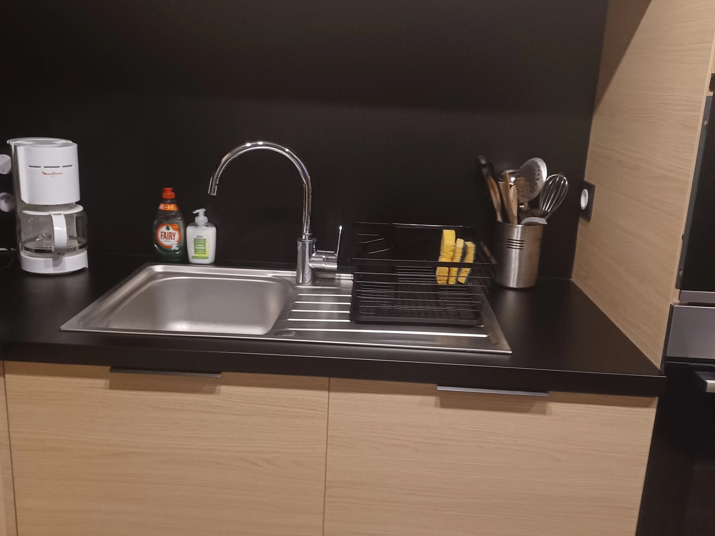 1 Cuisine aménagée et équipée lave-vaisselle, four, plaque vitrocéramique, frigo-congélateur, cafetière classique, micro-ondes, bouilloire, grille-pain