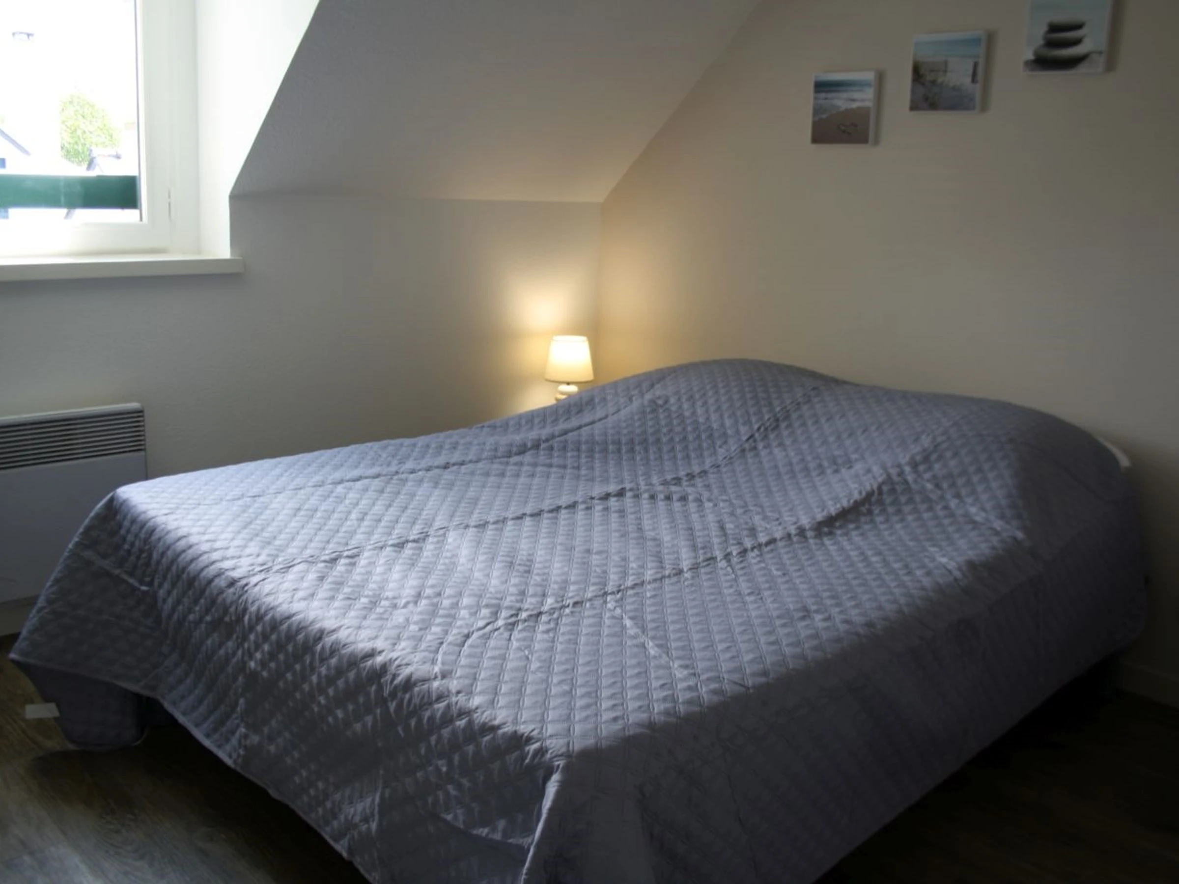 A l'étage : 1ère chambre (2 lits 80 ou 1 lit 160) avec commode, 2ème chambre (1 lit 140) avec armoire (penderie et étagères), 3ème chambre (2 lits gigognes 90) avec placard (penderie et étagères), salle de bains avec toilettes.