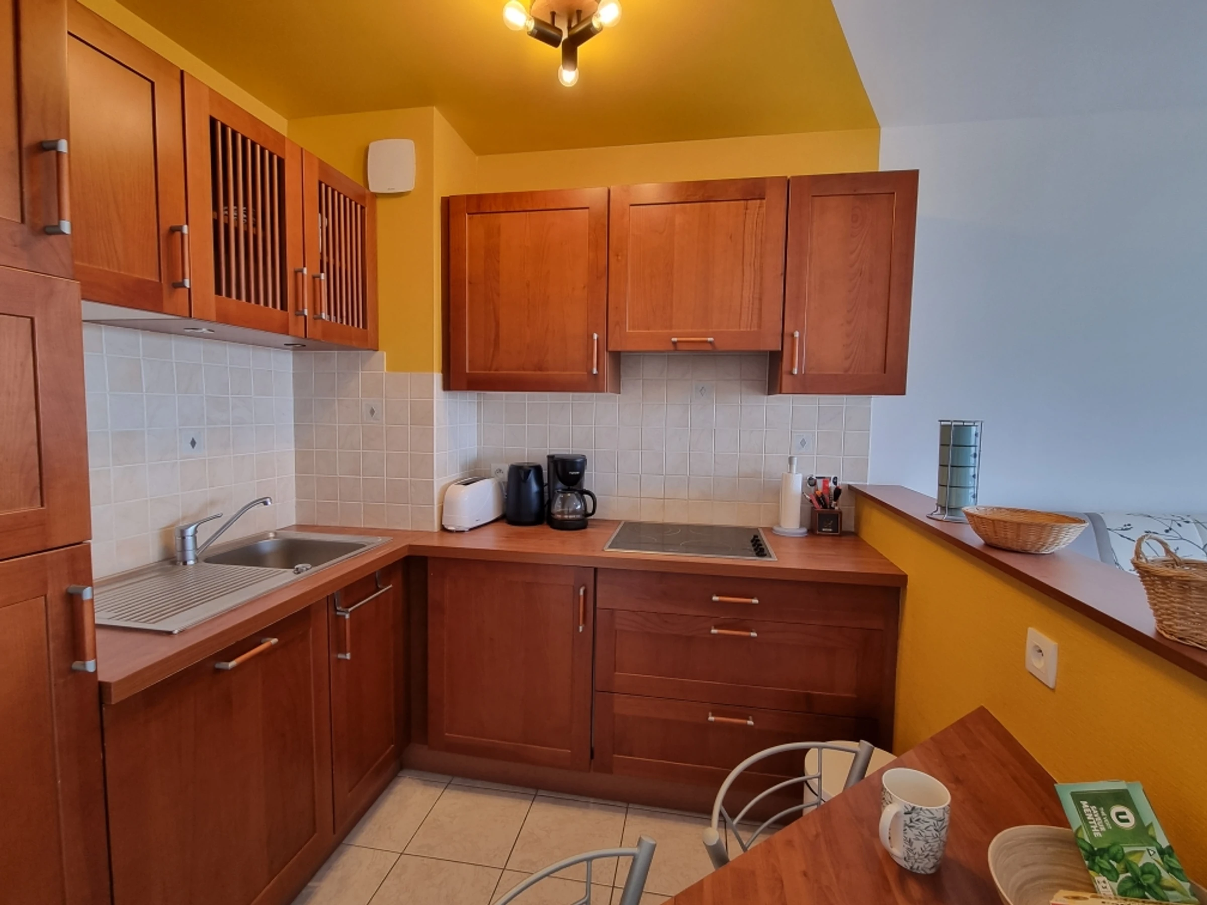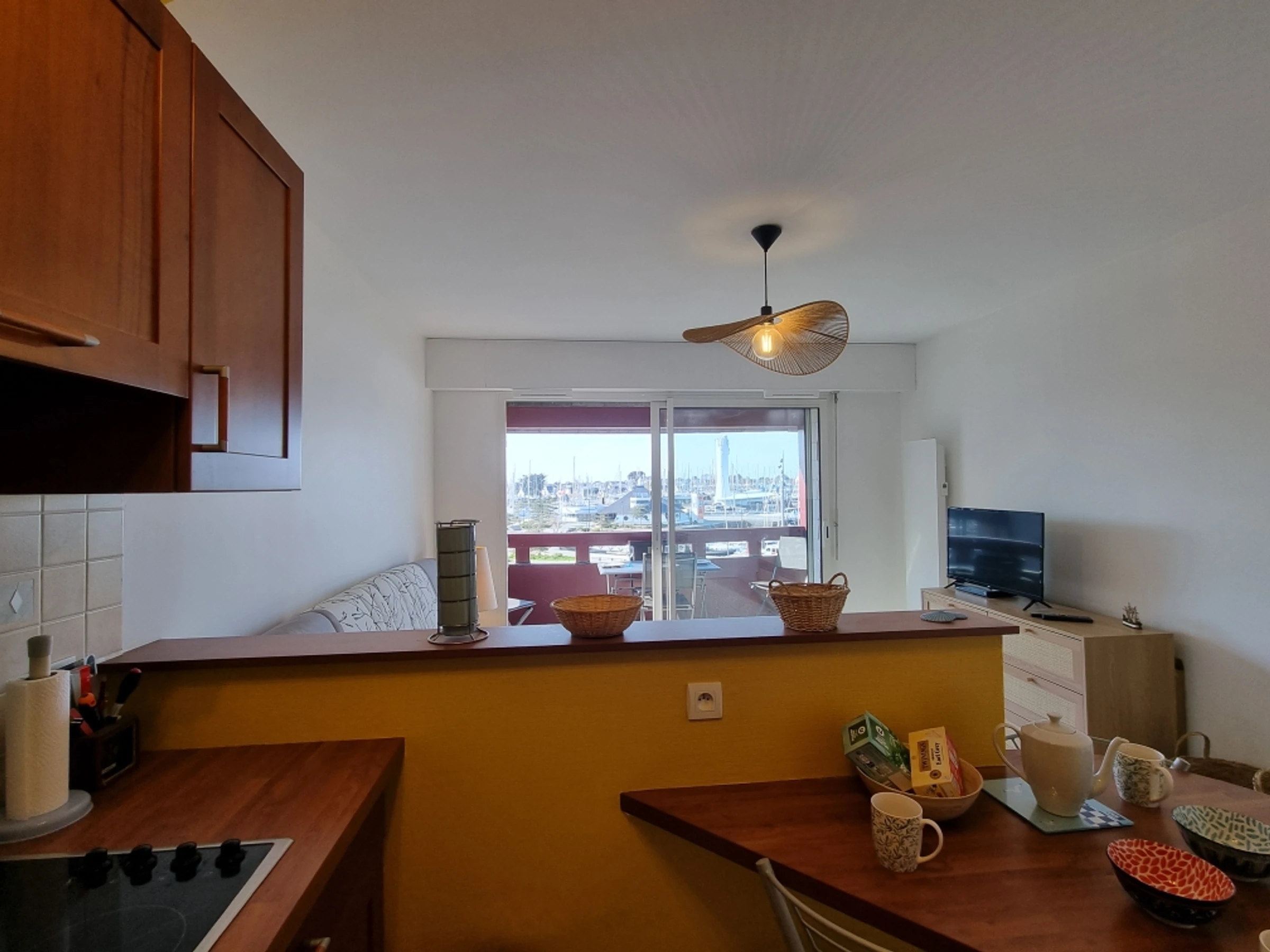 Proche plage, commerces et vue sur le Port du Crouesty, dans résidence avec piscine collective non chauffée, appartement situé au 2ème étage et comprenant : entrée, toilettes, salle de douche, séjour avec TV et canapé clic-clac soit 1 couchage pour 2 personnes donnant sur terrasse couverte exposée ouest, coin cuisine équipé et aménagé (plaque vitrocéramique 4 feux, combiné four/micro-ondes, réfrigérateur avec freezer, lave-vaisselle , lave-linge, cafetière électrique à filtres), 1 chambre (1 lit 140) avec placard (étagères et penderie).