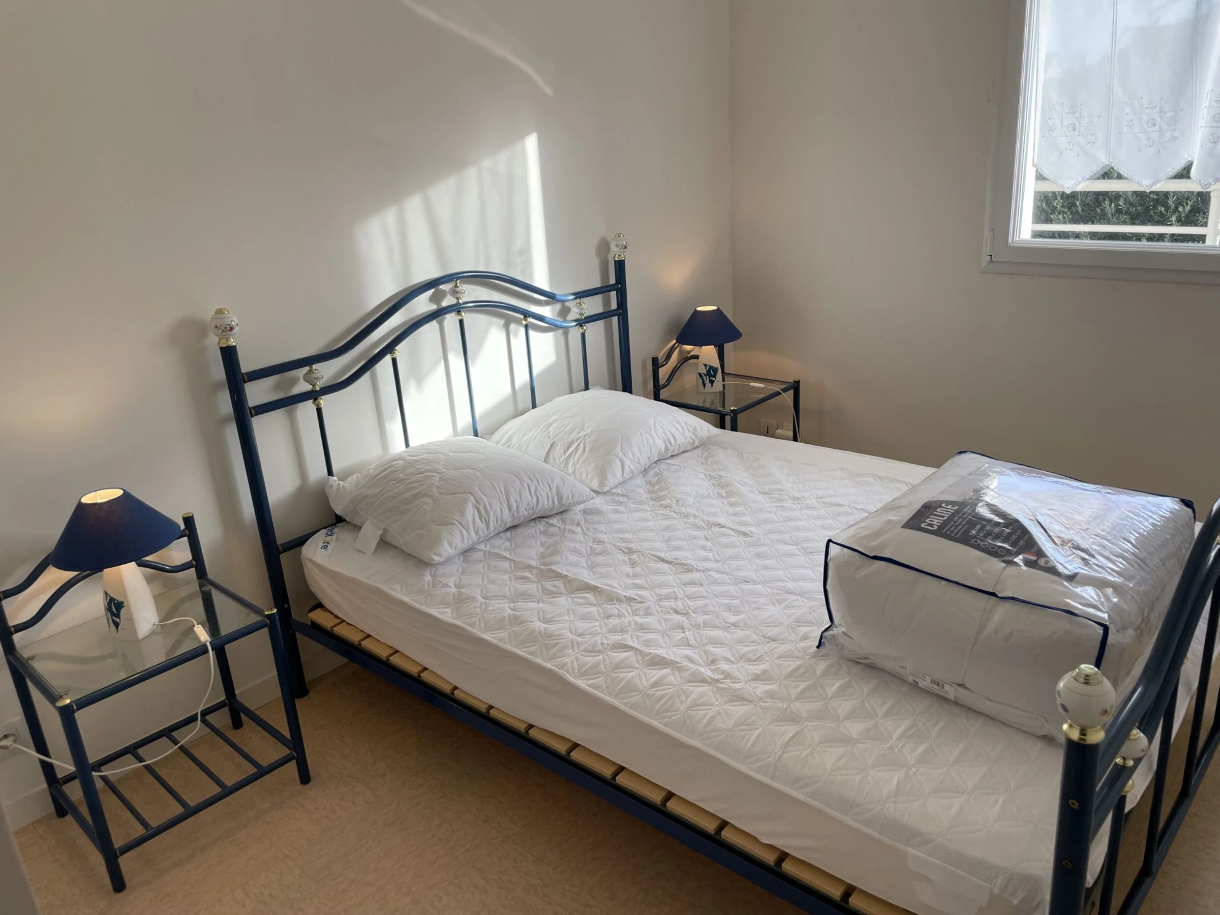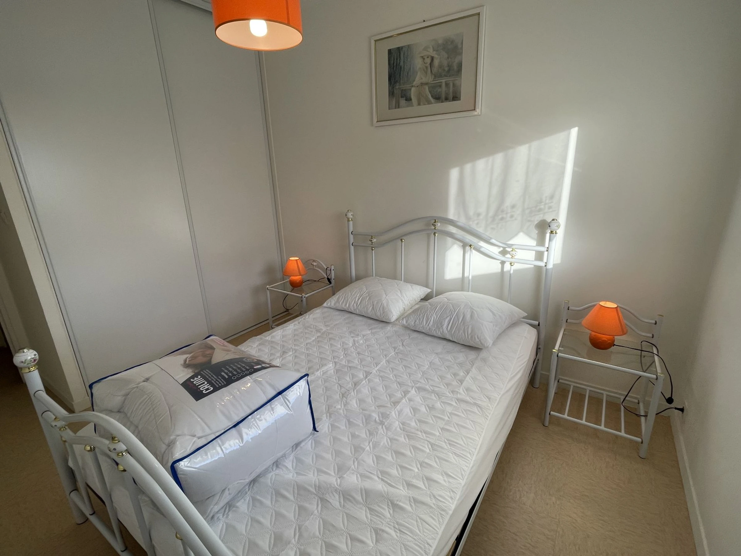 Bel appartement situé au 1er étage d'une résidence au calme et comprenant : entrée, coin cuisine équipé et aménagé (plaque vitrocéramique avec 4 feux, four électrique, réfrigérateur avec compartiment congélateur, micro-ondes, cafetière électrique à filtres, cafetière philips l'or barista), séjour avec TV, 1ère chambre (1 lit 140) avec placard (étagères et penderie), 2ème chambre (1 lit 140) avec placard (étagères et penderie), salle de douche avec lave-linge, toilettes indépendantes.