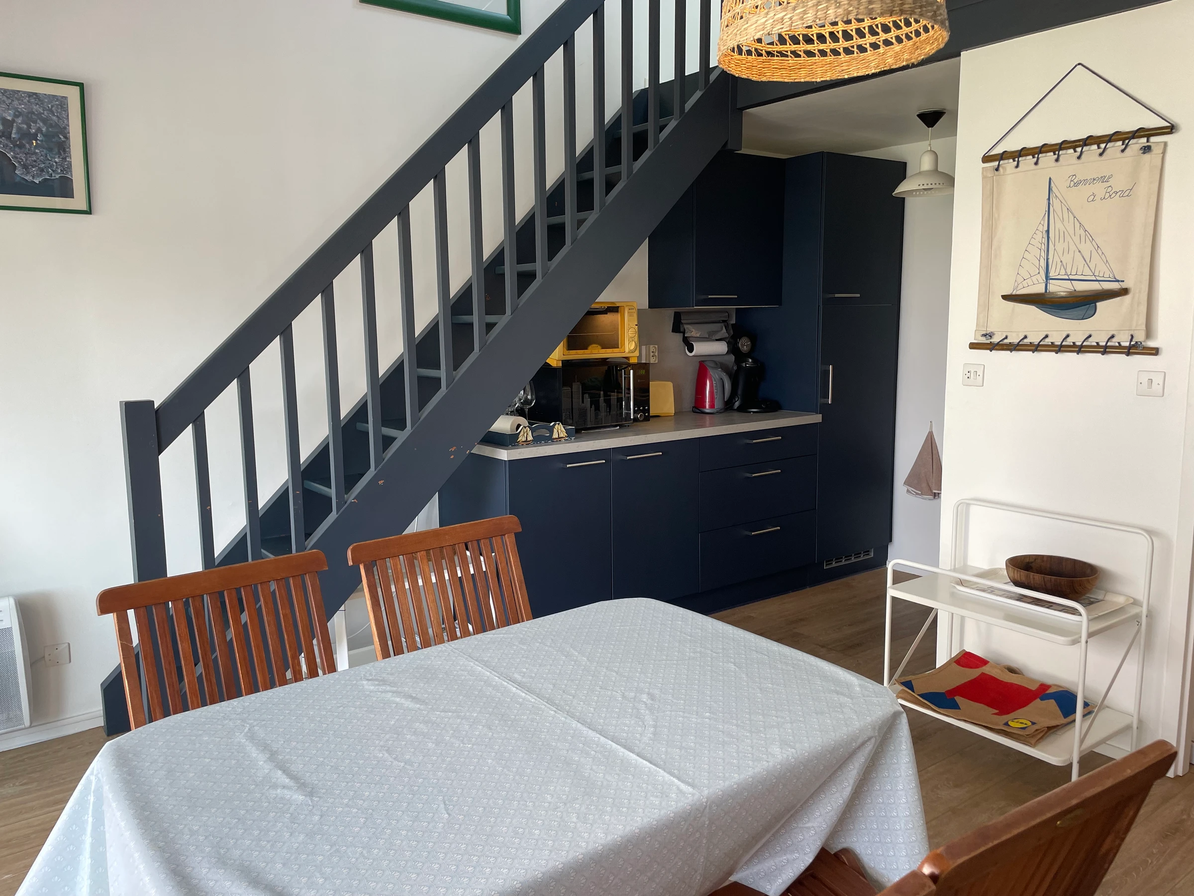 Vous apprécierez l’espace de vie chaleureux ainsi que la cuisine entièrement équipée : réfrigérateur, plaques de cuisson, mini-four, micro-ondes, lave-vaisselle, cafetière à dosettes, bouilloire, grille-pain et tout le nécessaire pour préparer vos repas en toute simplicité. Le logement dispose également d’un lave-linge, d’un sèche serviettes et de l’équipement pratique pour votre séjour (fer et planche à repasser, aspirateur, étendoir).