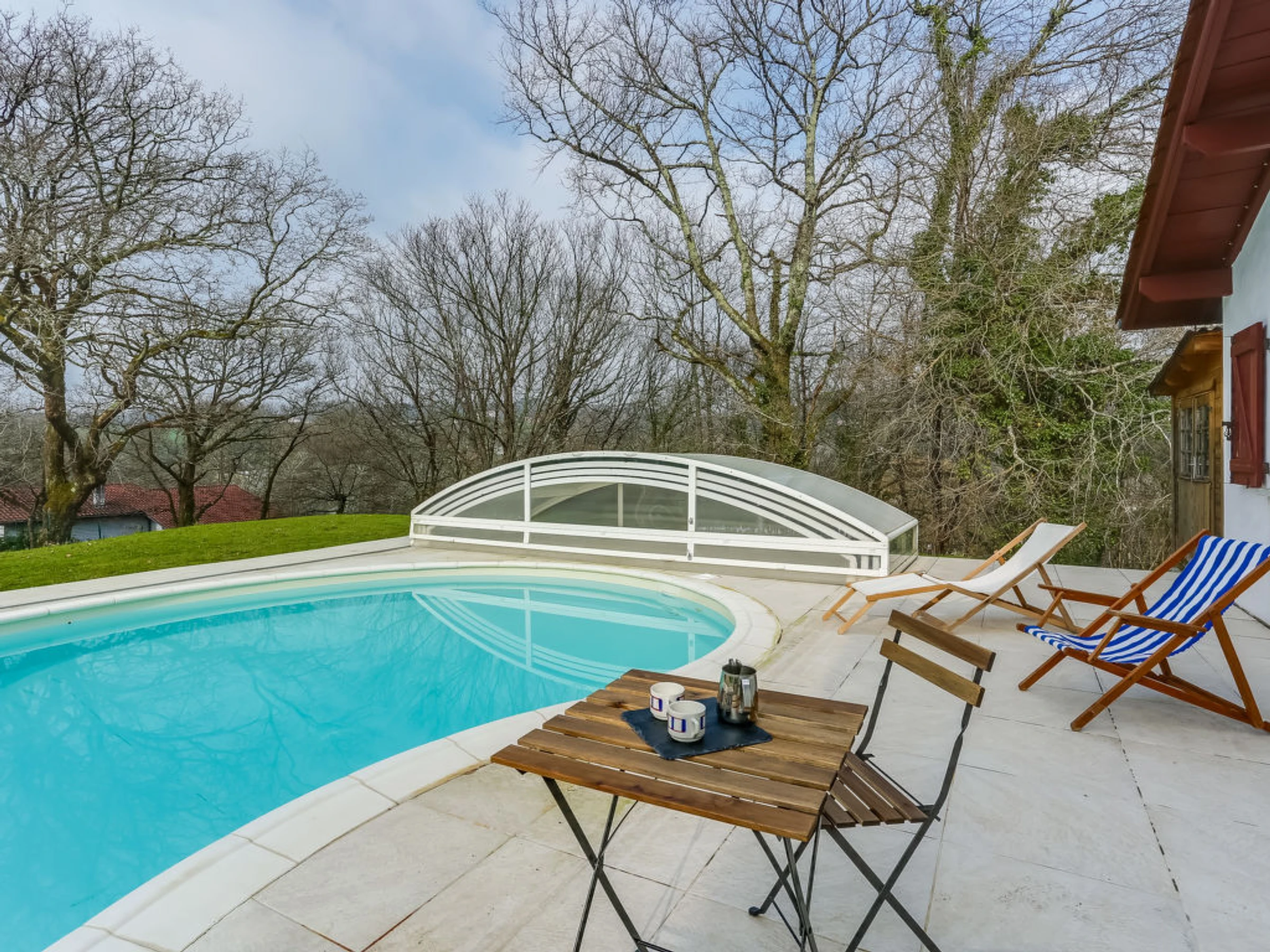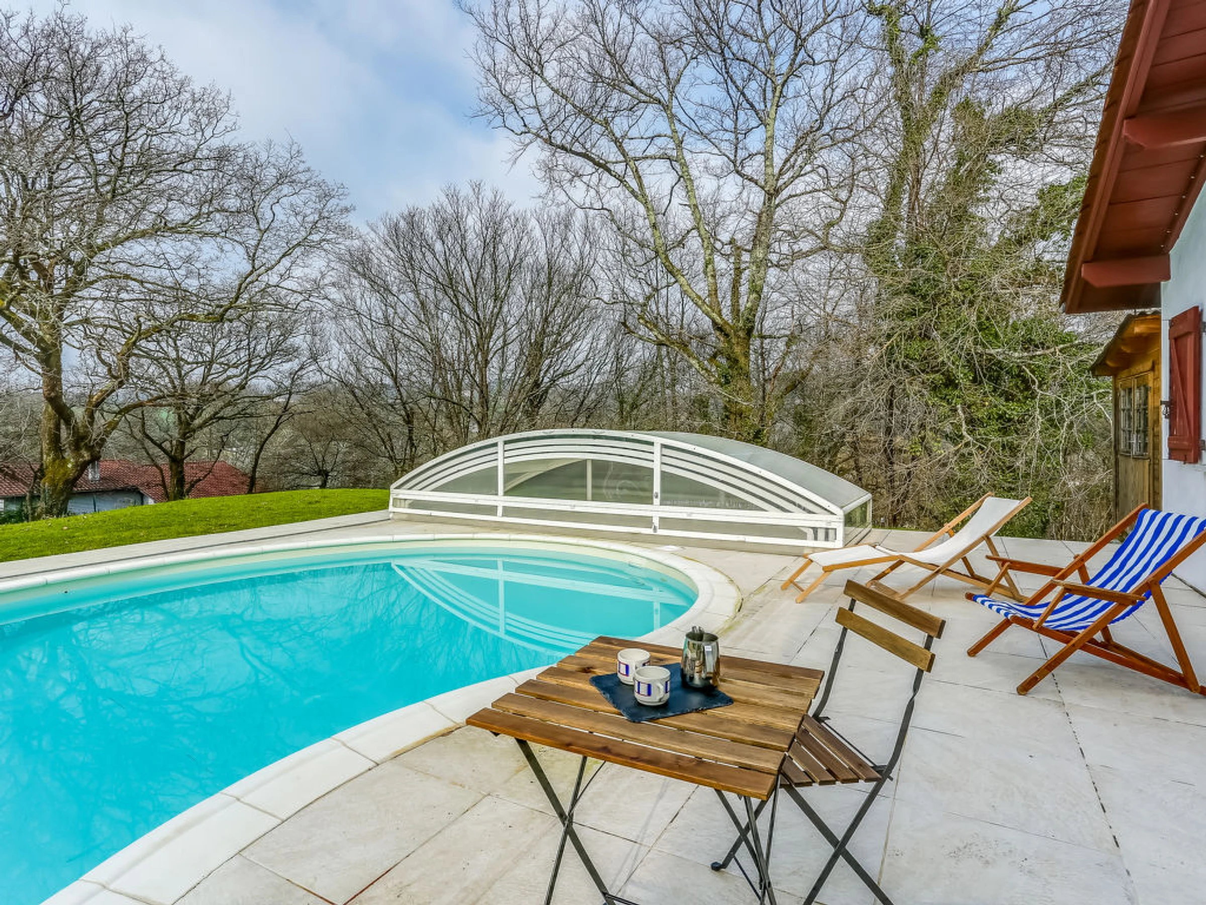 Ascain à 3 km de Saint Jean de Luz: Belle maison "Itsas Mendi". À 6 km de la mer, à 6 km de la plage. A usage privé: terrain 1'110 m2, piscine couverte (8 x 5 m,[hidden].). Place de parking (pour 4 voitures). Magasin d'alimentation 2.5 km, centre commercial 7 km, restaurant 2.5 km, bar 2.5 km, café 2.5 km, gare ferroviaire "Saint jean de Luz" 6 km, plage de sable "Saint jean de Luz" 6 km, centre de plongée 7 km. Port plaisance 6 km, terrain de golf (18 trous) 4 km. Région de randonnées: La Rhune 2 km. La remise des clés a lieu à l’agence de Saint Jean de Luz, 5 km.