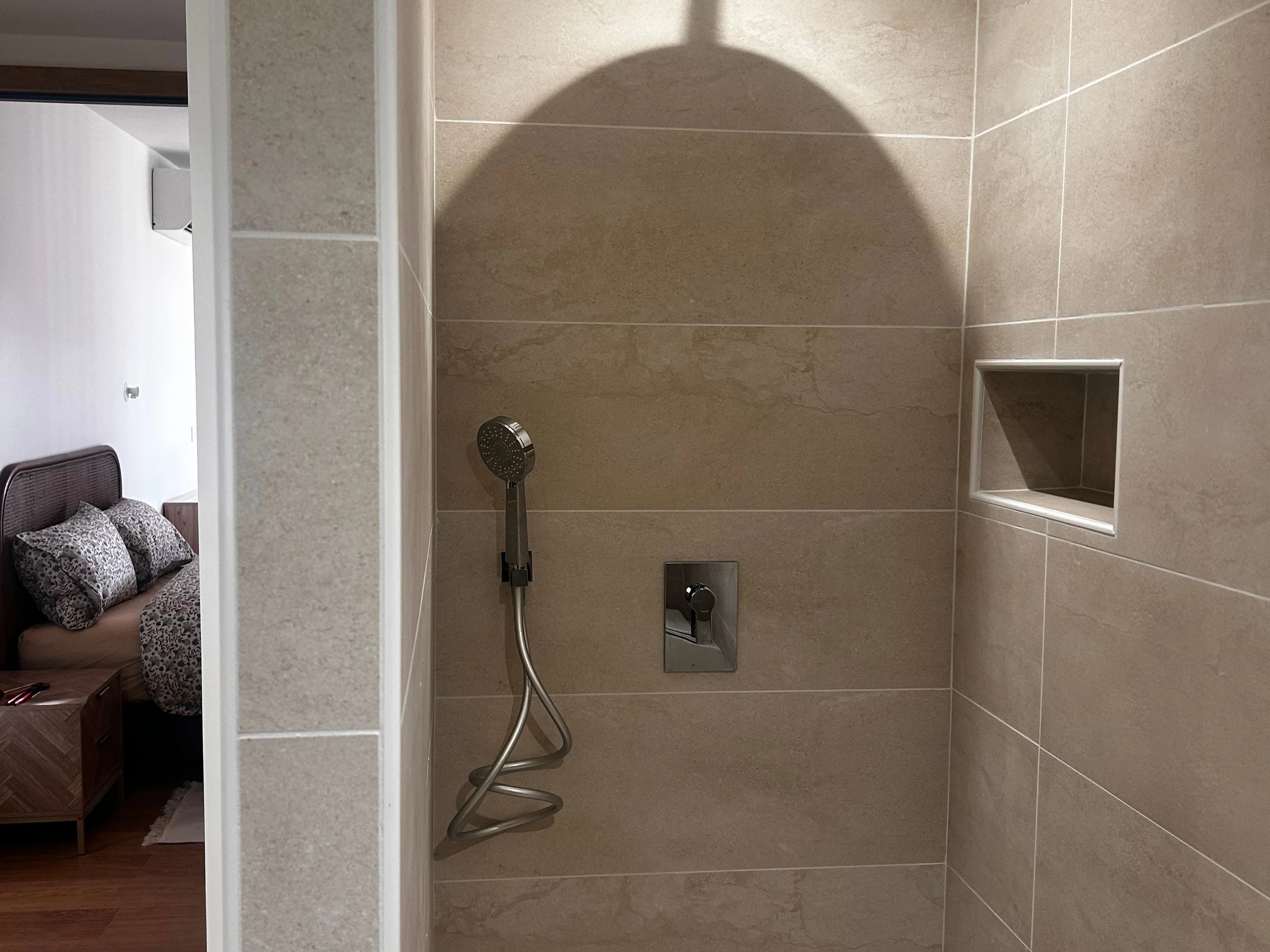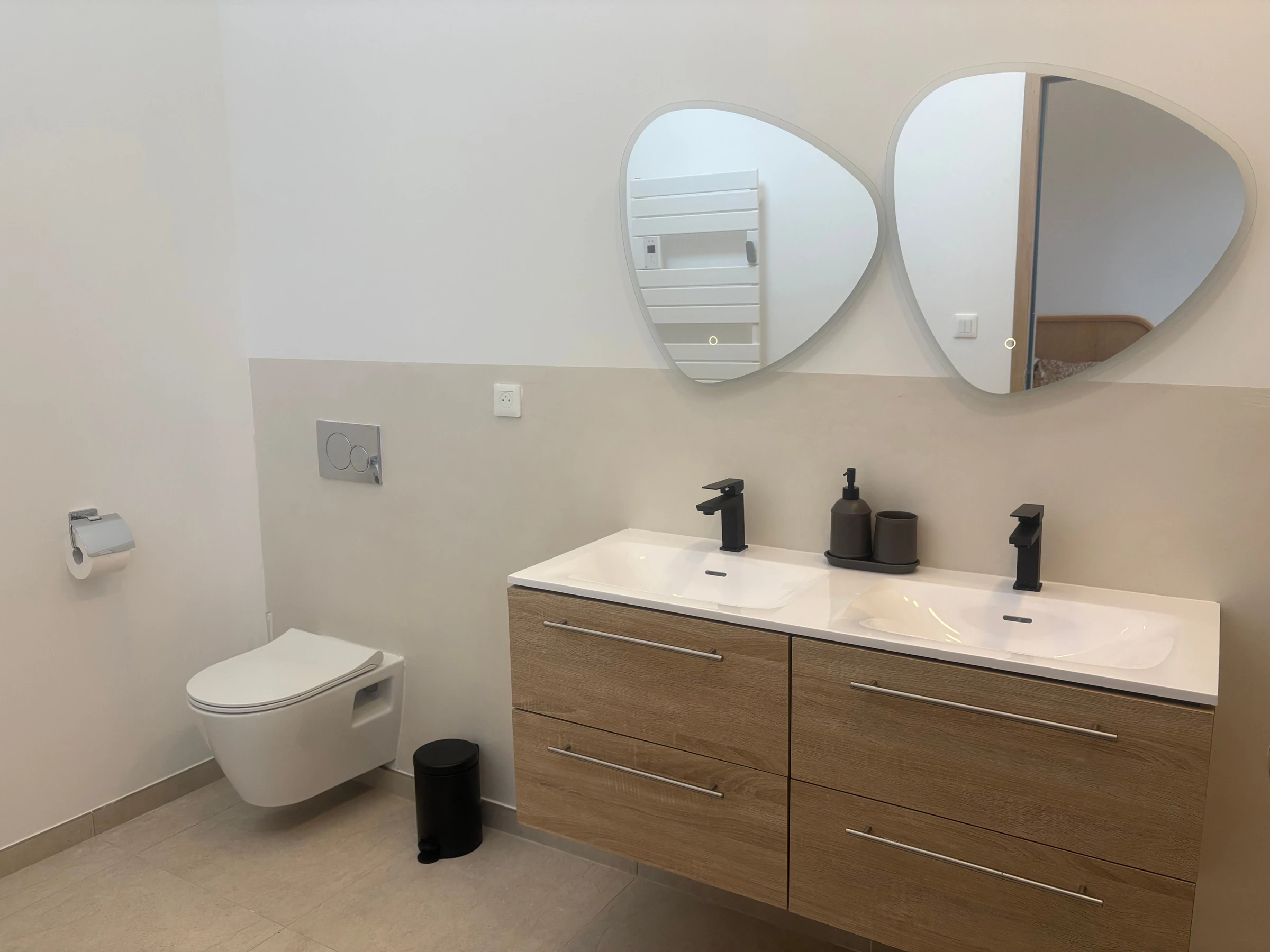 1 chambre avec 1 lit 140x200 avec sa salle d'eau privative (douche et double vasque) et WC.