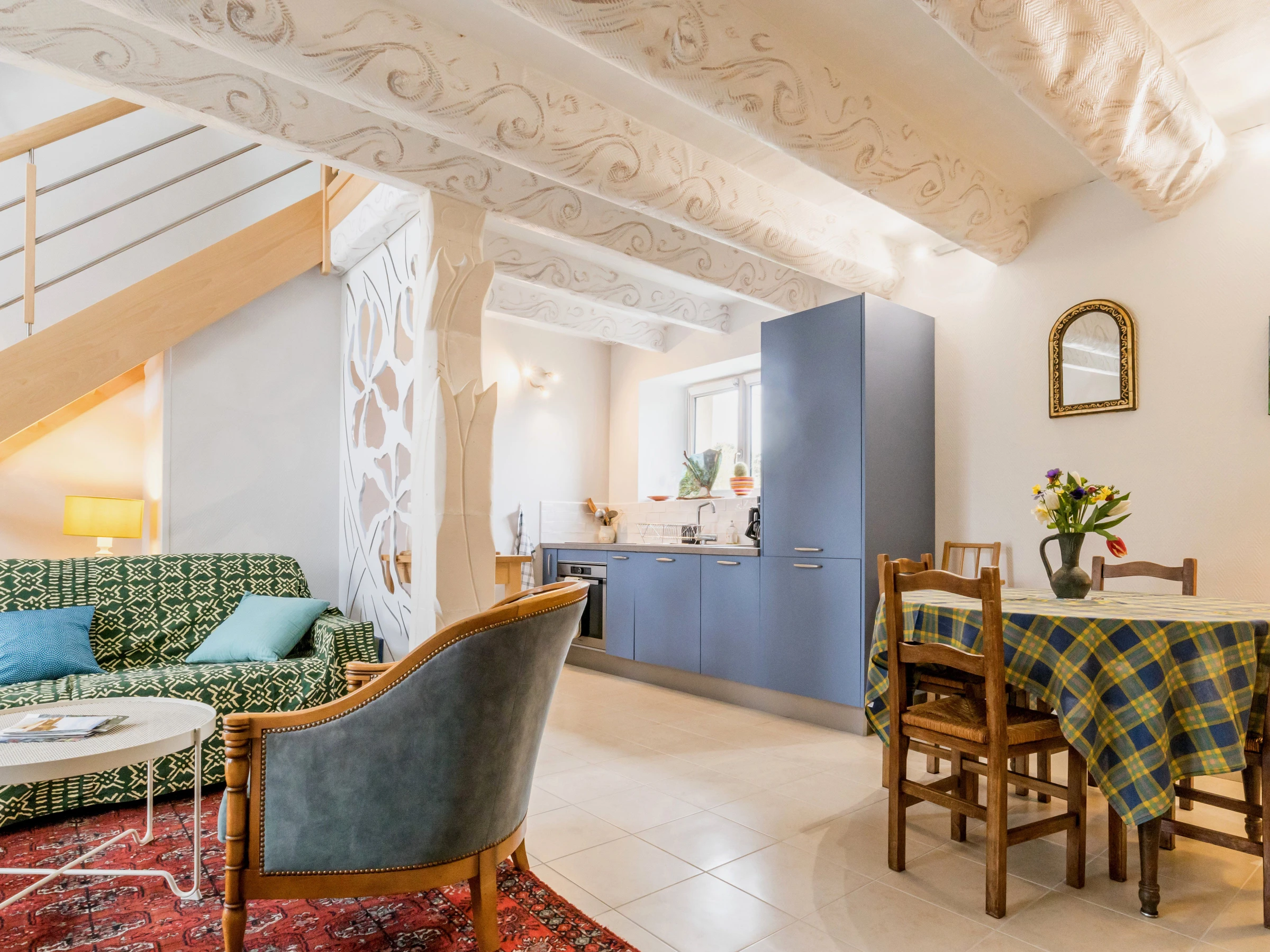 RDC: cuisine ouverte sur salon/séjour (convertible 140x190), 1 chambre (lit 140x190) et salle d'eau/wc indépendant.
